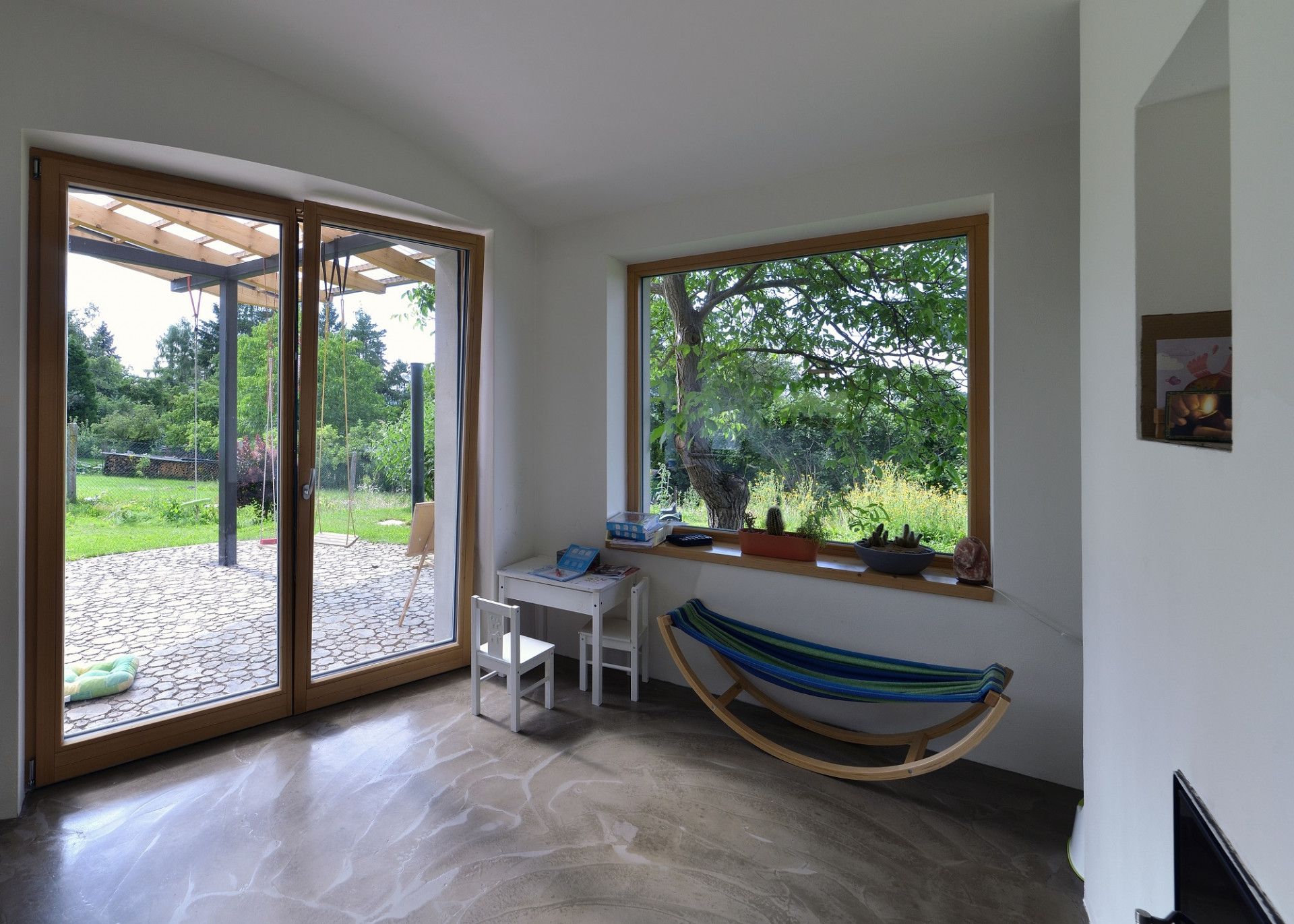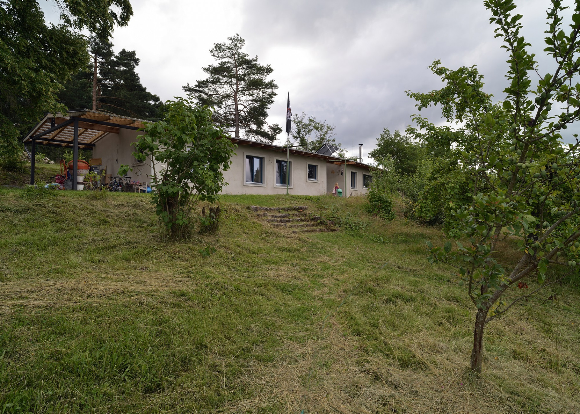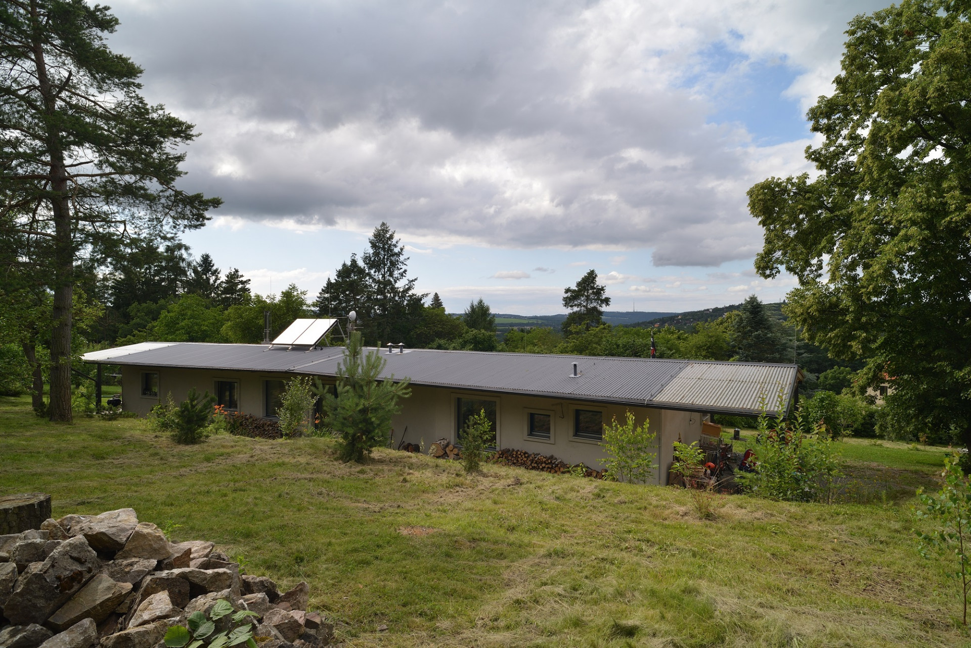 Ústecké studio 3+1 architekti zrealizovali u malé středočeské obce Petrov jižně od Prahy nenápadný rodinný dům, který proporčně navázal na půdorys staré chaty, která na pozemku stávala. Podlouhlý přízemní objekt se svým zalamováním přizpůsobuje nerovnému terénu a výrazně přetaženou sedlovou střechou odkazuje k původní stavbě. Architekti pro stavbu rodinného domu zvolili materiály, které přirozeně zapadají do okolní přírody, fasáda světle šedé barvy se doplňuje s odhaleným dřevěným krovem a tmavými rámy oken. Díky dobré práci s terénem se tak stavba prakticky ztrácí v okolní vegetaci.
