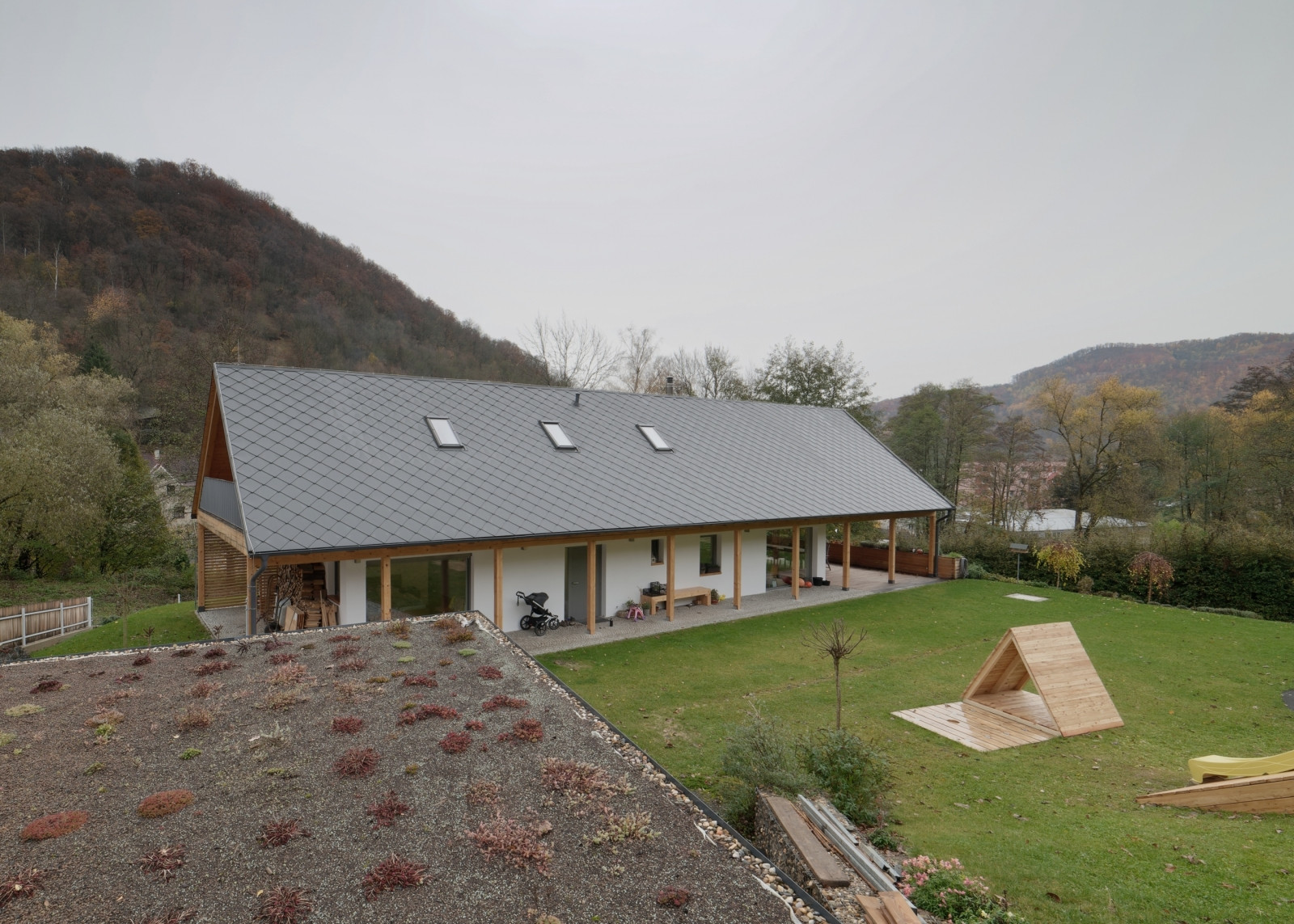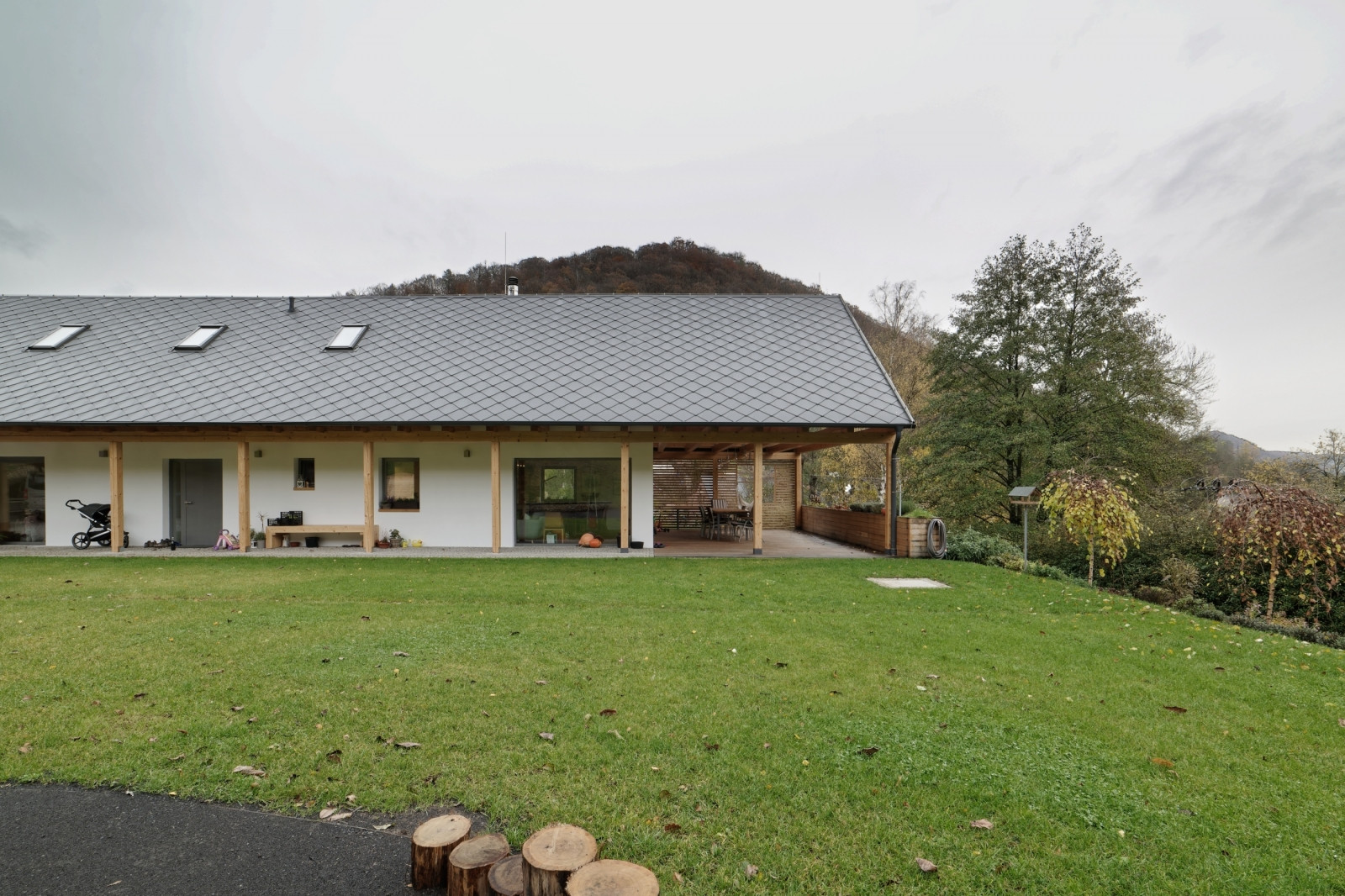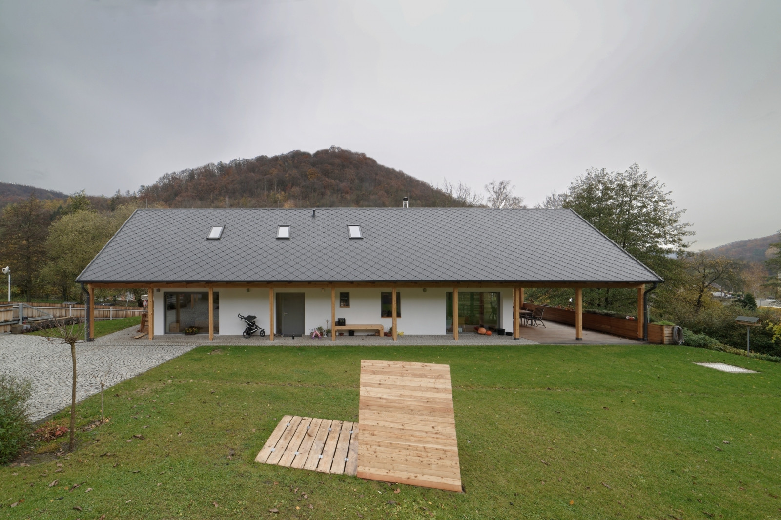 V malé obci na Ústecku zrealizovalo lokální architektonické studio pokorný rodinný dům, který vychází ze zvyků tradičních venkovských stavení. Díky přesahům střechy vzniklo praktické zápraží i prostorné kryté terasy.