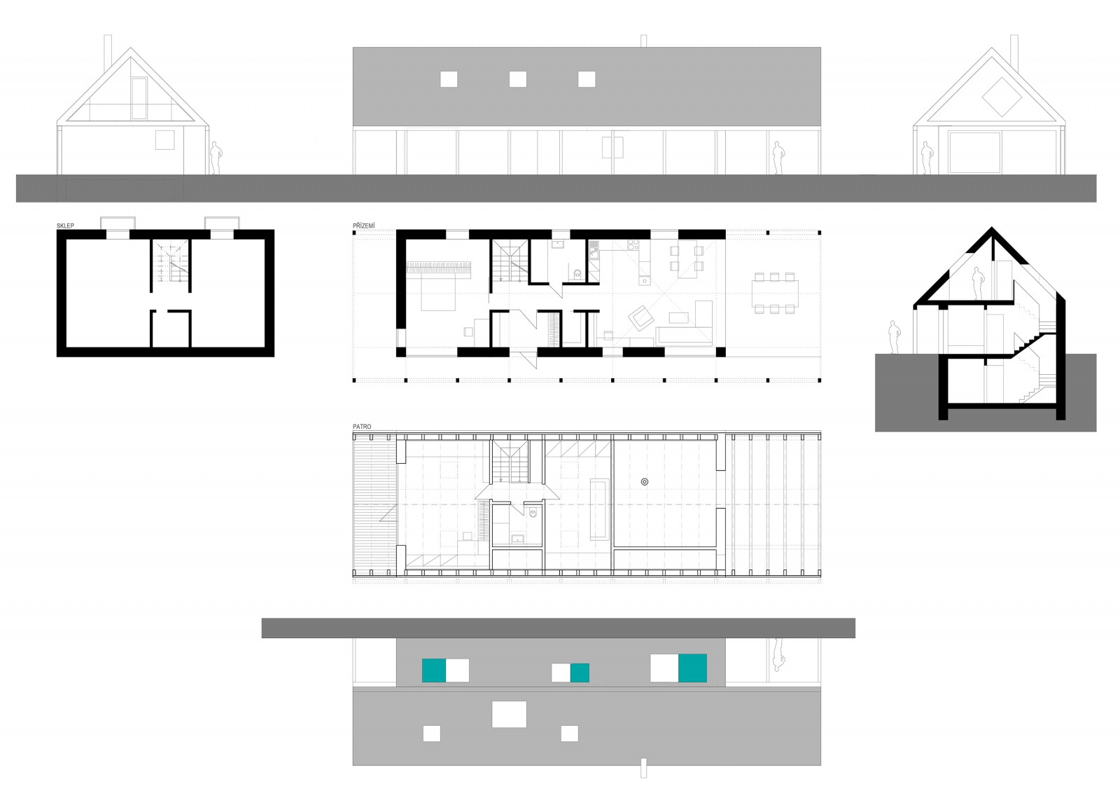 Pozemek domu se nachází na okraji vsi, takže nabízí příjemné prostředí přírodního rázu s výhledy do krajiny. Architekti nemají jasně rozpoznatelný rukopis svých návrhů, pokaždé vycházejí z podmínek konkrétního místa a zadání. V tomto případě vsadili na stavbu, jehož forma připomíná tradiční venkovské domy. „Tradiční úzká dlouhá proporce domu nám tu připadá adekvátní,“ říkají autoři návrhu.