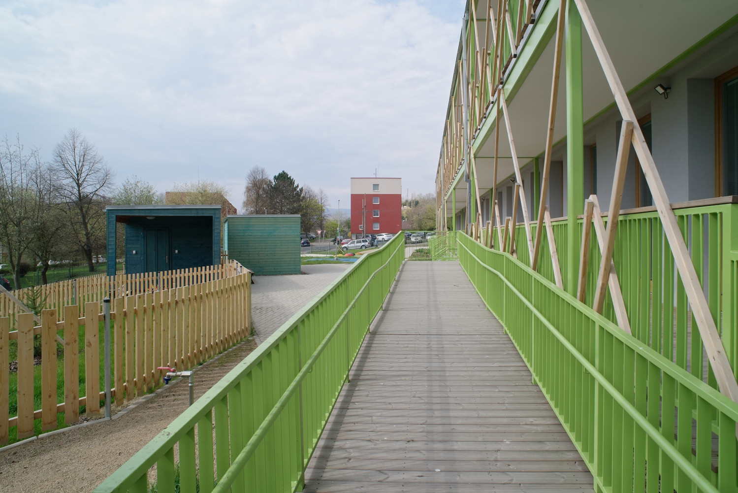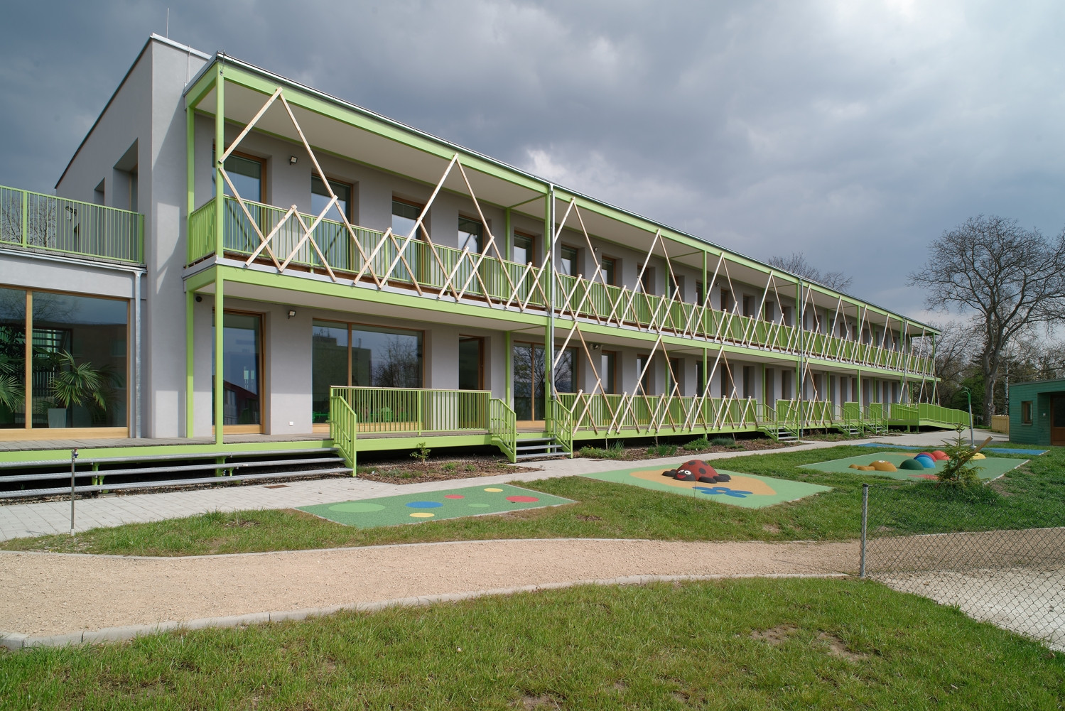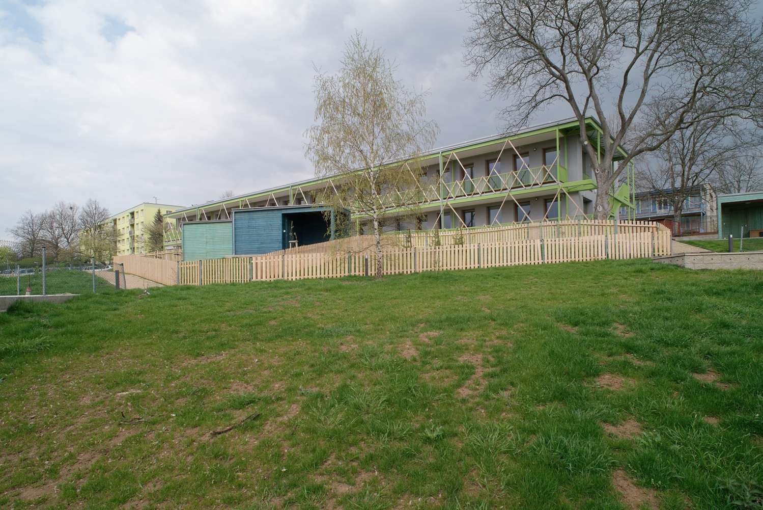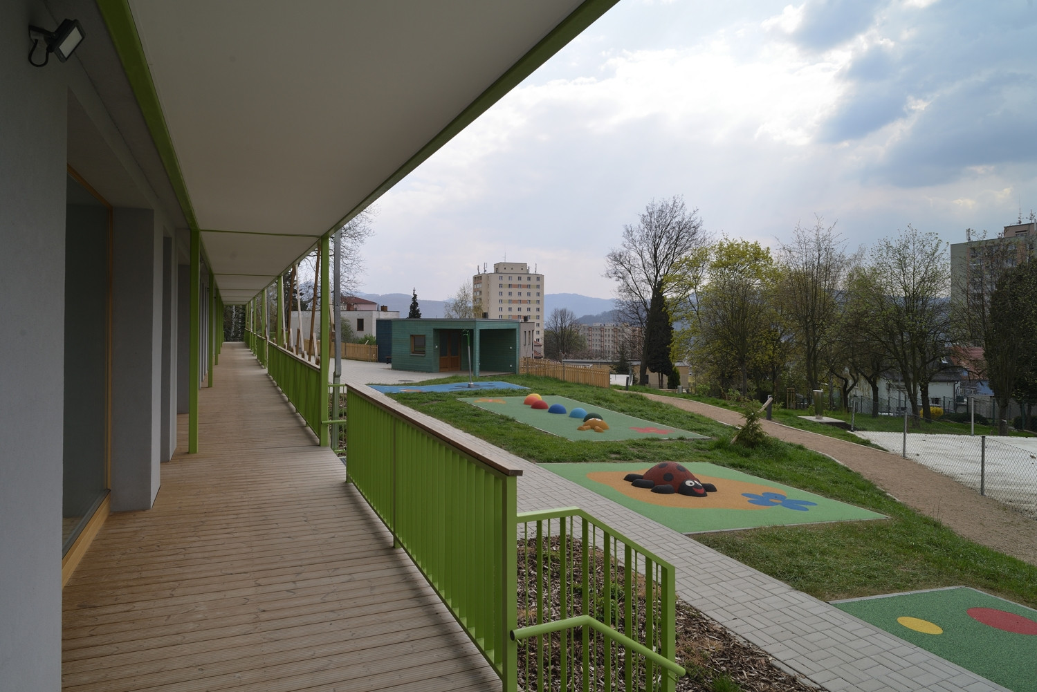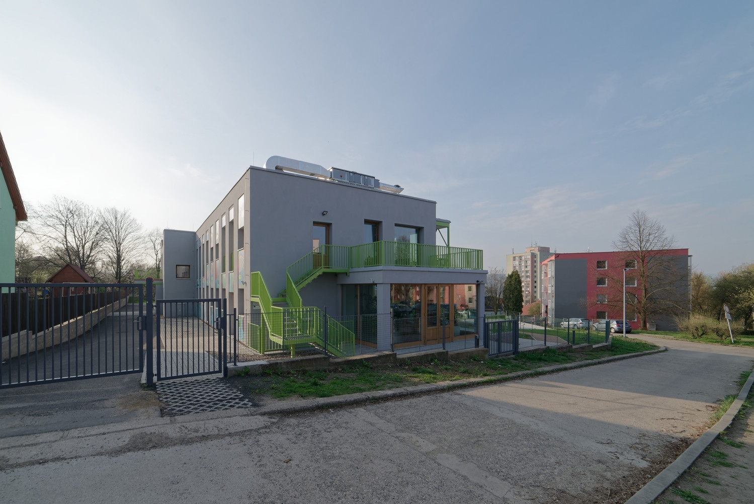Původní objekt mateřské školy na ústeckém sídlišti se proměnil v pohodlné a funkční zázemí pro cca 50 dětí. O rekonstrukci původní školky se zasloužilo místní studio 3+1 architekti, které jednoduchou a strohou estetiku 70. let oživilo hravou lodžií orientovanou do svažité zahrady i barevnými ilustracemi na fasádě. Úpravou prošly i vnitřní dispozice, které architekti přizpůsobili na míru dětem.