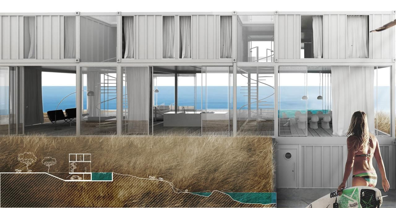 Umístění domu na severním cípu pitoreskní pláže Bondi Beach téměř v srdci národního parku Ray Okeefee je silným stimulem pro fantazii projektanta, u něhož probouzí především obavy, aby nedošlo k narušení nedotčené krajiny. V souladu se zadáním této soutěže jsme se rozhodli najít způsob, jak skloubit tovární přepravní kontejnery se scenérií parcely, která bude vzniklý objekt obklopovat.