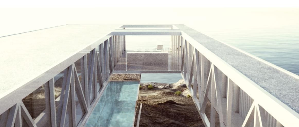 Jako by vyrůstaly z útesu, vnášejí přepravní kontejnery do reliéfu pobřeží kolem pláže Bondi nový geografický prvek. Dolní část konstrukce ukotvená k mysu je zapuštěná přímo do skály, zatímco zavěšená hlavní část se tyčí nad krajinu a shlíží na zbytky přílivových vln. Díky otevřeným prostorám v konstrukci jako by okolní krajina plynule procházela stavbou a obé společně klesalo do hlubin oceánu.