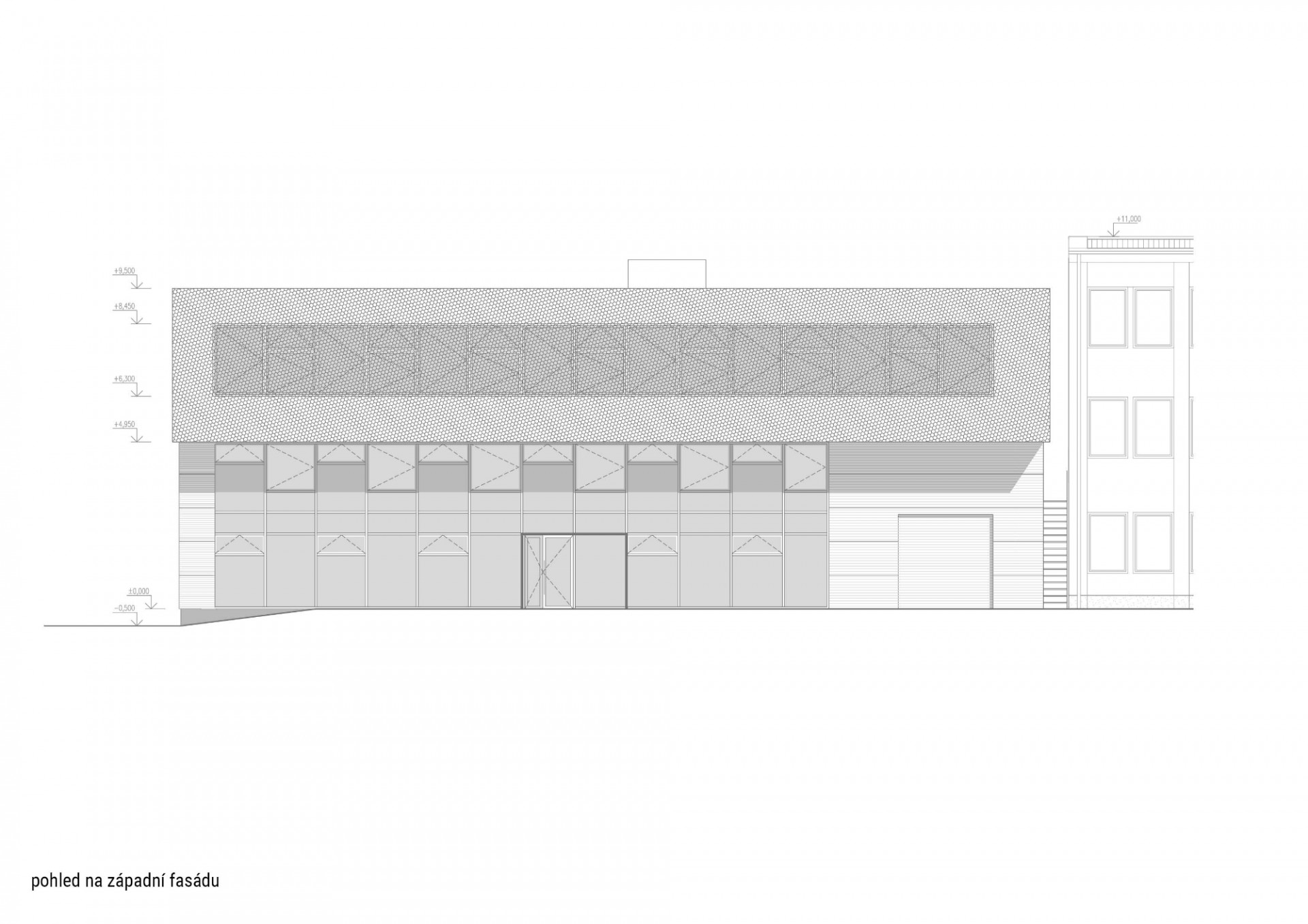 Výrobní a administrativní objekt firmy Pilana Karbid v Hulíně, Ellement architects, řez B-B