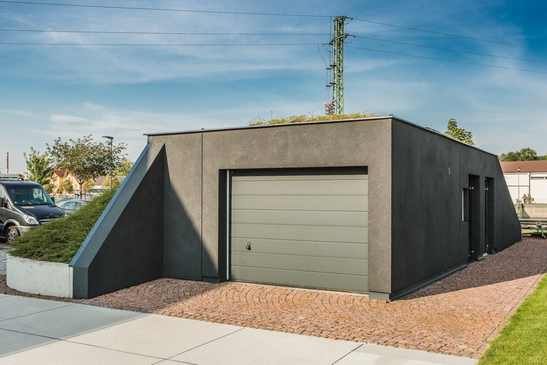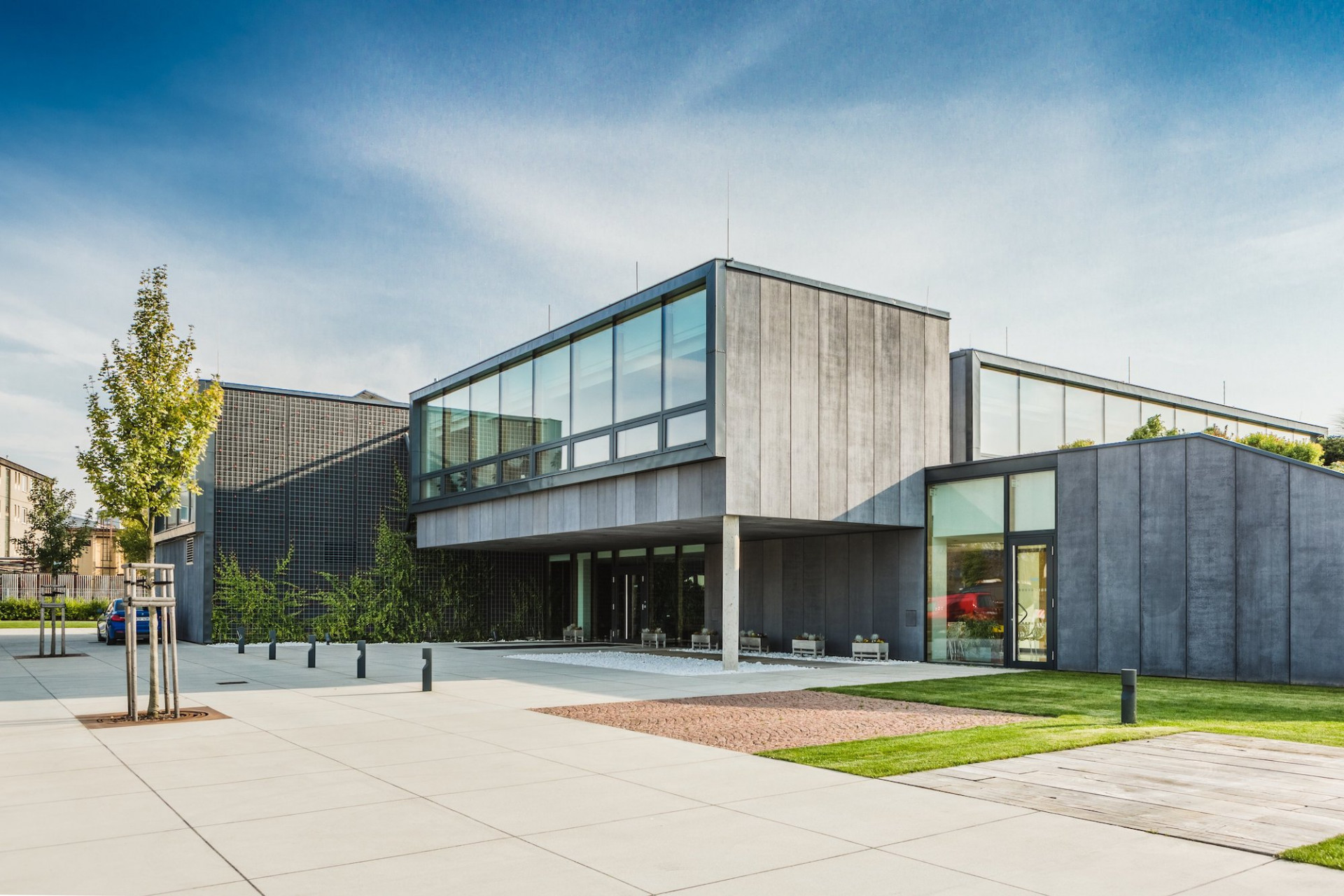 I tato stavba potvrzuje, jak široké možnosti dovoluje na fasádě kombinace betonu, skla a omítky. Aplikace granulovaných částic ve finální tmavé omítce navíc dovolila vytvořit třpyt na povrchu, který fasádu či stěnu oživuje a mění v závislosti na denní době nebo počasí. Vzhled dokonale dotváří zeleň, která šedé a černé plochy doplňuje. Podlahy uvnitř budovy tvoří epoxidové stěrky nebo dubové lamely. Stěny jsou z části omítnuté, ale většinu z nich pokrývá obklad, na kterém se střídají akustické sádrokartonové desky se sklocementovými. Obklady zvolili autoři projektu s hlavním cílem odhlučnit kancelářské prostory.