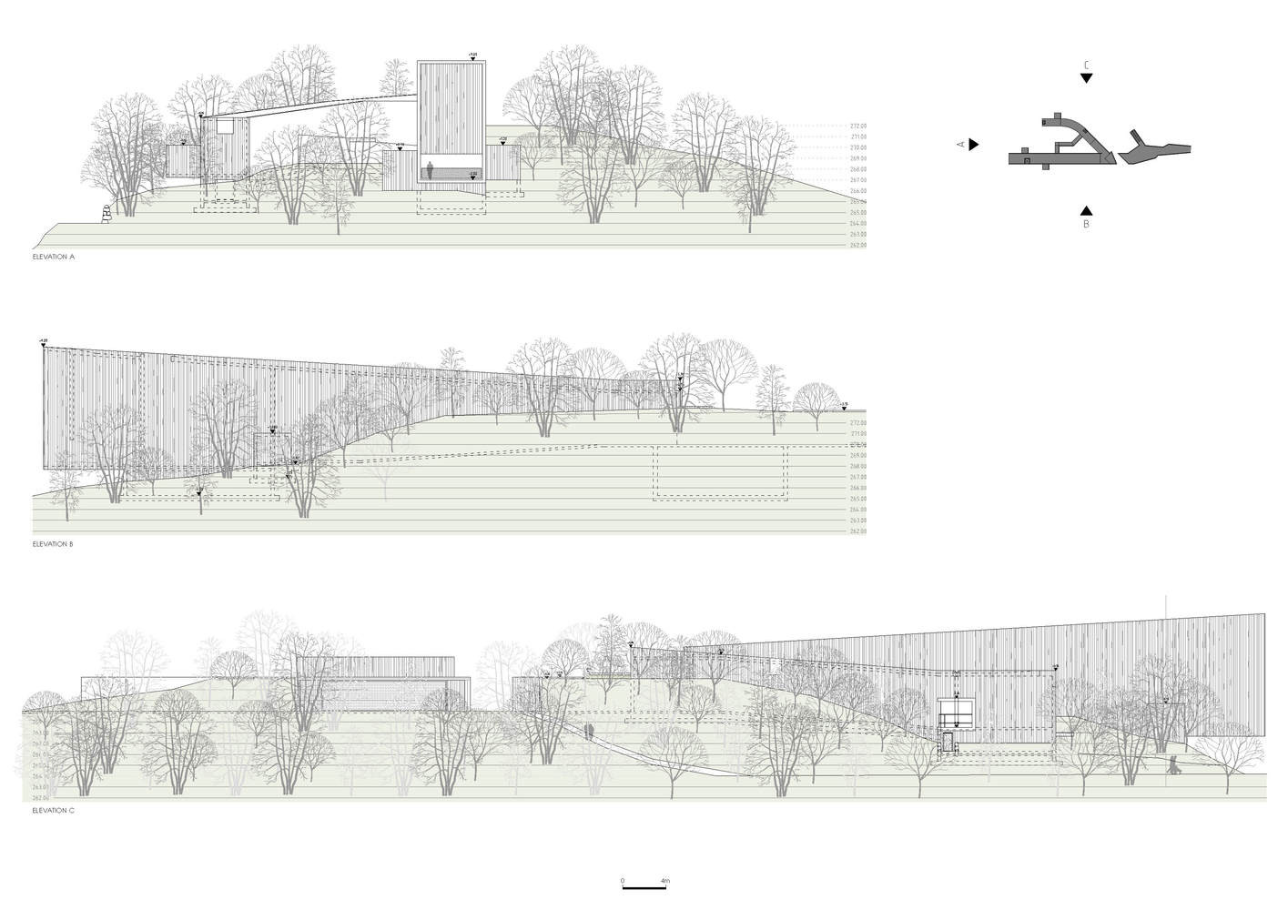 V hlubokých lesích přírodního parku jihokorejské provincie Geyongsang stojí tři betonové solitérní pevnosti, na nichž se společně podíleli portugalští architekti Alváro Siza a Carlos Castanheira. Objekty jsou rozmístěny na širokém území a navazují na stávající turistické stezky. Pracují s terénem, zakusují se do něj a dramaticky z něj vystupují. Stejně jako se stavby přizpůsobily krajině, přizpůsobila se ona jim. Jedno modifikovalo druhé.