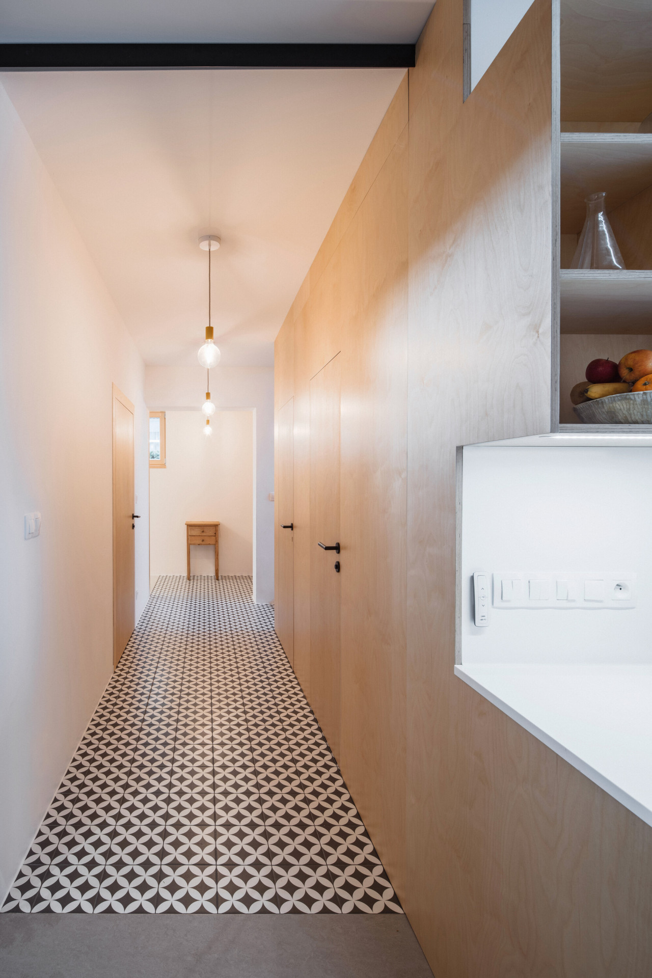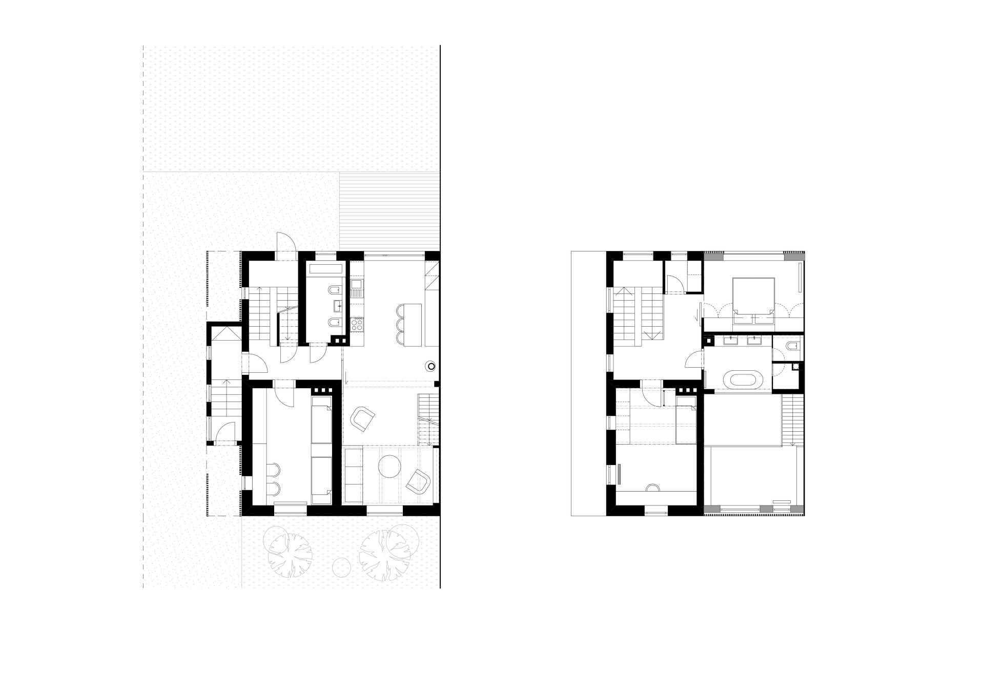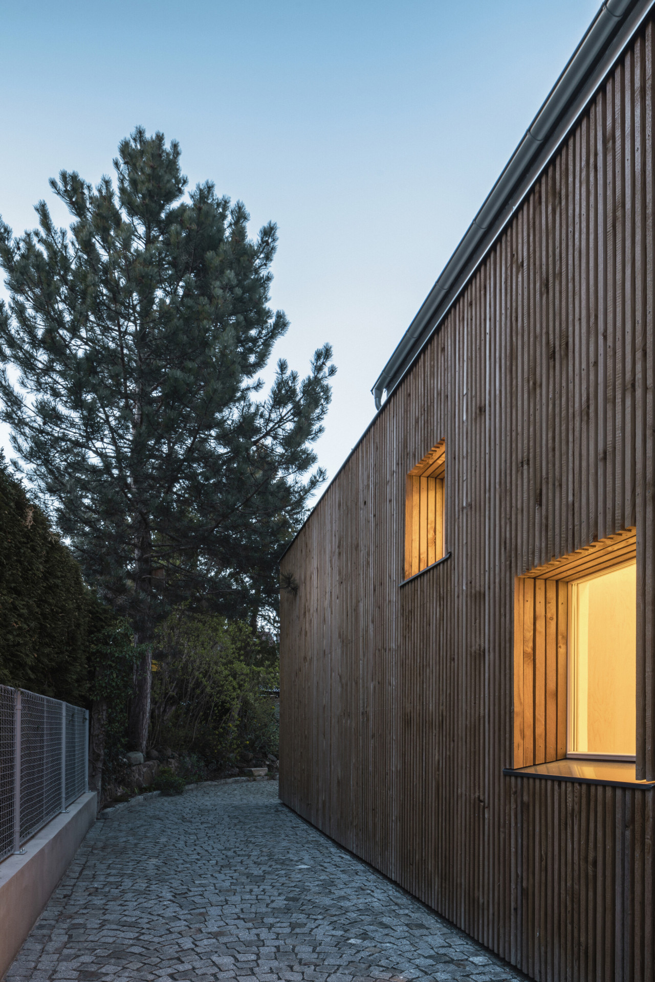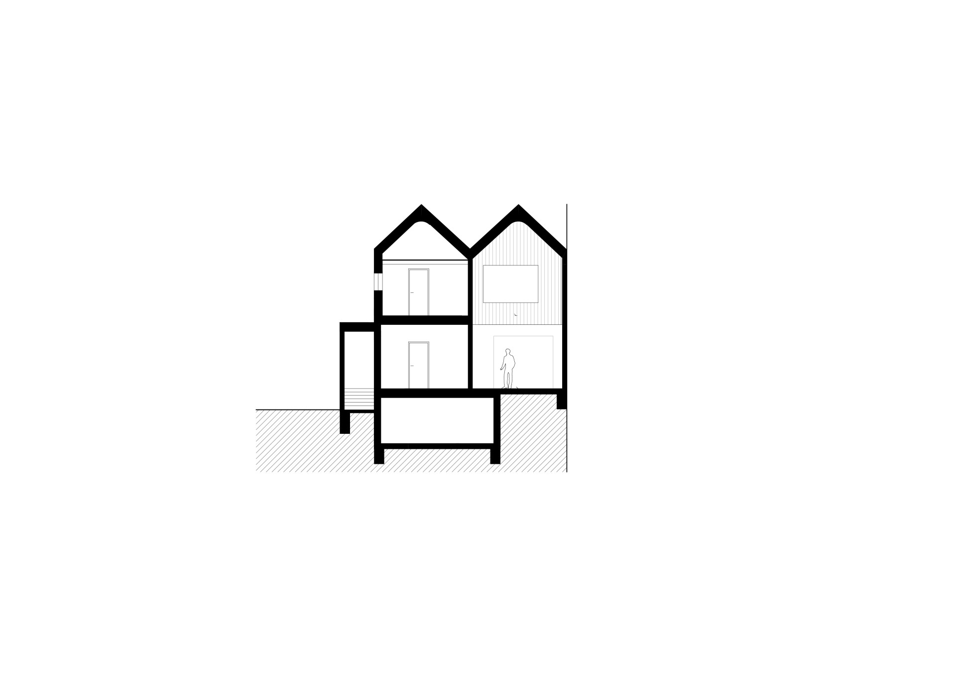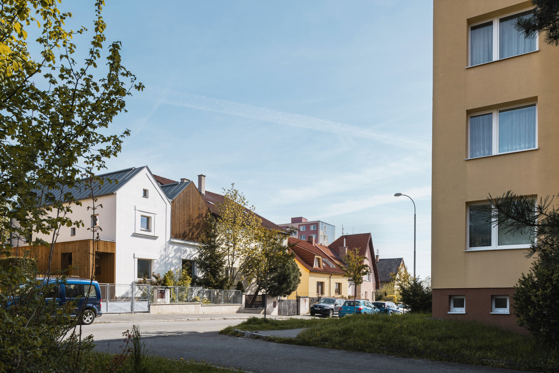 „Návrh rekonstrukce se snaží reagovat na současné potřeby a požadavky mladé rodiny, ale snaží se zároveň hmotu domu pouze nenafukovat, ale přinést novou, soudobou vrstvu, která pracuje s archetypálním prvkem štítu se sedlovou střechou,“ pokračují autoři. Z jejich vyjádření je jasné, že chtěli navázat na starší struktury. Vydali se cestou zopakování štítu ve stejných proporcích a vymezili se tak vůči různorodým nástavbám, které nekoncepčně proměnily ostatní domy v blízkém okolí.