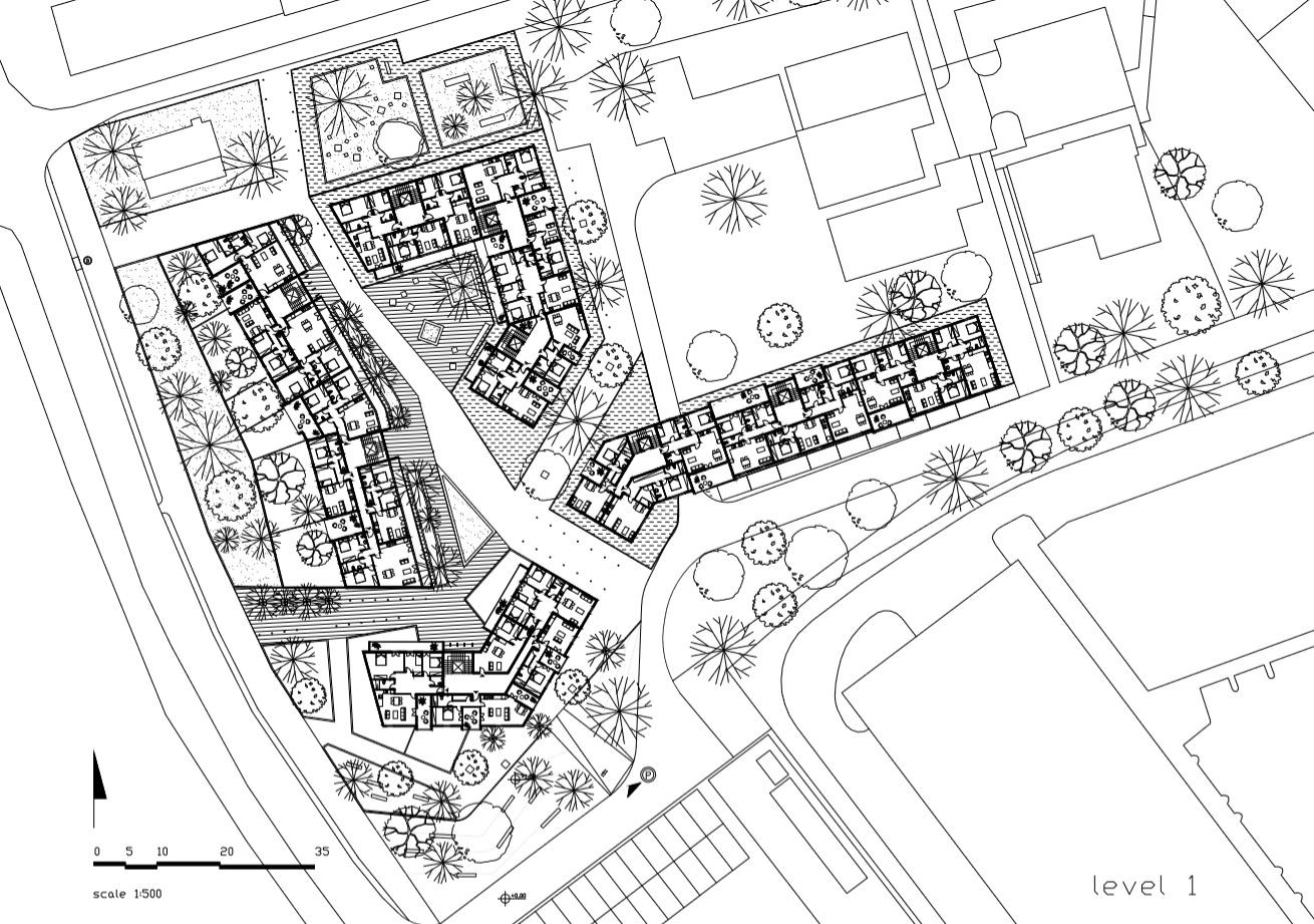 Pro město Sokolov vytvořil architekt Petr Tuček ve spolupráci s platformou object-e studii nových bytových domů v blízkosti městského centra. Návrh pracuje s formou částečně otevřeného bloku složeného ze čtyř obytných domů, které mezi sebou vytvářejí polosoukromá prostranství a svou strukturou navazují na tradiční urbanismus Sokolova. Se zpracováním studie oslovilo západočeské město celkem 3 ateliéry – vedle architekta Petra Tučka tak svůj návrh vytvořili ještě další dvě česká studia.