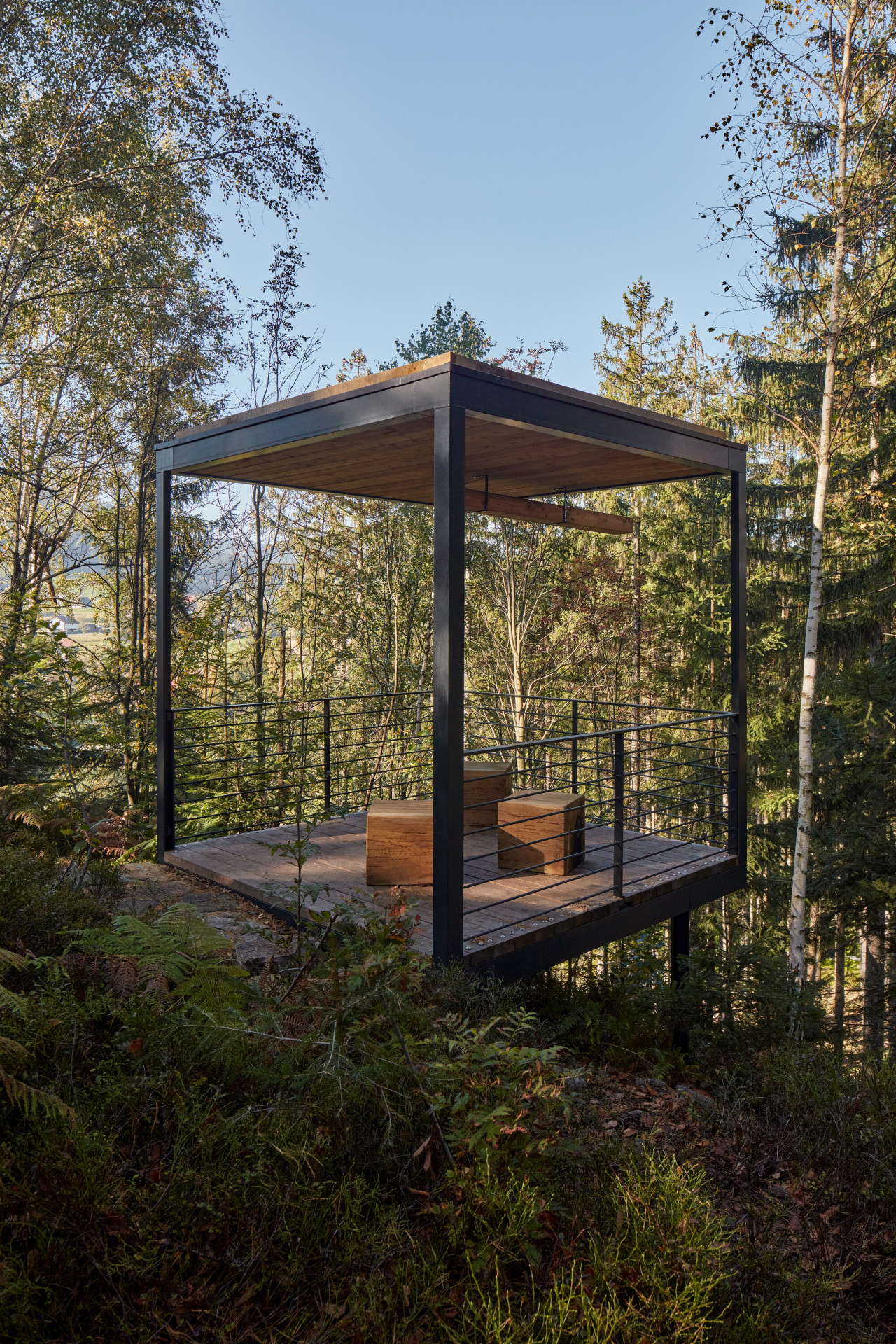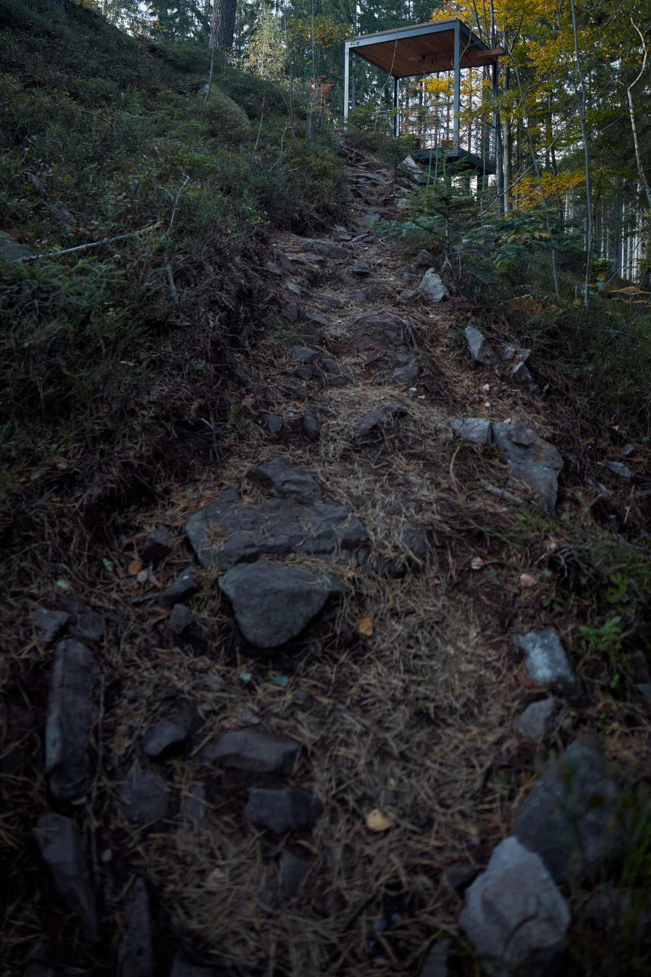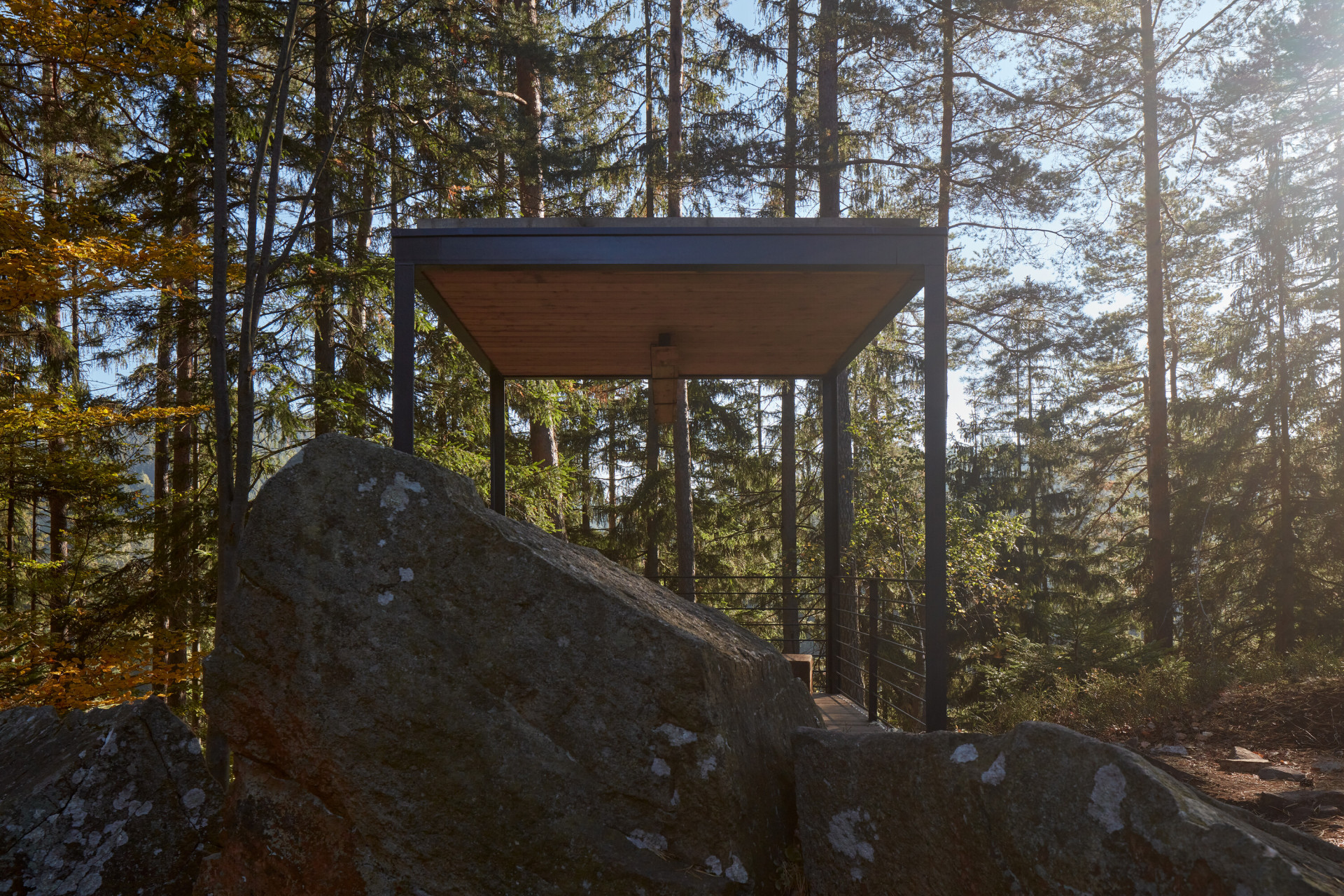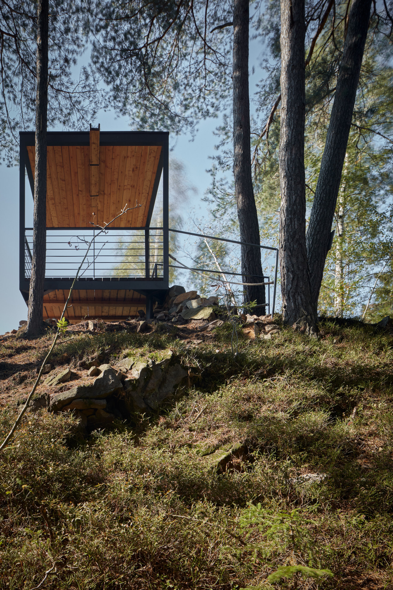 „V místě sedla pod skalnatým vrcholkem návštěvníci vystoupají na malou vyhlídkovou piknikovou platformu. Inspirací zde byly staré zarostlé ruiny kamenných základů rozeseté po Beskydech, dokladující osídlení a hospodaření předků v nejzapadlejších koutech krajiny,“ dodávají autoři s tím, že se snažili pracovat primárně s lokálními přírodními materiály. Přístřešky s ocelovou konstrukcí tak mají podlahy a stropy z masivních fošen, lavičky jsou vyrobené z dubu a pro stezky a opěrné zídky byl využit kámen a šotolina přímo z lomu.