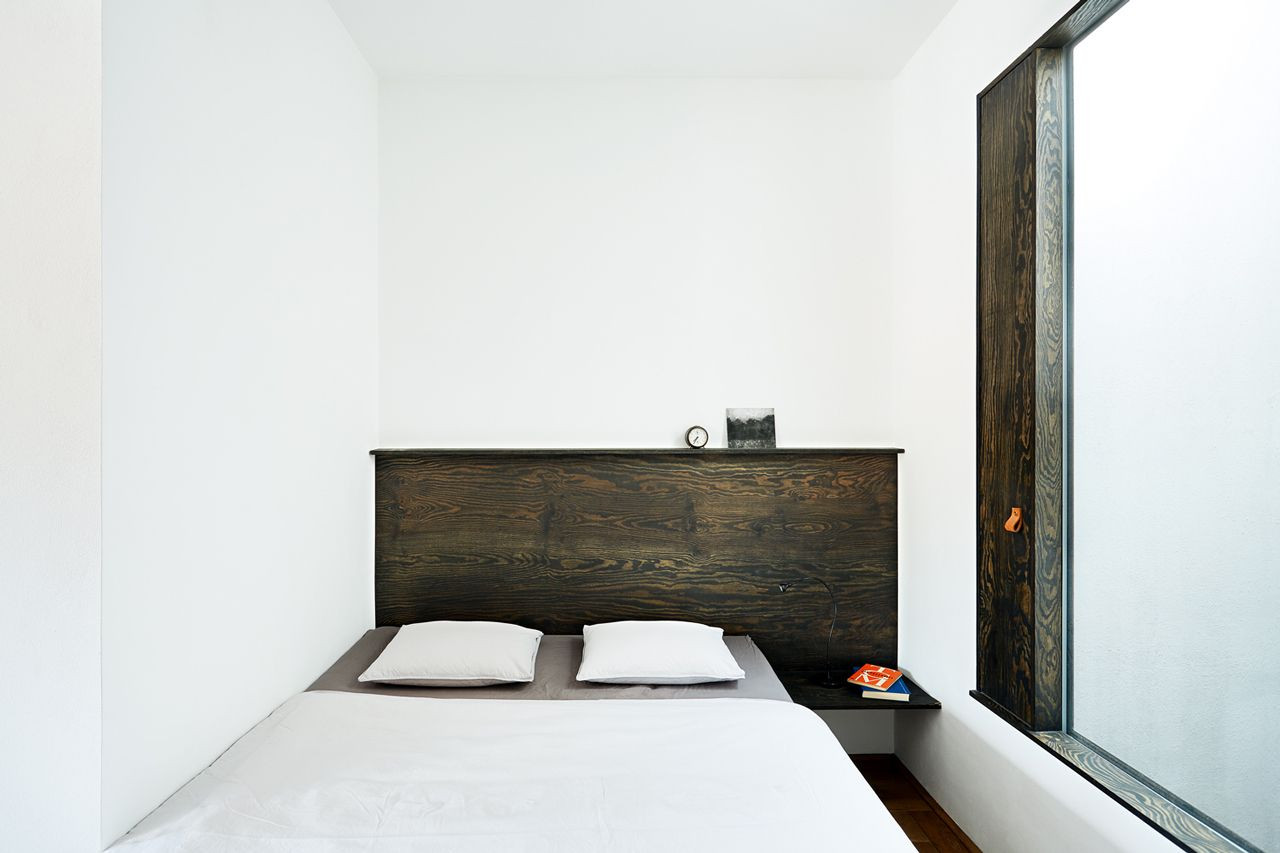 Když se dva architekti rozhodnou po letech bydlení v různých nájemních bytech realizovat vlastní bydlení, není to snadné. Snažíte se do necelých 50m2 dostat vše a rozpočet si nastavíte „to přeci musí jít i levněji“ – vždyť jste architekt. Z 20 variant vyberete jednu geniální a riskujete tak, jak byste si to u žádného klienta nedovolili.