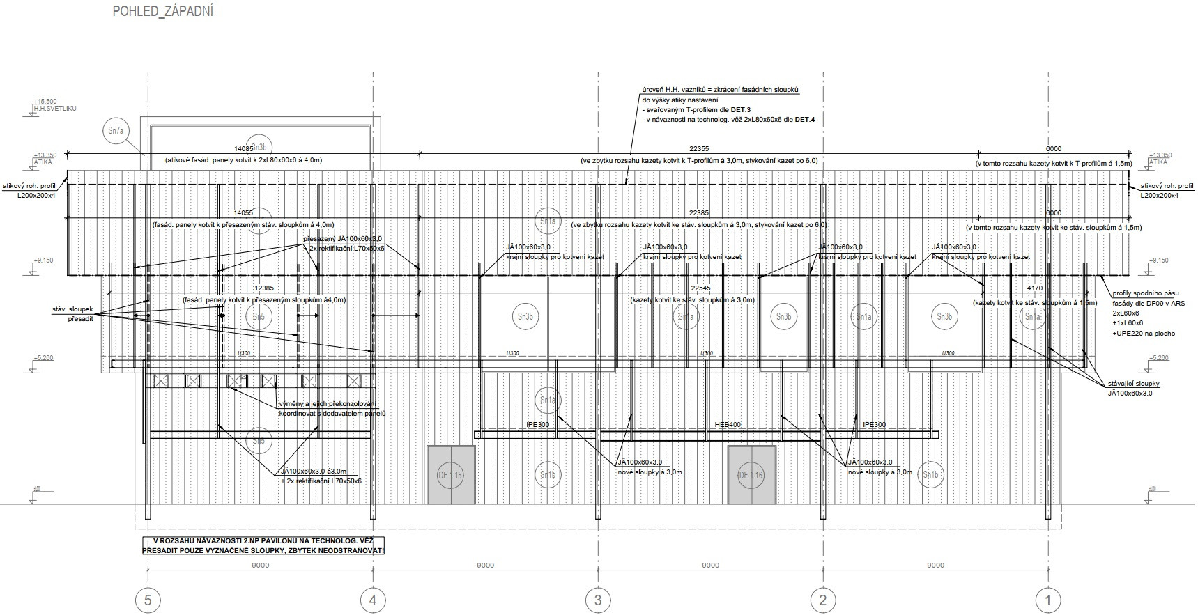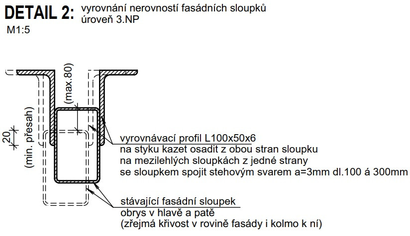 Fasádu, které dominuje bílá barva a transparentní úseky z čirého a profilovaného nazelenalého skla, do velké míry vynáší skutečně původní hmota konstrukce. Výzvu statického řešení rekonstrukce si na sebe vzala pražská firma STATIKON, která ocelový skelet sanovala a zesílila. „Obecně bylo naší snahou co nejvíce z původní konstrukce zachovat, tomu odpovídala i použitá technologie spřažení plechobetonových stropních desek se stávajícími stropními nosníky, díky níž byla navýšena zatížitelnost stropů dle současných normových požadavků. Střešní vazníky byly v rozhodujících částech zesíleny ocelovými příložemi z důvodu lokálního přitížení střechy technickými rozvody a radiokomunikačními technologiemi, stejně jako závěsy pro divadelní a světelnou techniku nad atriem sálu,“ vysvětluje řešení Petr Müller ze společnosti STATIKON. Samotnou efektní fasádu vynáší ocelové krakorce ve stropní konstrukci.