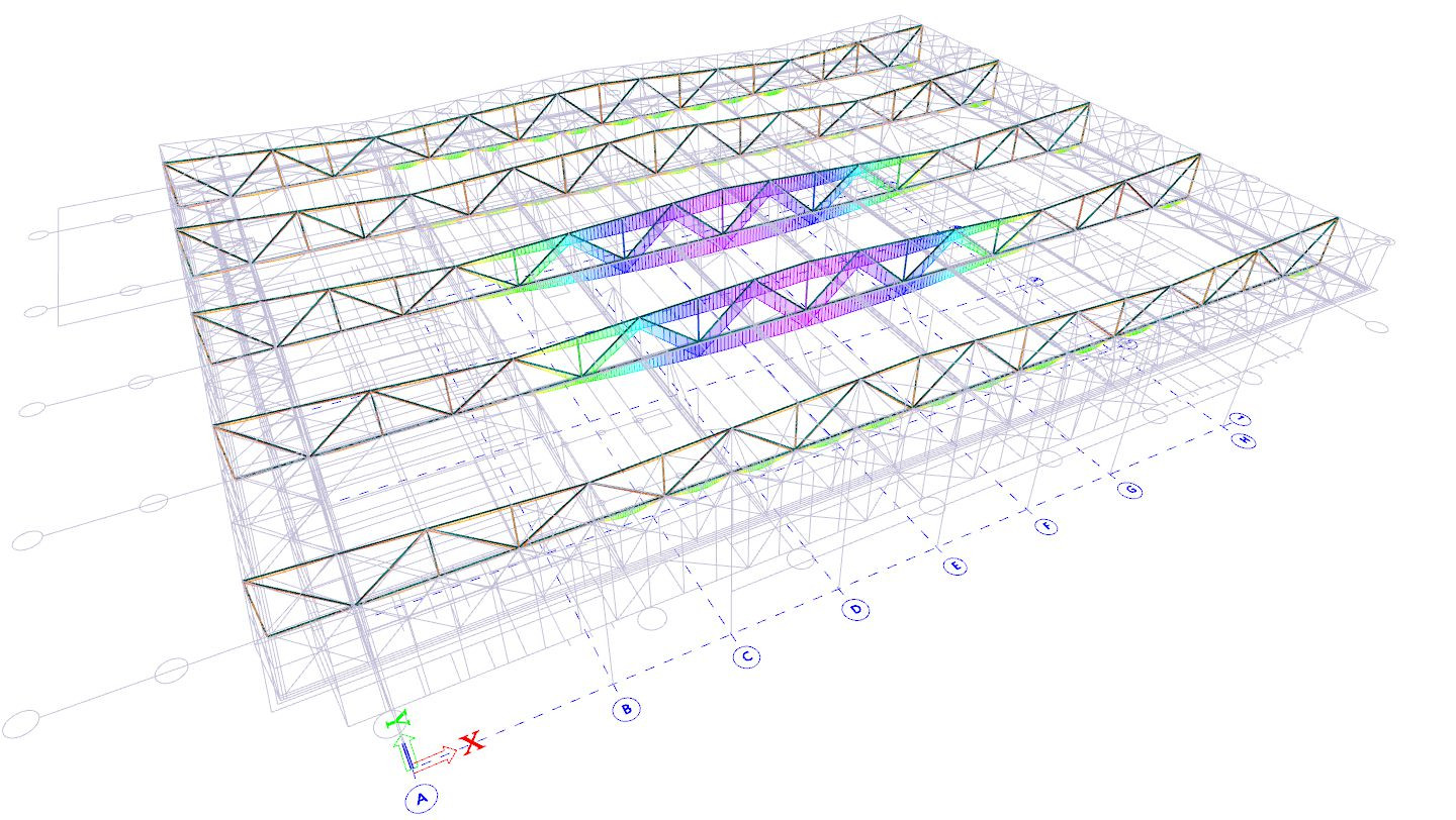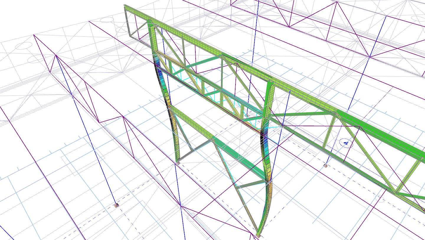 Výkresovou dokumentaci projektanti statiky vytvořili za použití programu Allplan. Vedle 2D výkresů zpracovali i prostorový 3D model celé konstrukce ve statickém programu Scia Engineer. Vytvořený model následně exportovali do formátu .ifc a zpětně importovali do Allplanu. „S tímto modelem jsme dále pracovali v rámci koordinace s kolegy stavaři a profesanty a řešili kolize plynoucí z probíhající stavby, což se zejména v prostoru komplikované konstrukce střechy ukázalo jako výrazná pomoc až nutnost,“ vysvětluje Petr Müller.