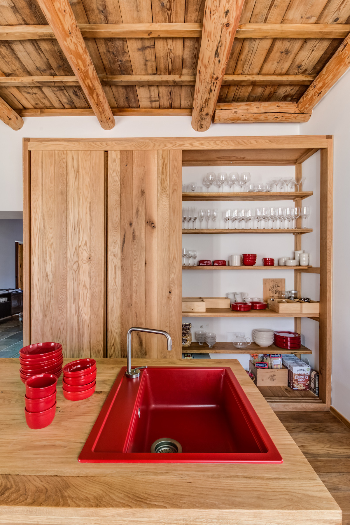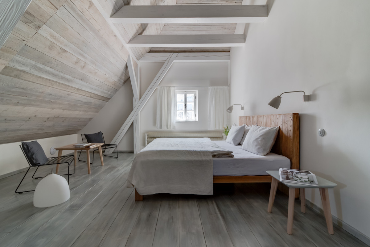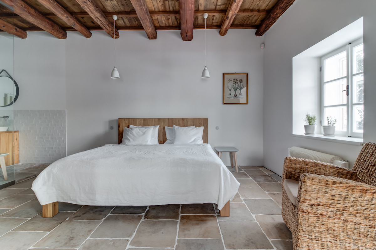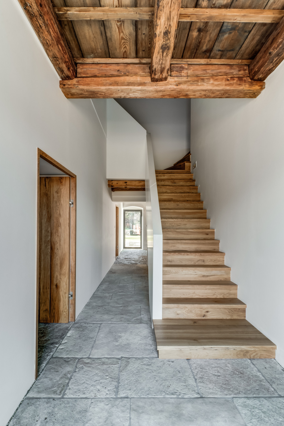 Mezi plůtky ctí udržitelnost v pravém slova smyslu. Na stavbu totiž byly maximálně využity lokální materiály. Poškozené trámy stropní kostry v přízemí nahradilo staré dřevo s přírodní povrchovou úpravou. V dříve neobývaném podkroví se zrestauroval a na bílo natřel krov. Opuka a kameny ze zaniklých domů a dvorů v širokém okolí pokryly podlahu v přízemí. Právě hrubé kamenné desky s výrazným reliéfem dominují jinak jemnému interiéru. V podkroví se zase hosté prochází po masivních smrkových prknech.