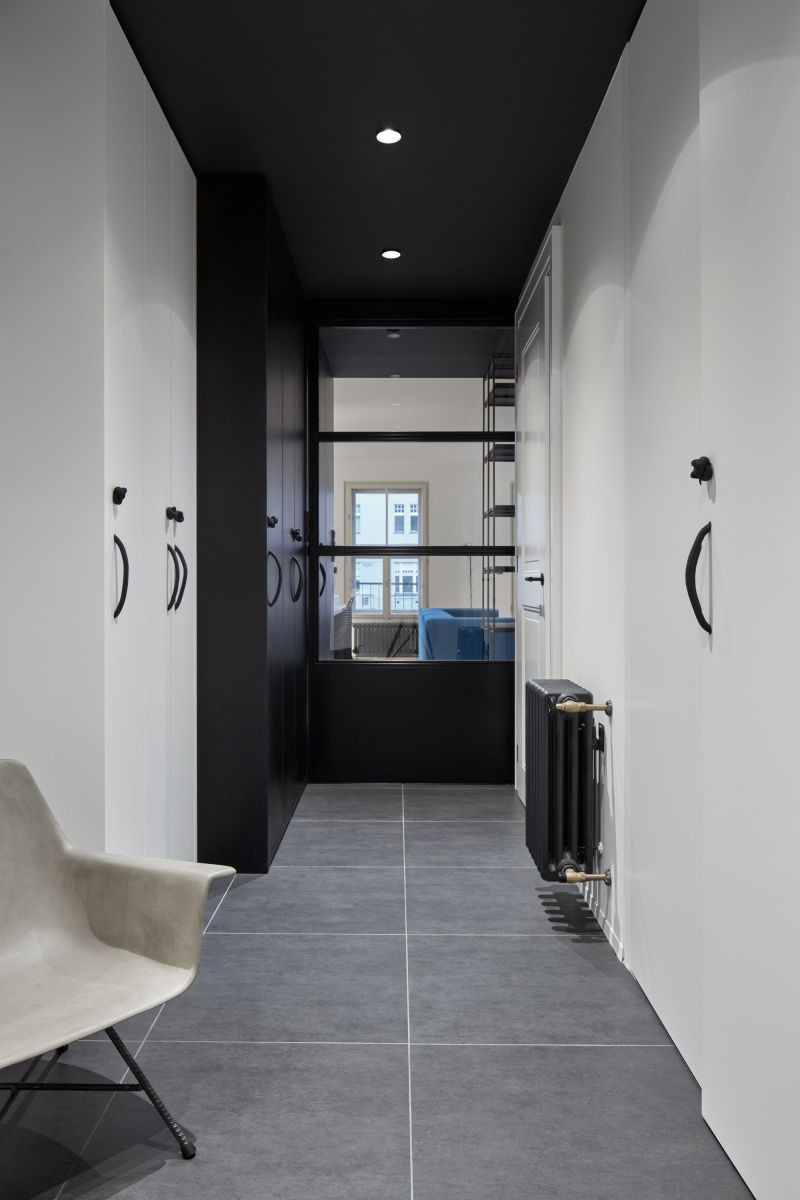 Architektky Klára Valová a Eva Mohylová z ateliéru SMLXL kompletně navrhly novou podobu bytu v zrekontruovaném bytovém domě v Praze. Nevyhnuly se přitom ani stavebním úpravám dispozic. Celý interiér propojily jednotnými prvky, ze kterých jasně dýchá industriální charakter. Prostor také oživily výraznou modrou barvou.