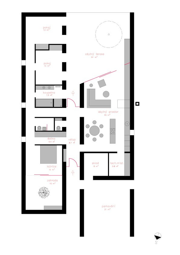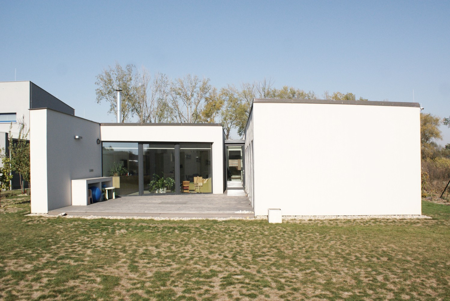 Na otevřené louce na okraji Pardubic vyrostl netradičně řešený rodinný dům od ateliéru ZETTE. Původní úkol se sice týkal pouze navržení interiéru do již připraveného projektu, od něj se však nakonec zcela ustoupilo a architekti přišli s novým řešením celého domu. Oddělili noční a denní zóny do samostatných hmot, které vzájemným posunutím navíc vytvářejí prostor polosoukromého atria.
