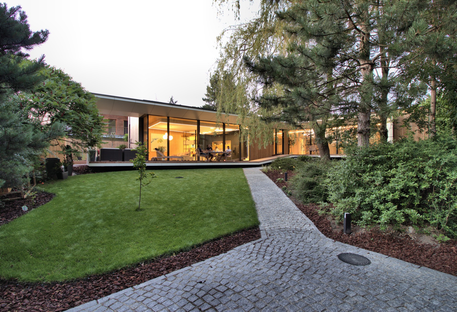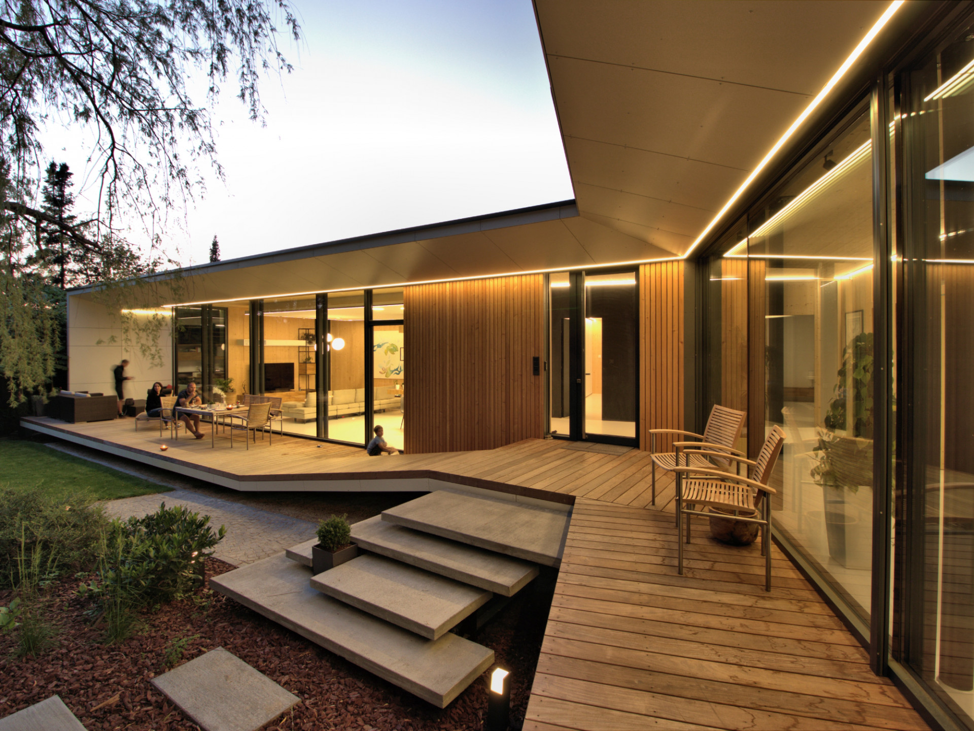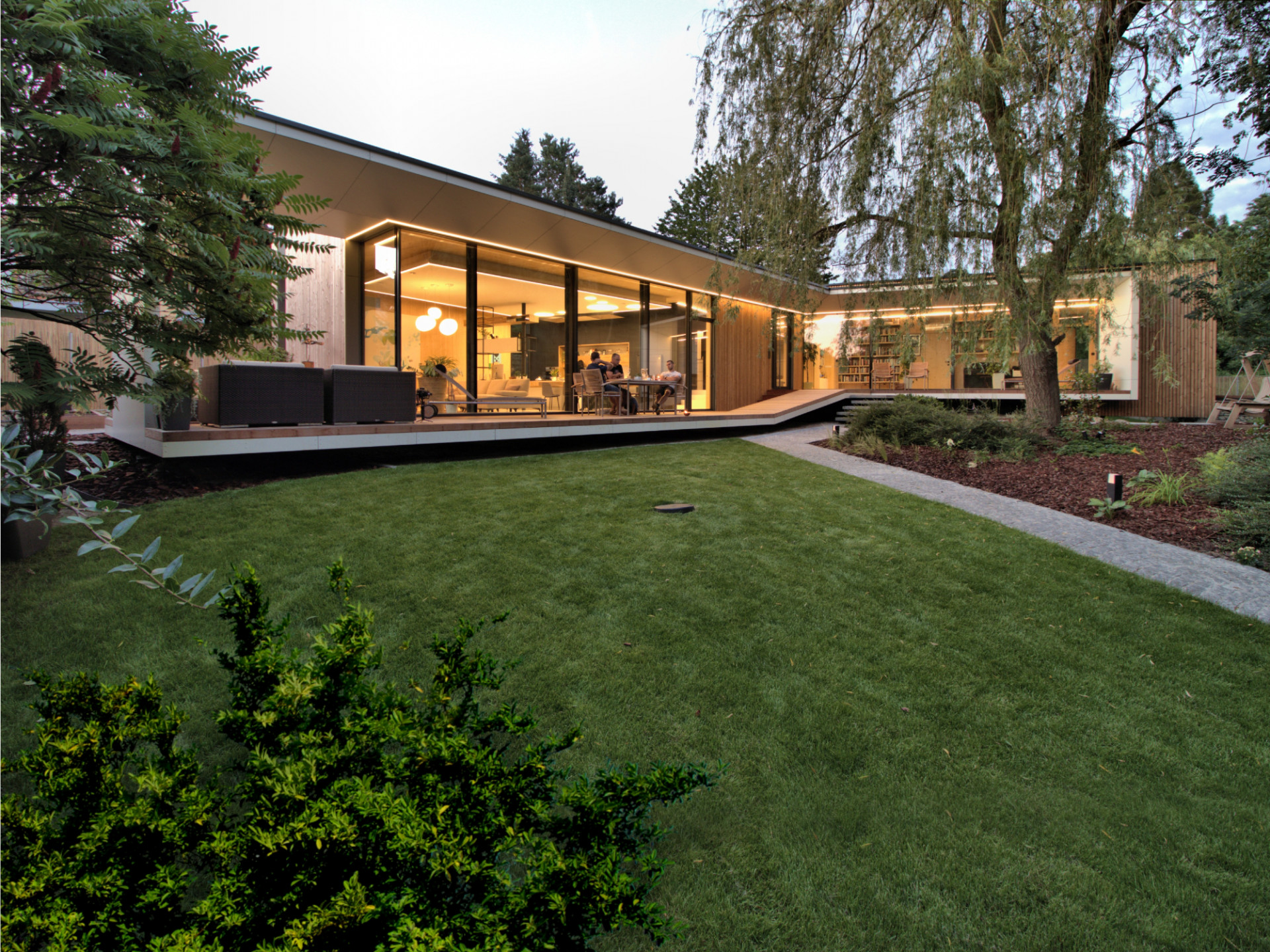 Atriovou dřevostavbu od ateliéru Molnár-Peráček propojuje se zahradou velká terasa