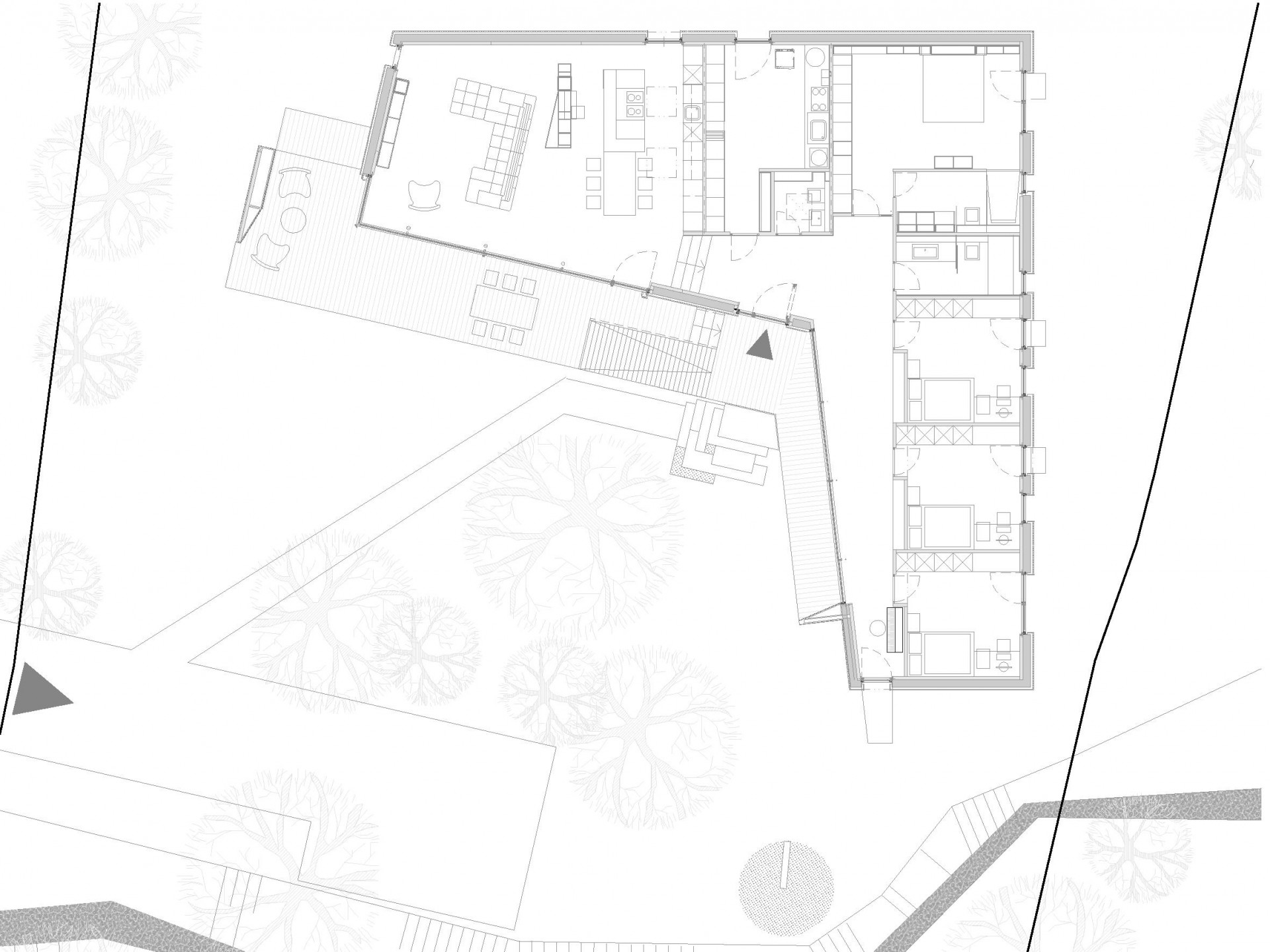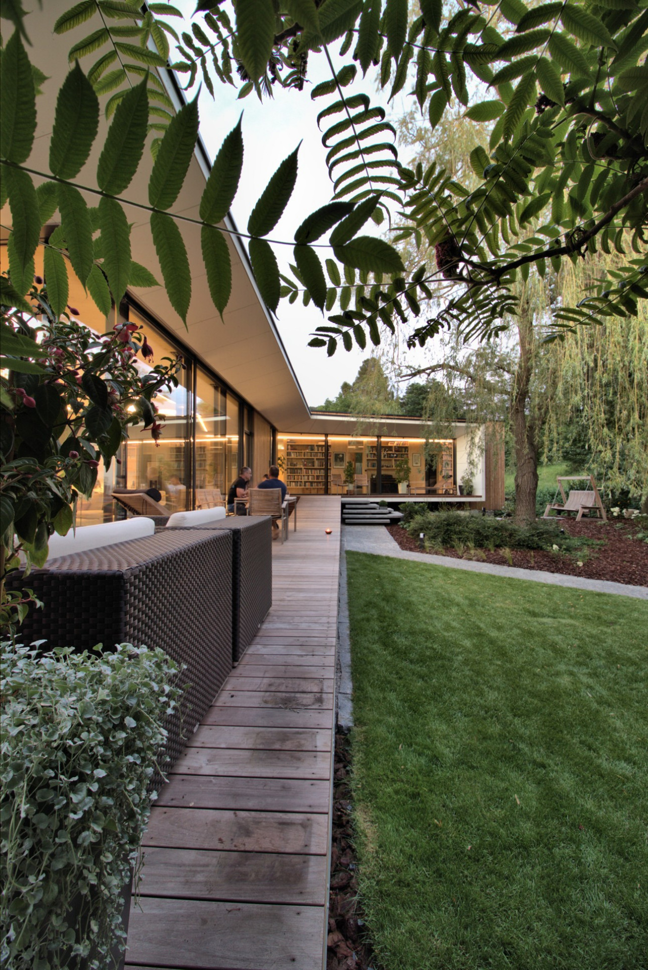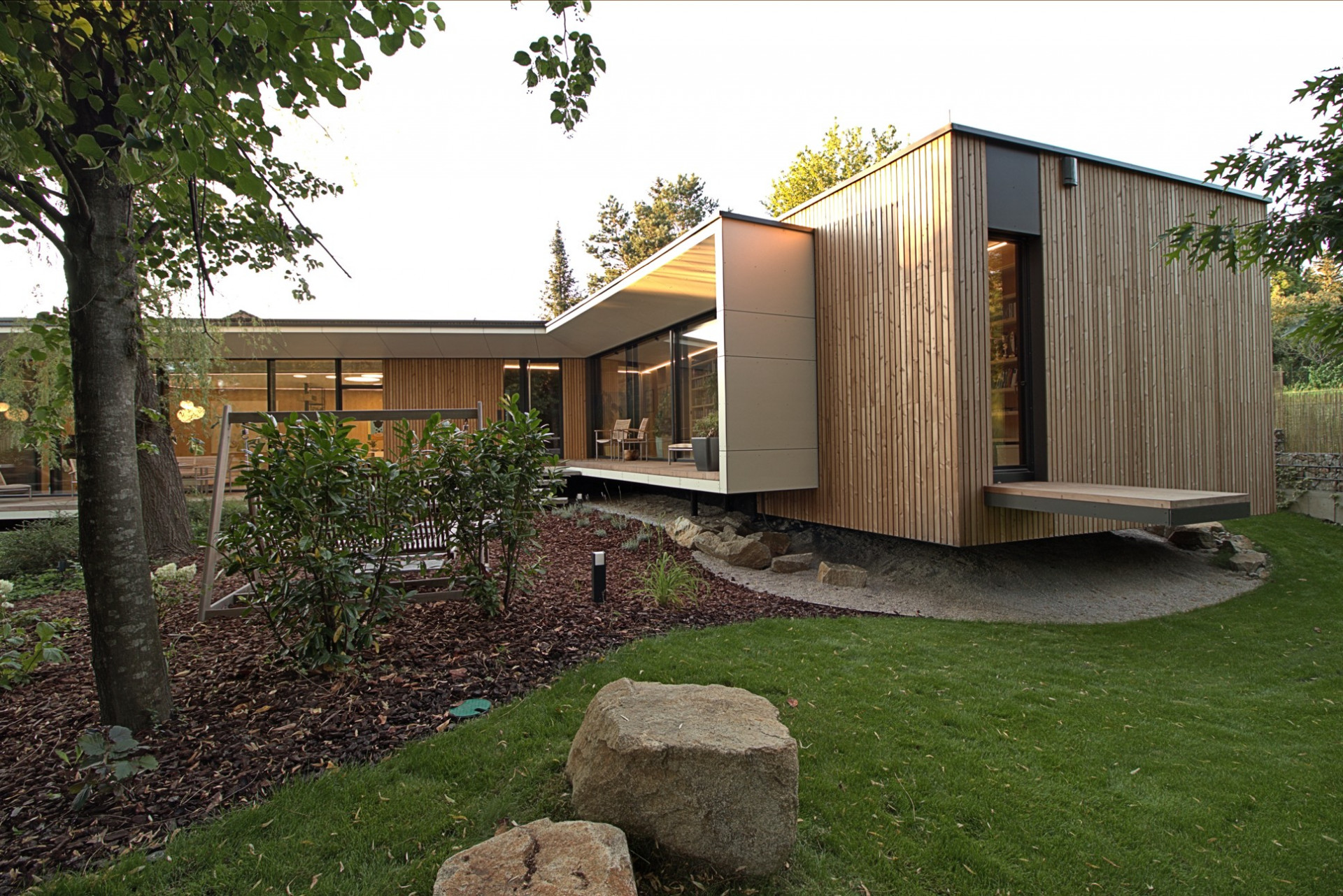 Atriovou dřevostavbu od ateliéru Molnár-Peráček propojuje se zahradou velká terasa
