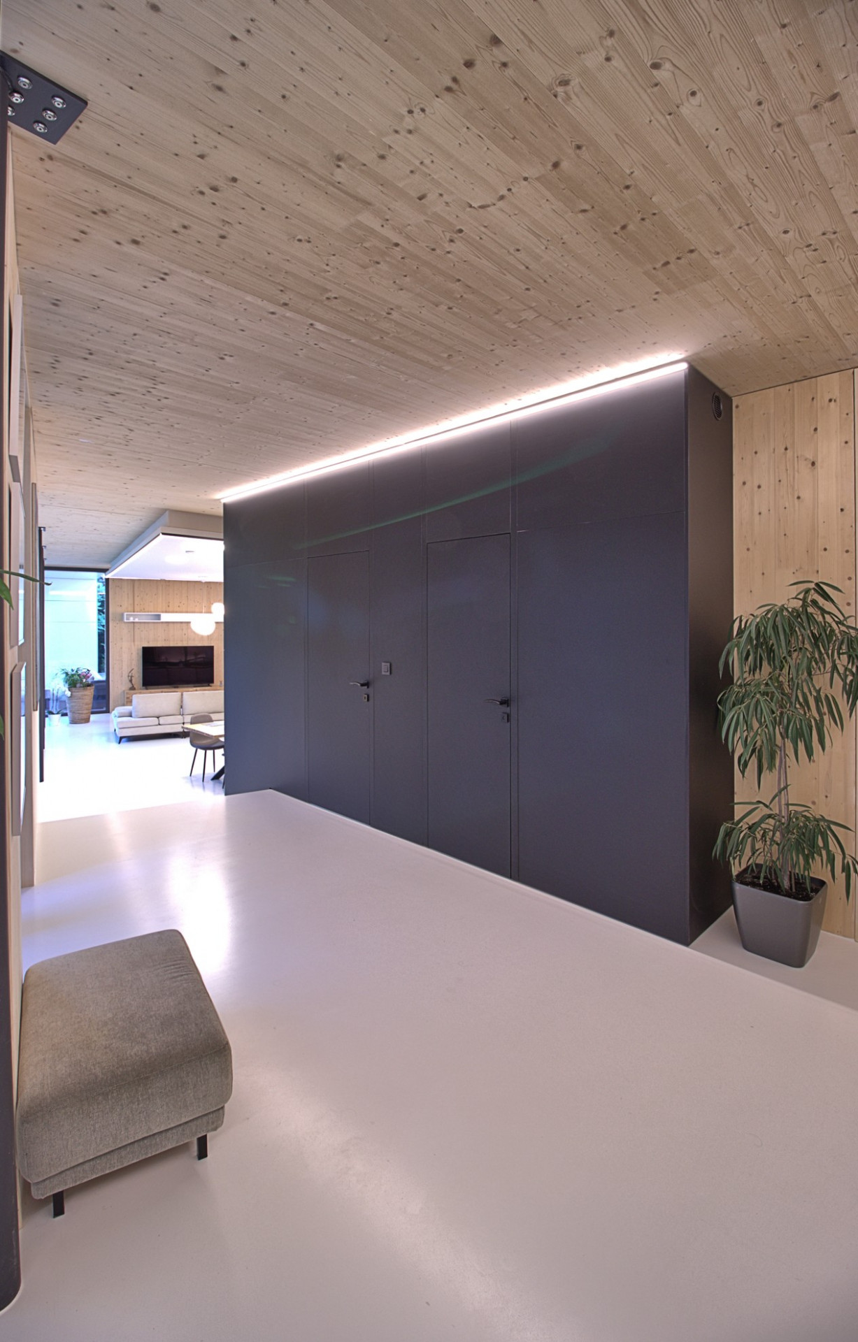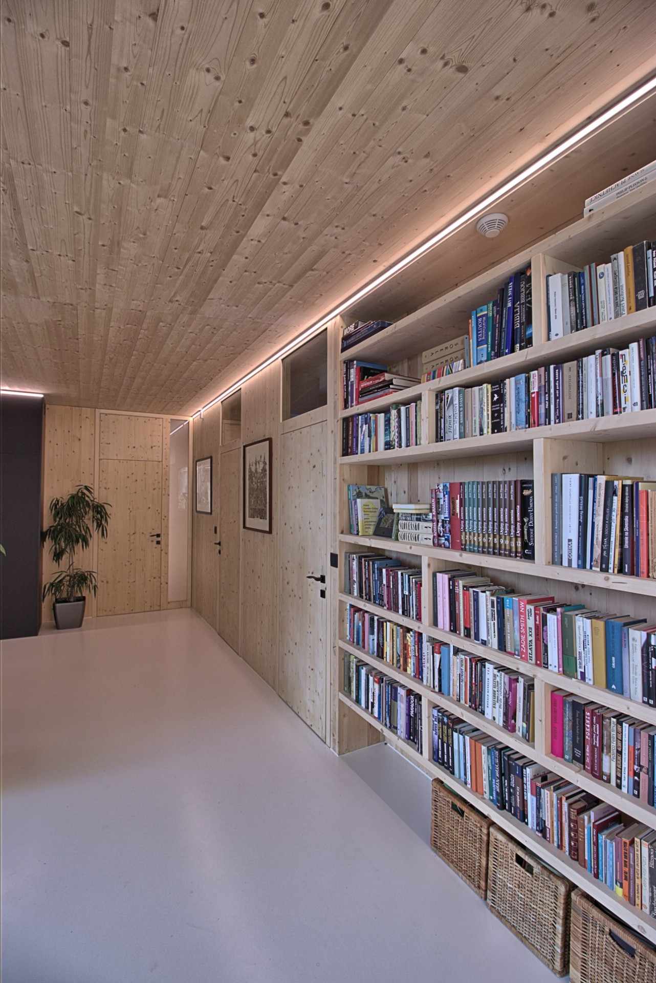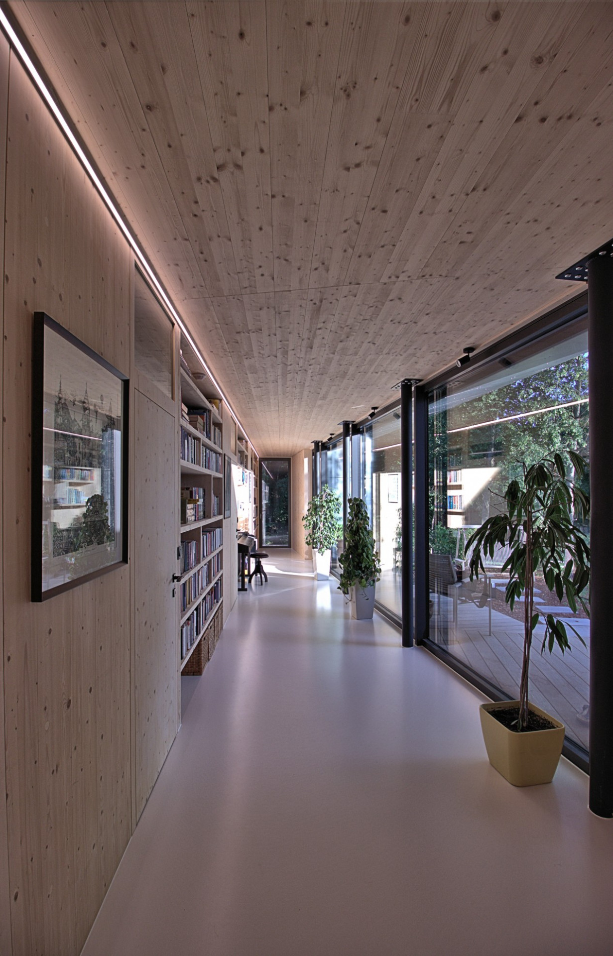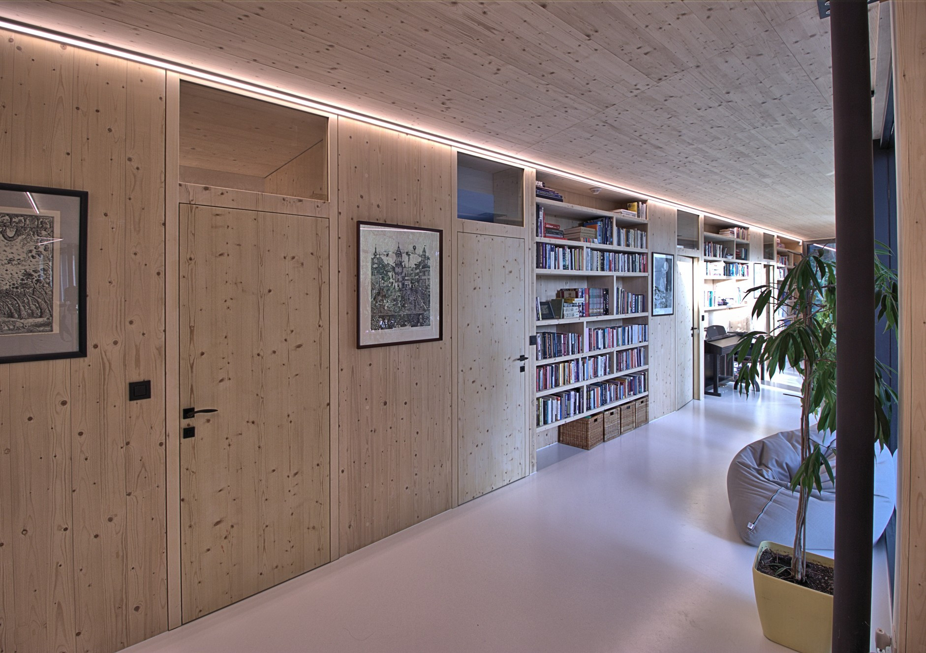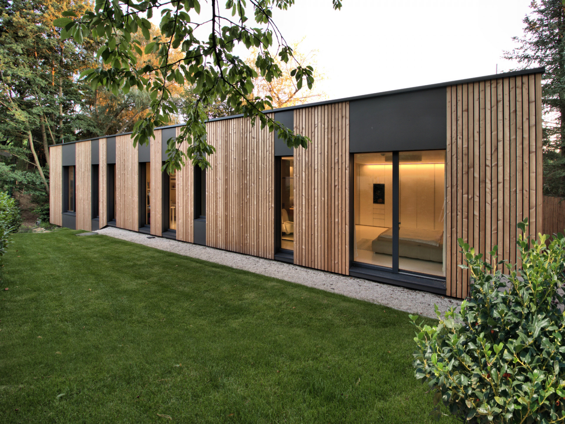 Bratislavský ateliér Molnár-Peráček dlouhodobě navrhuje stavby z CLT panelů (anglicky cross-laminated timber). Rodinný dům s názvem CLT16 se nachází v okrajové městské části Bratislavy Záhorská Bystrica na svažité parcele s množstvím vzrostlých stromů, na které návrh přirozeně reaguje. Architekti propojili dům se zahradou pomocí prosklených ploch a velkorysé terasy, přičemž jeho hmotu rozdělili do dvou křídel s atriem. V interiéru pak zaujme především prosklená "obytná chodba", kterou mohou majitelé využívat třeba jako čítárnu.