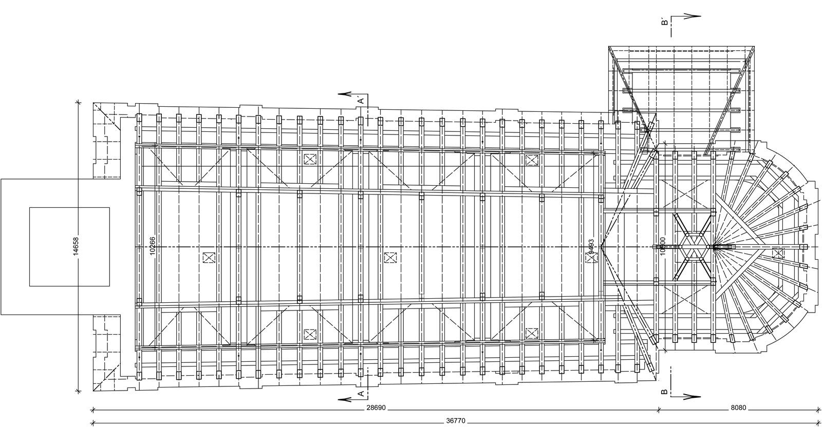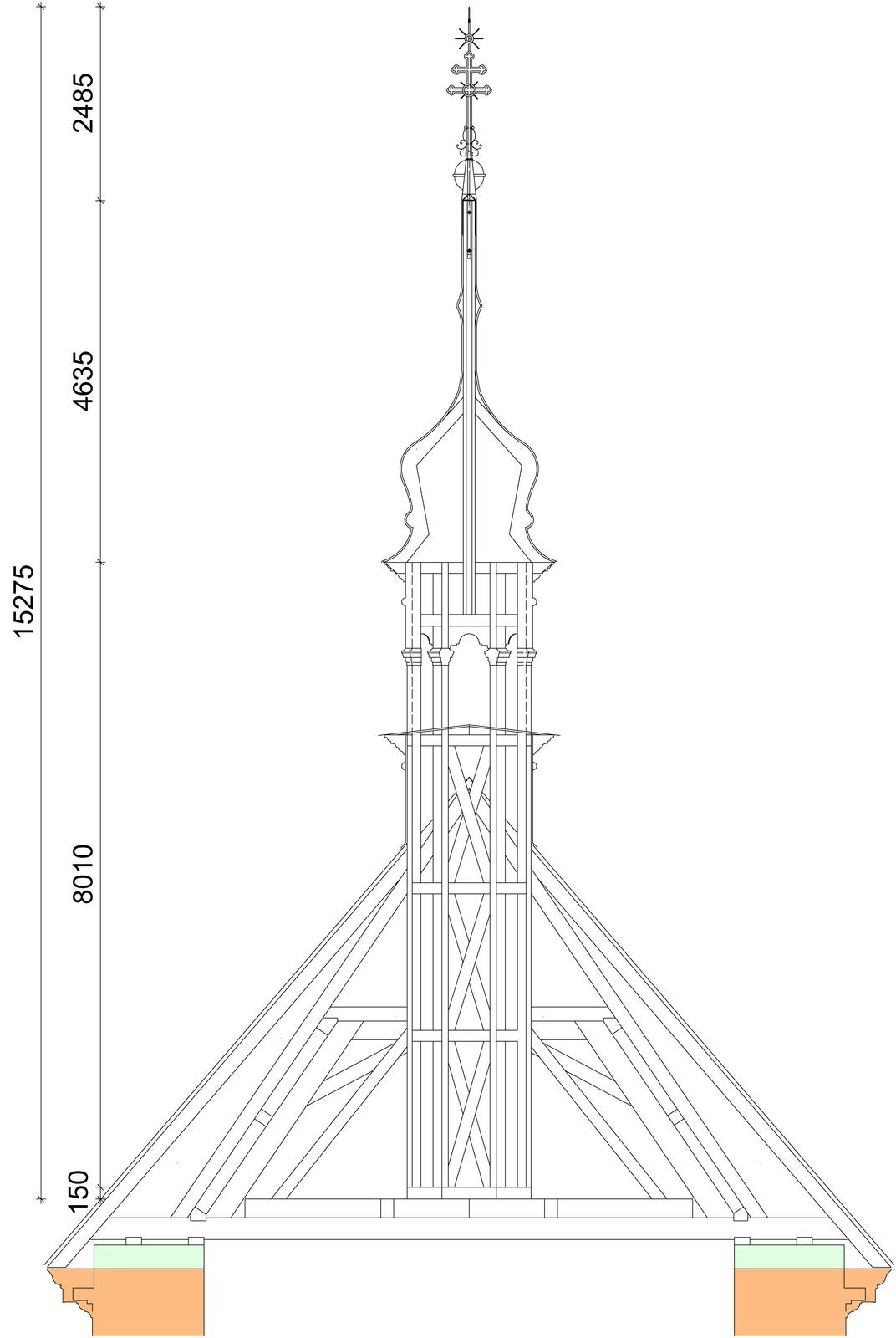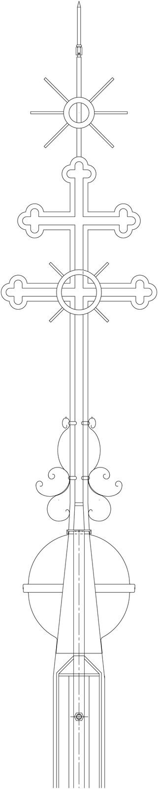 Na hrotnici sanktusní věže byl navržen ocelový kříž, pro který byl zhotoven detailní výrobní výkres