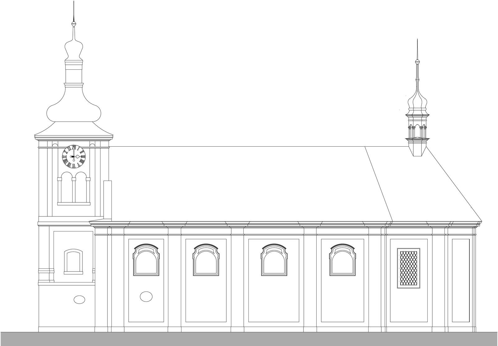 Pohled jižní v současné době dokončování rekonstrukce kostela, duben 2017 - foto