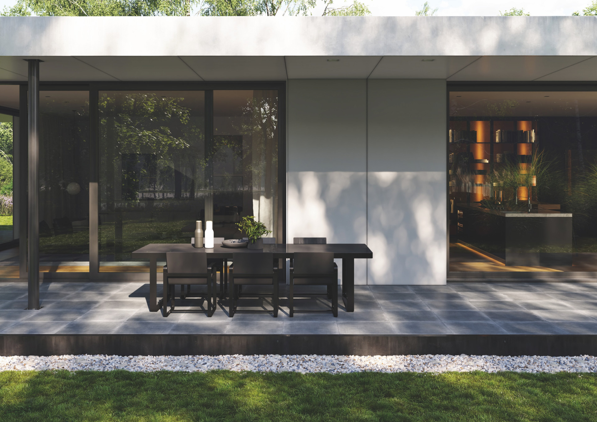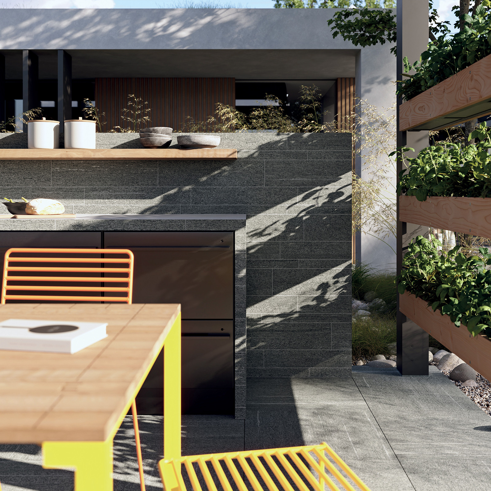 Po několika letech strávených ve švédském hlavním městě Stockholmu se interiérová designérka Jeanette Hammarstedtová s rodinou přestěhovala na venkov do rodného klidného Västerviku. Nyní žije s manželem a dětmi v domě, který během posledních osmi let proměnili zevnitř i zvenčí. Nejnovějším přírůstkem je bazén a terasa u domu, které byly dokončeny vloni v létě. Český specialista na keramické obklady dodal pro tento projekt venkovní dlaždice ze série Quarzit Outdoor, které dokonale ladí s kvalitním designem rodinné terasy, bazénu a rozlehlé zahrady.