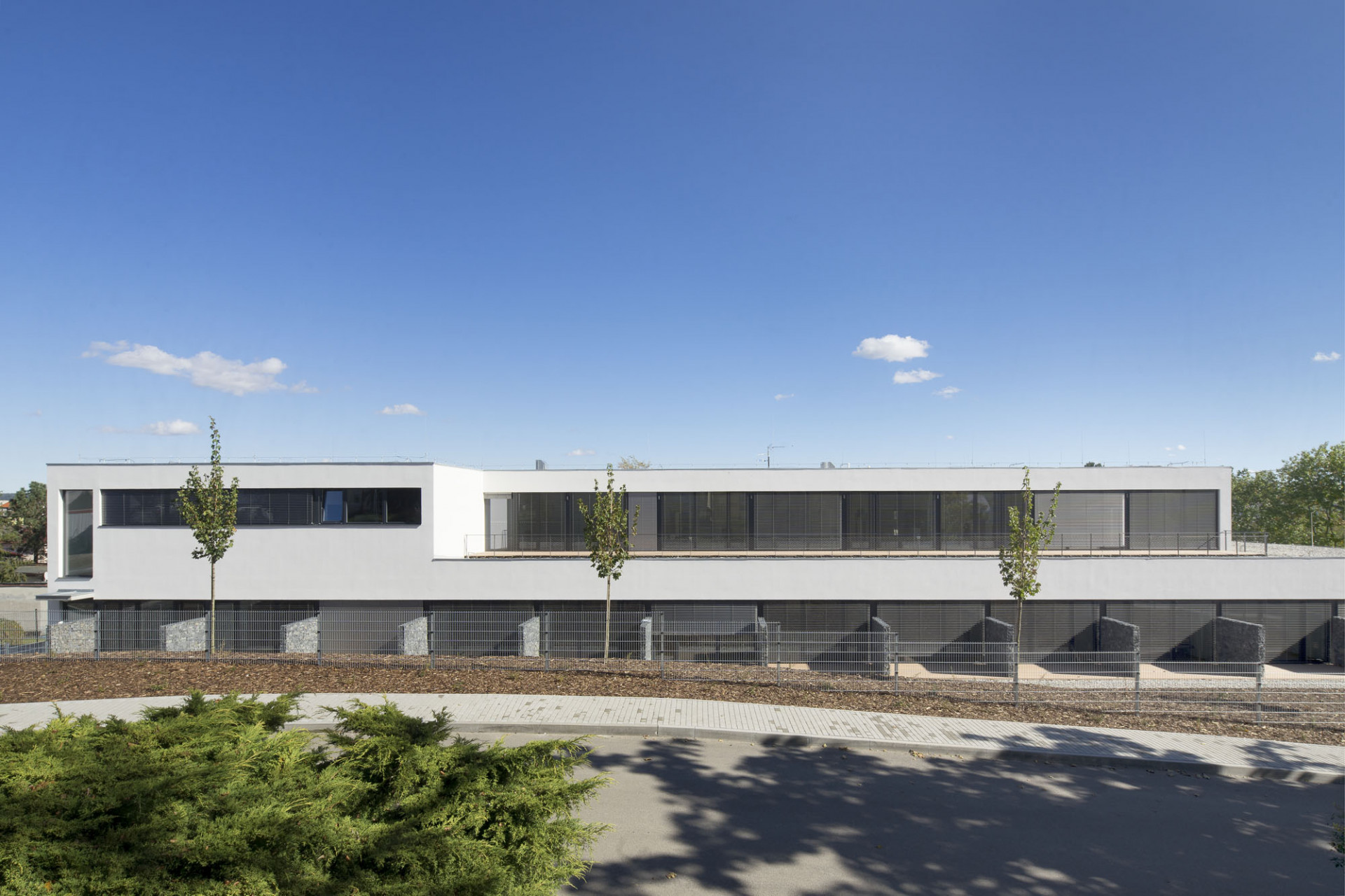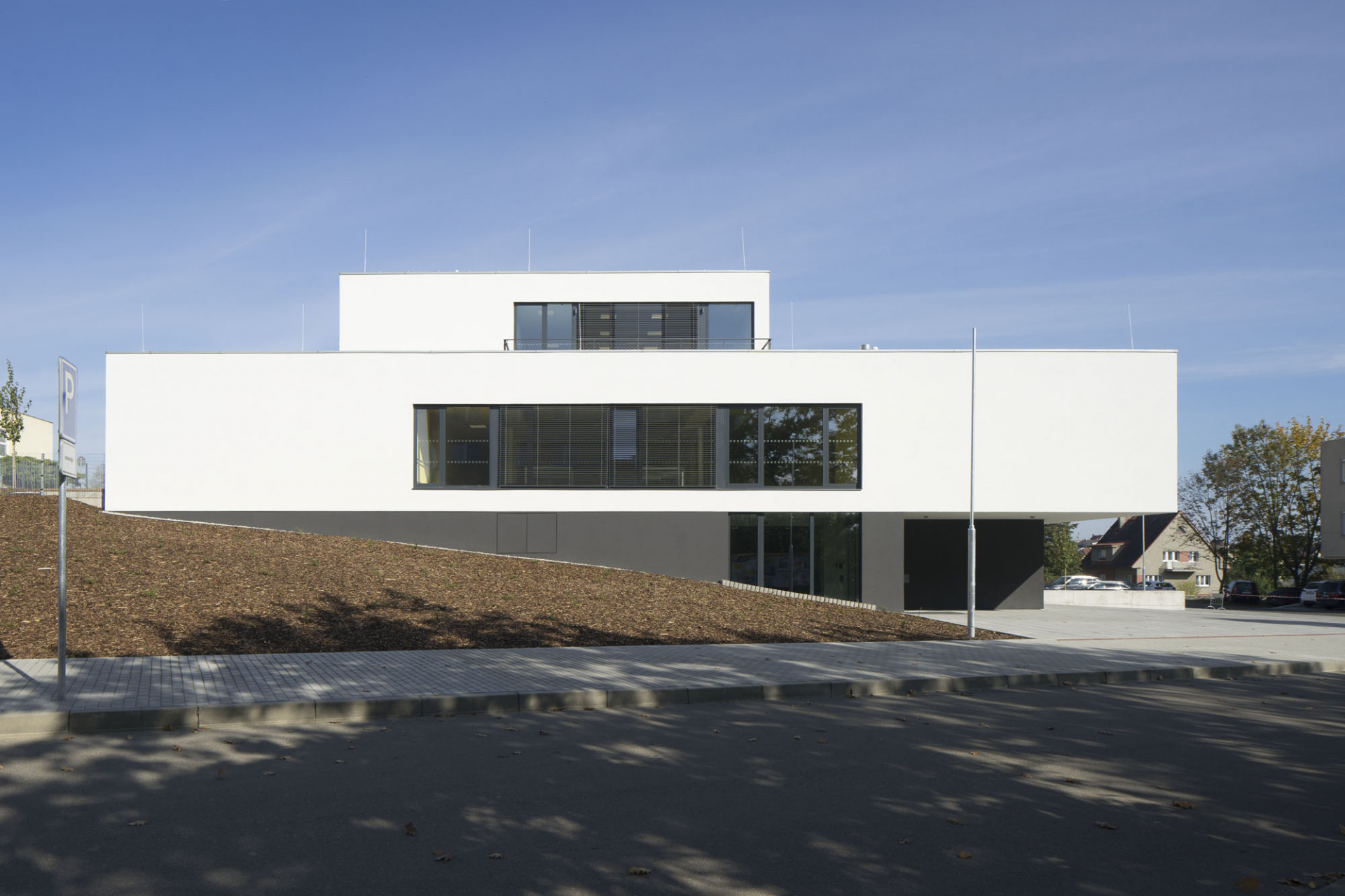 Vnější architektonický výraz budovy charakterizuje hladká bílá omítka a velkoplošná hliníková a plastová okna s antracitovými rámy. Plochy zasklení opticky splývají s tmavými okenními rámy a vytváří tak kontrast k bíle omítaným plochám. Pásová okna i výrazně prosklený parter bez dalšího členění oken umocňují dominující horizontálnost stavby. „Dnes již téměř běžně dostupné nástroje moderní architektury, jako jsou velká okna, vnímám jako významný posun od nemocniční sterility směrem k rezidenční architektuře. V tomto smyslu architektura funguje jako „léčebný“ nástroj," doplňuje Skala.