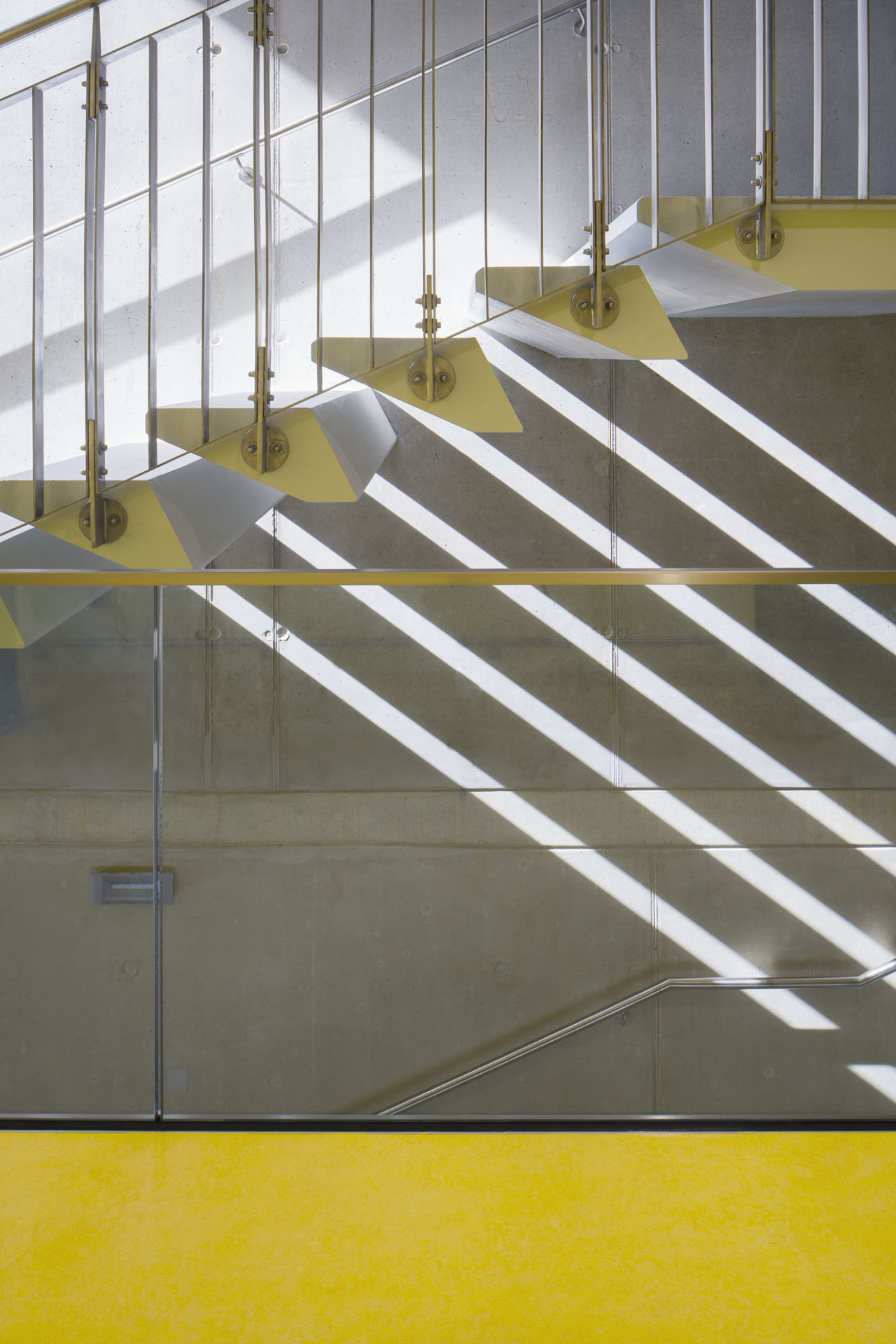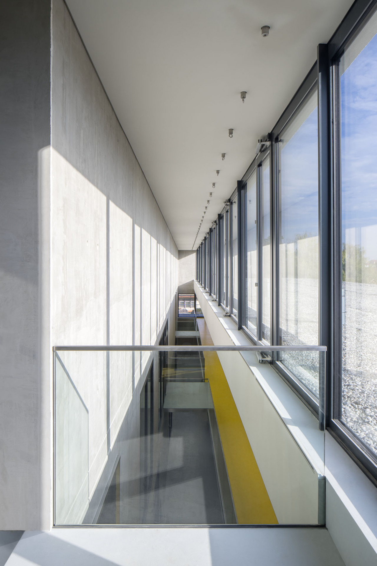 Základní dispoziční členění tvoří podélně orientovaný pěti trakt. Dominantní prvek uspořádání interiéru představuje vertikální průlom vzniklý odsunutím východního traktu, který umožňuje bazilikální osvětlení nejnižší úrovně 1. nadzemního podlaží. V přízemí tak vzniká jakási vnitřní kolonáda, v patře pak galerie.