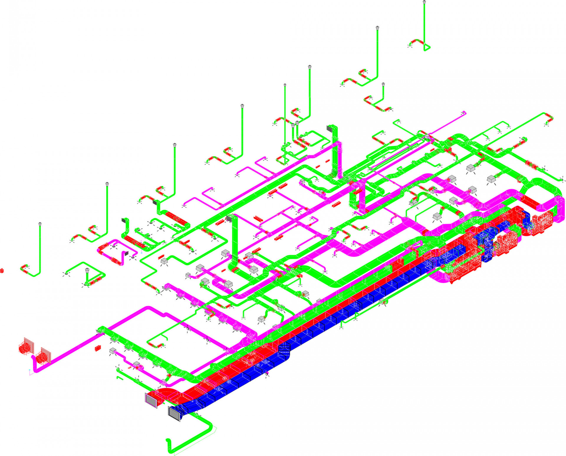 Projektanti zpracovávali jednotlivé stupně projektové dokumentace s využitím metodiky BIM. Základ tvořil prostorový model v BIM systému Allplan, v němž byly zaneseny všechny konstrukce včetně podrobných informací o jejich typu, materiálovém složení, požadavcích požární ochrany, cenových kódech apod. Součástí 3D modelu byly i rozvody TZB, což významně usnadňovalo koordinaci. Díky podrobným informacím vloženým do modelu se pak jednoduše generovaly jednotlivé výměry a objemy pro oceňování.