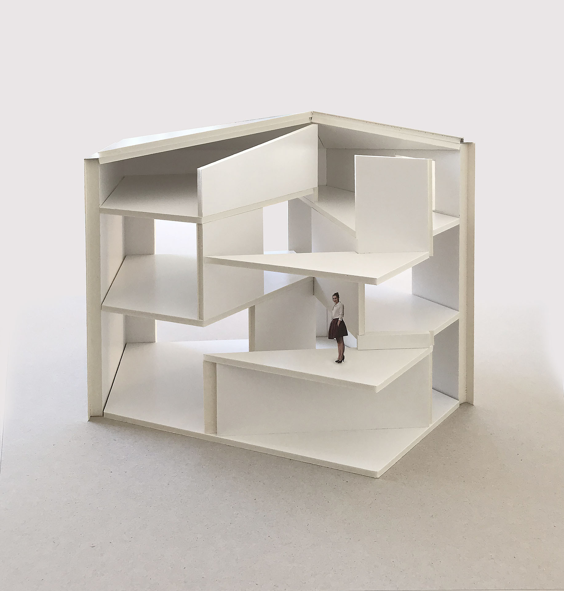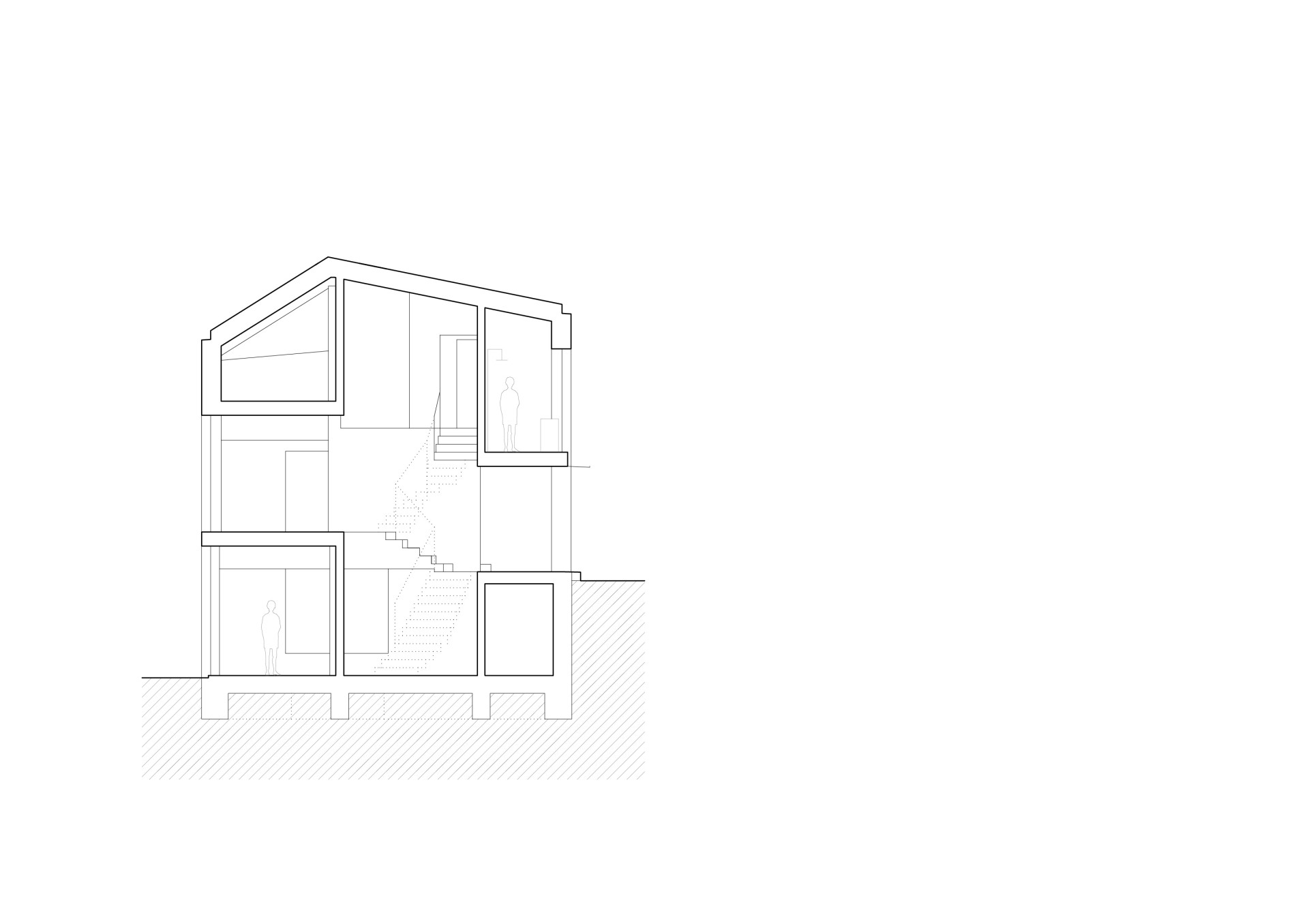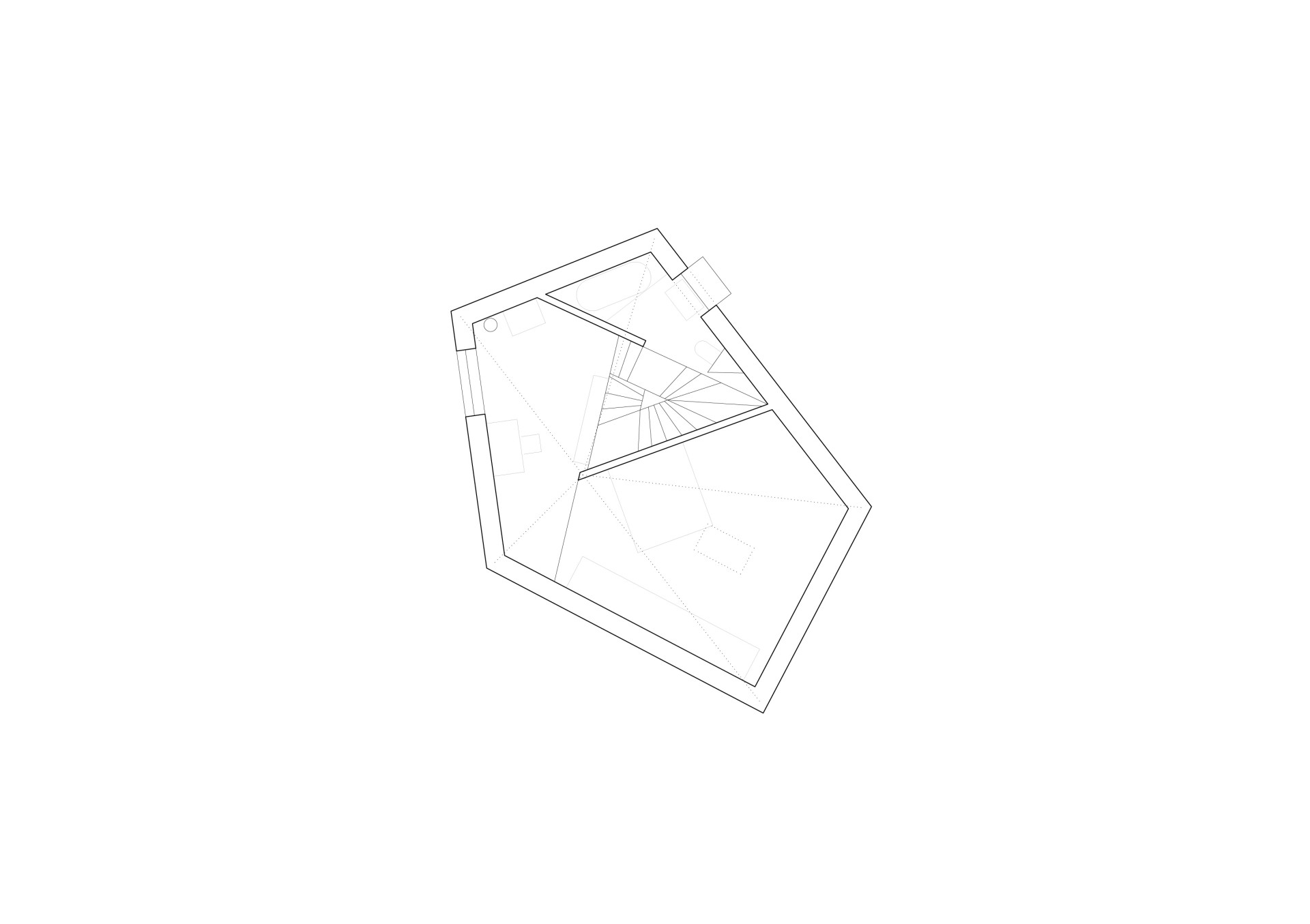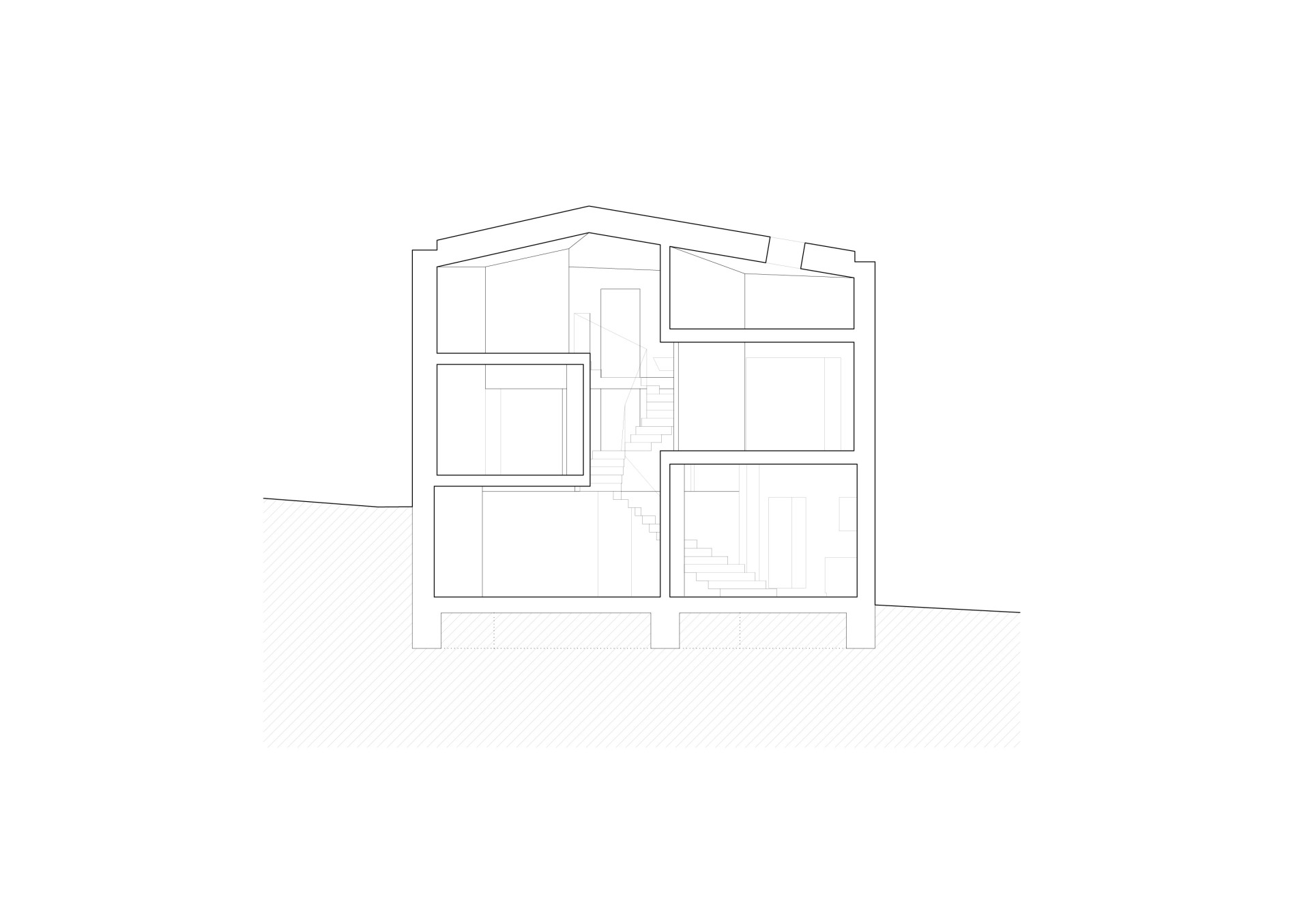 Dětské pokoje jsou situovány na třetí a čtvrté úrovni. Díky tomu mají děti dostatek soukromí a vlastního prostoru. V páté úrovni se nachází koupelna, v šesté pracovna a na nejvyšší, sedmé úrovni, je umístěna hlavní ložnice rodičů, která zajišťuje maximální soukromí a výhledy do krajiny. Všechny místnosti jsou propojeny centrálním vřetenovým schodištěm, které je na trojúhelníkovém půdorysu. Funguje jako dlouhá vertikální komunikace a nahrazuje chodby - ty totiž v domě nenajdeme.