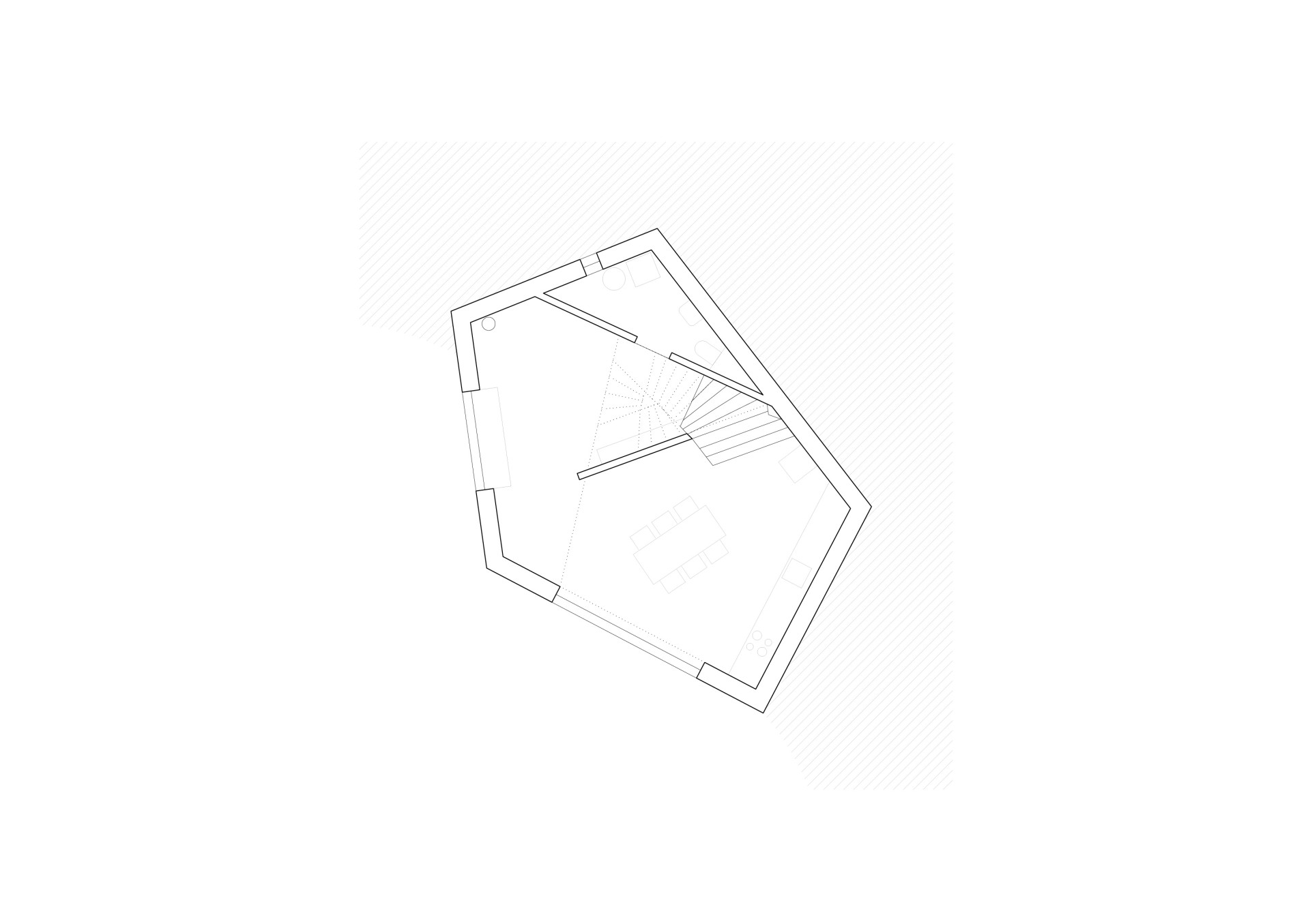 Dům stojí ve svahu s výhledem do okolní krajiny. Z okolní zástavby vyniká, a to především svým nevšedním půdorysným tvarem pětiúhelníku, nápadné je také, jak roste do výšky. To proto, aby zůstal co největší prostor pro zahradu.