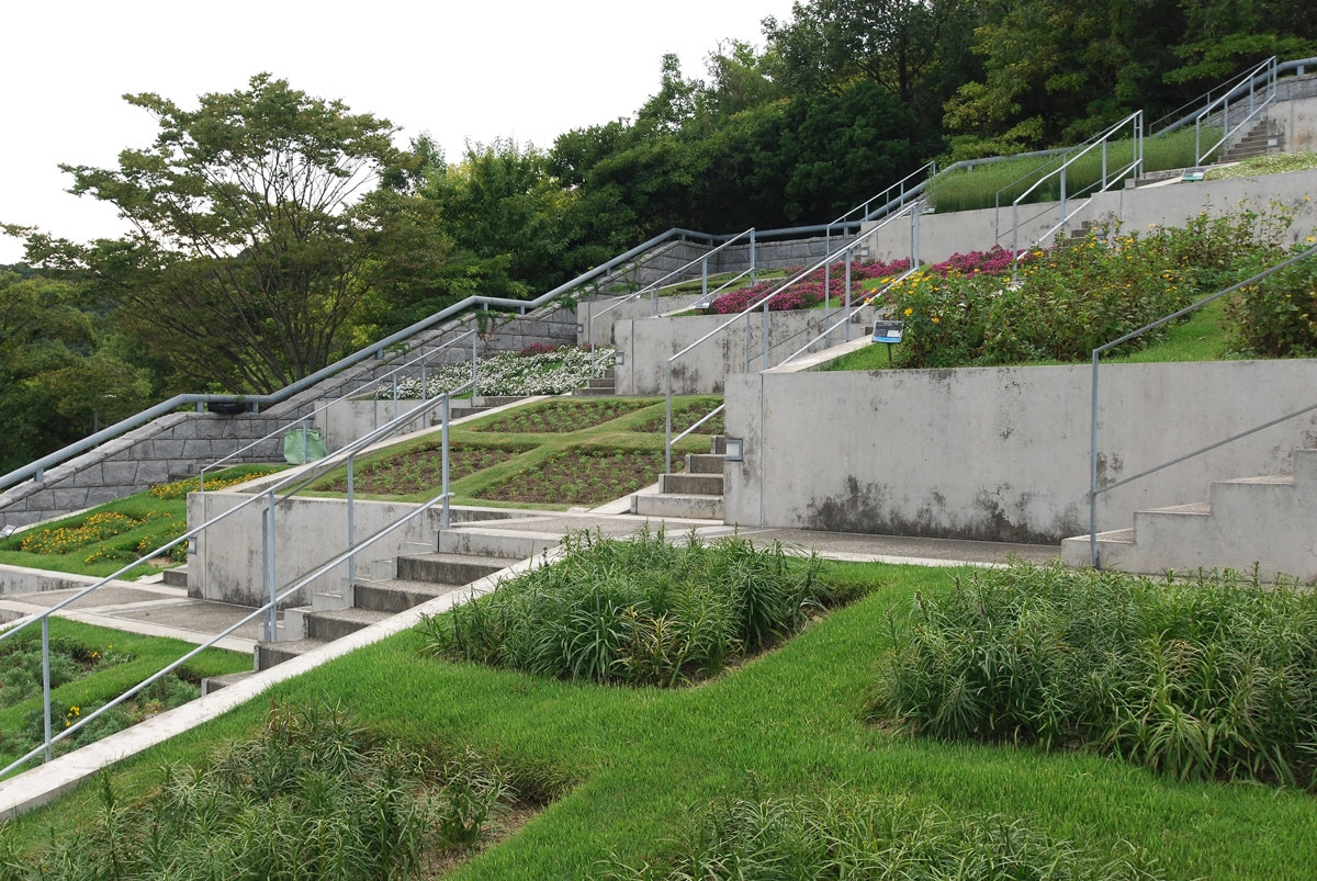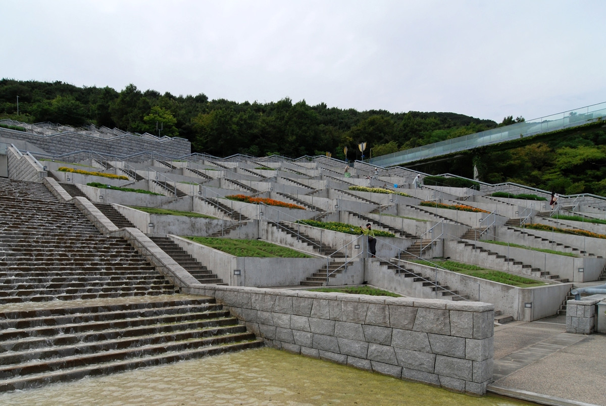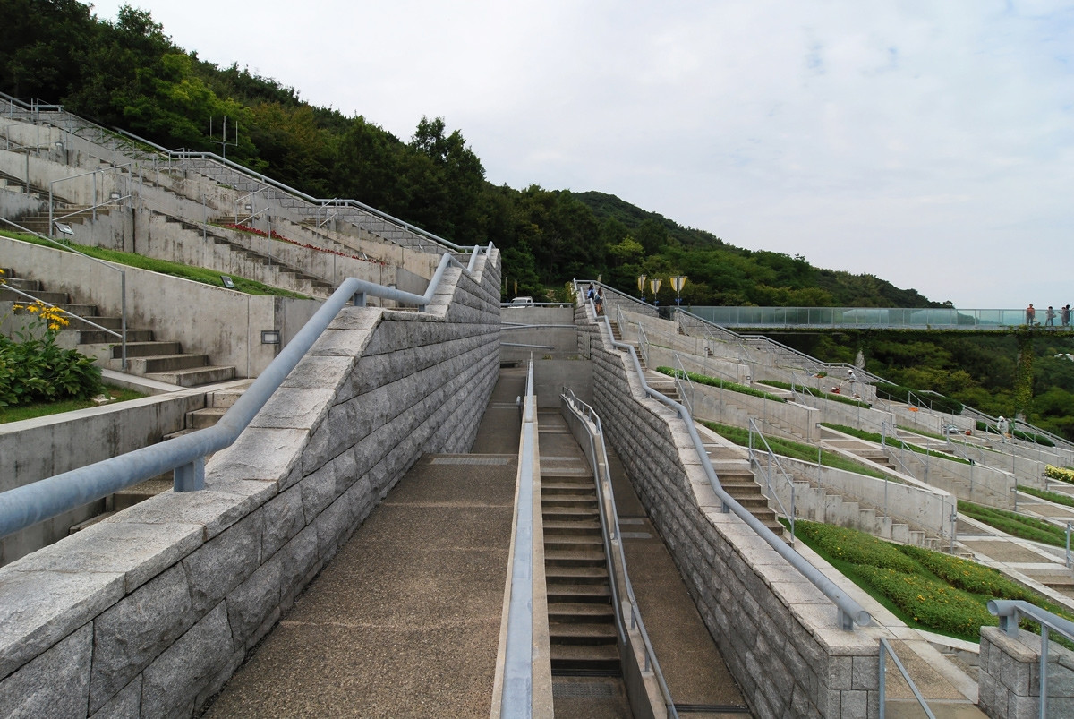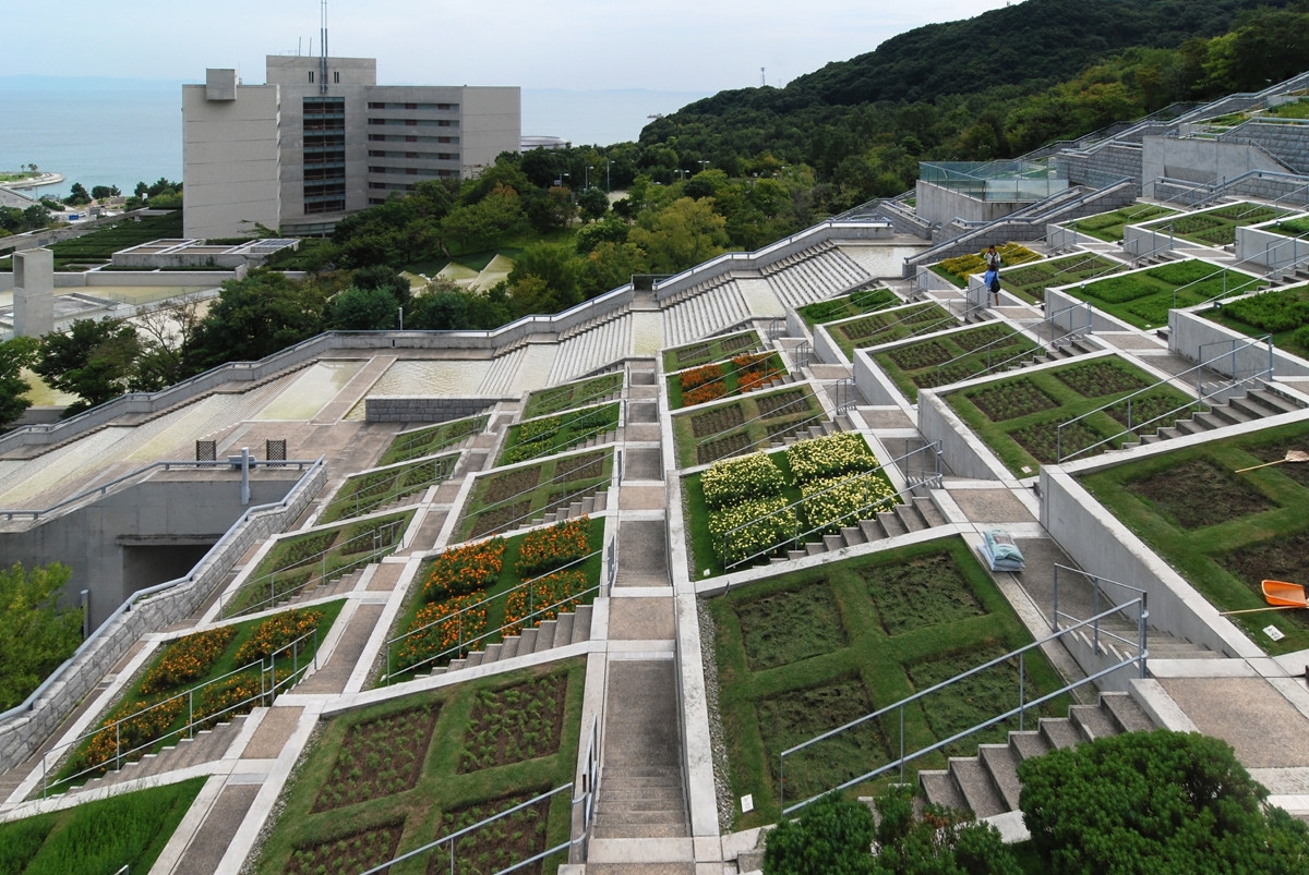 Komplex budov navržený Tadaem Andem na japonském ostrově Awaji zdobí neobvyklý krajinářský celek. The 100 Step Garden připomíná svým návštěvníkům neštěstí, ke kterému došlo na ostrově v roce 1995, kdy při zemětřesení přišlo o život několik tisíc lidí.