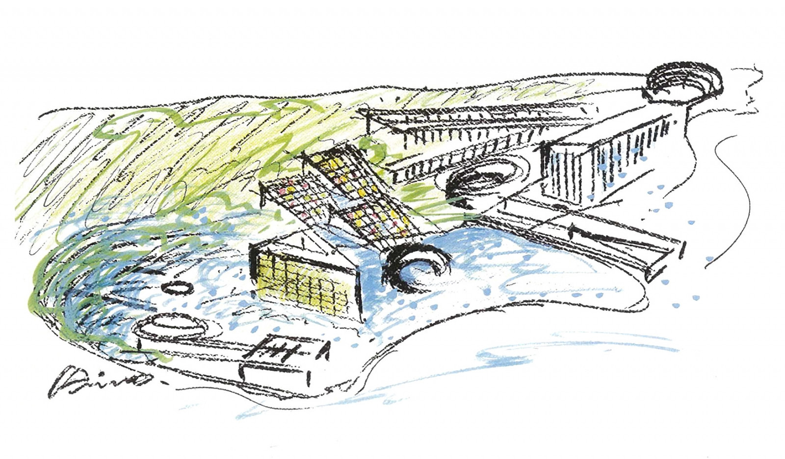 Autor návrhu je známý svou pozorností k přírodě. Konkrétněji ke vztahu mezi člověkem a jeho architekturou na jedné straně a přírodními prvky a krajinou na straně druhé. Přestože má park geometricky přísnou formu, dobře zapadá do okolní krajiny a kopíruje sklon horského terénu. Na ostatních částech objektu, ke kterým patří amfiteátr, vnitřní zahrada nebo náměstí, lze také pozorovat autorův cit pro krajinářskou architekturu.