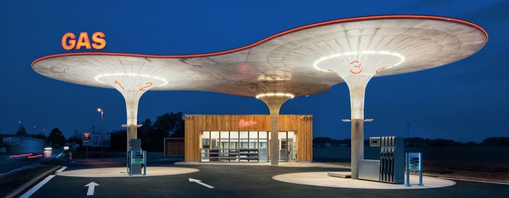 Recenzií na čerpacie stanice pohonných hmôt (terminus technicus) je ako šafranu; v histórii tohto časopisu bude táto zrejme prvá. Má to svoj dôvod: nepovažujeme ich za (dobrú) architektúru. „Benzínky”, tak ako ich vo všeobecnosti poznáme, sú čisto utilitárne stavby, položené in medias res do holej krajiny pozdĺž hlavných dopravných ťahov alebo vklinené (takmer vždy) provokatívnym spôsobom do štruktúry mesta.