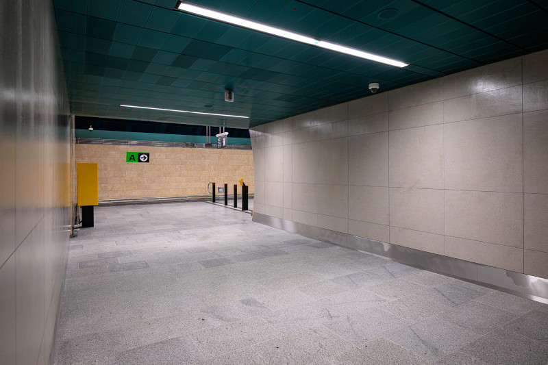 Výsledné řešení je nejen funkční, ale i architektonicky zdařilé. Přestupní chodba navazuje v první části na materiálový jazyk původního nástupiště, zatímco druhá část volí střídmější estetiku. „Nový výstup navazuje na architekturu stanice nejen technicky, ale i výrazově. Použili jsme původní materiály, reliéfní motivy i barvy, a zároveň jsme do druhé části přestupní trasy vědomě vložili kontrast v podobě minimalistické, soudobé vrstvy,“ říká Anna Švarc. Právě tento kontrast podle ní odráží přístup ke stavbě jako k živému celku, jež se dále vyvíjí.