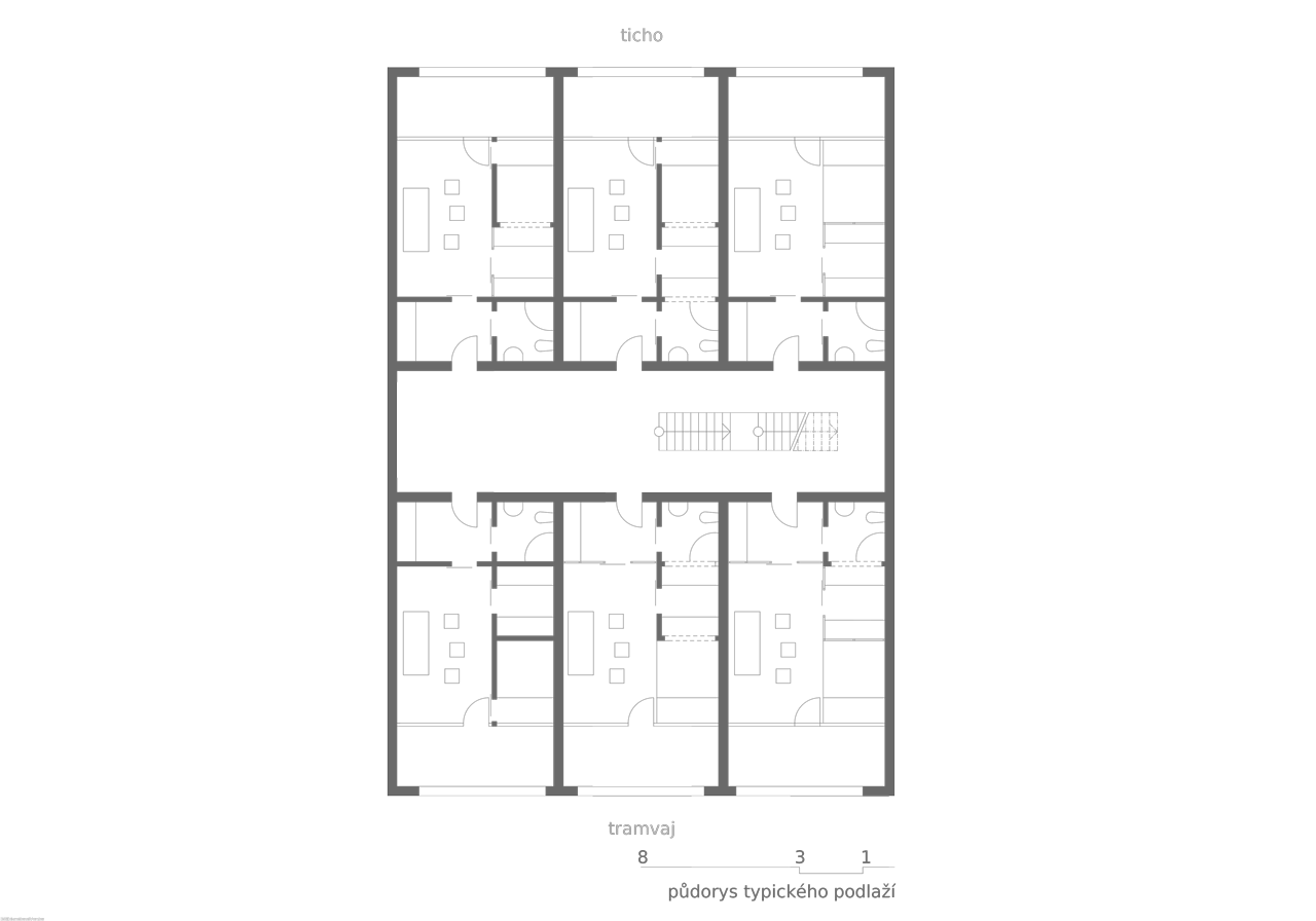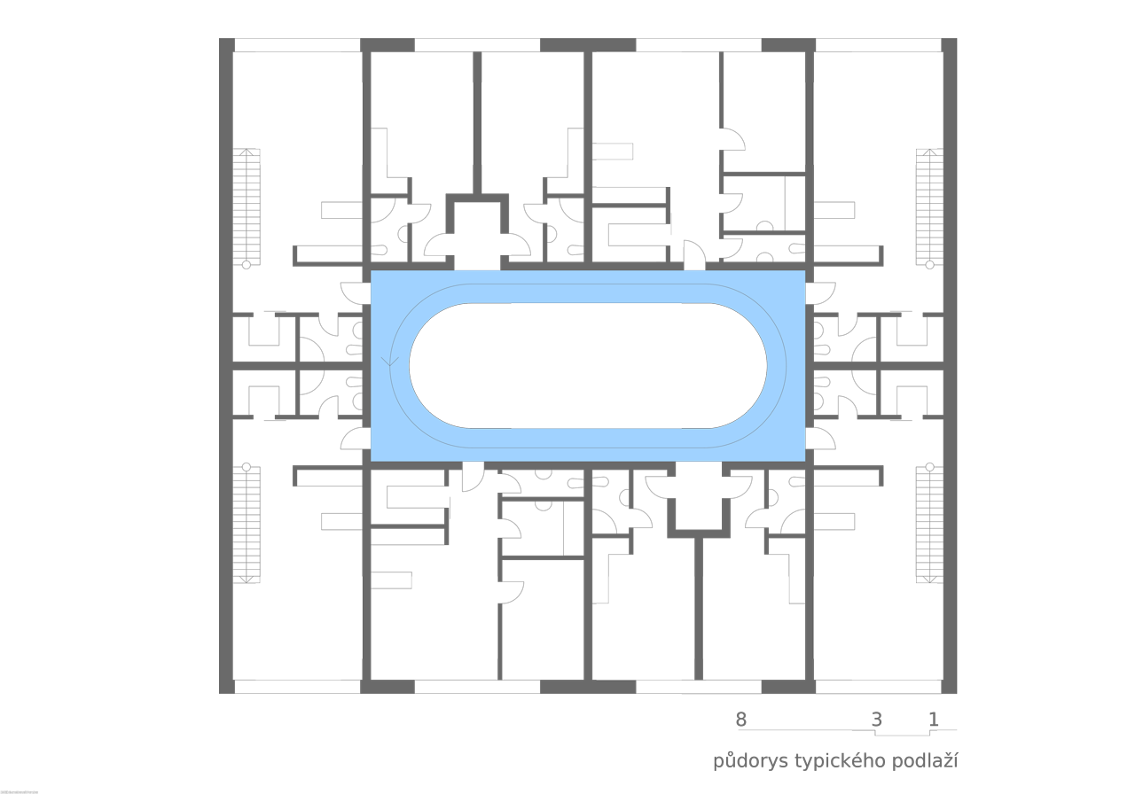 Pavla Maxová, Jan Novotný, Blok z domů, Bytový dům, půdorys typického podlaží - foto