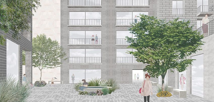 Pavla Maxová, Jan Novotný, Blok z domů, pohled z náměstí - foto