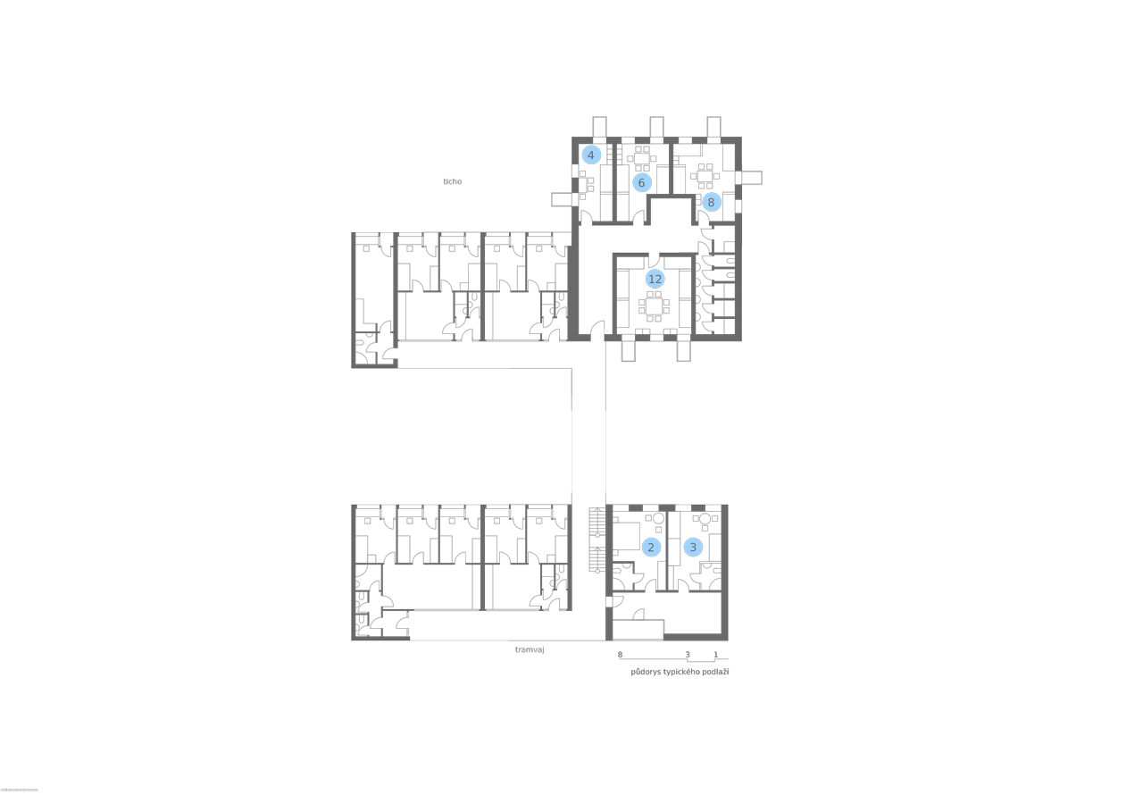 Pavla Maxová, Jan Novotný, Blok z domů, Hipster House, půdorys typického podlaží - foto