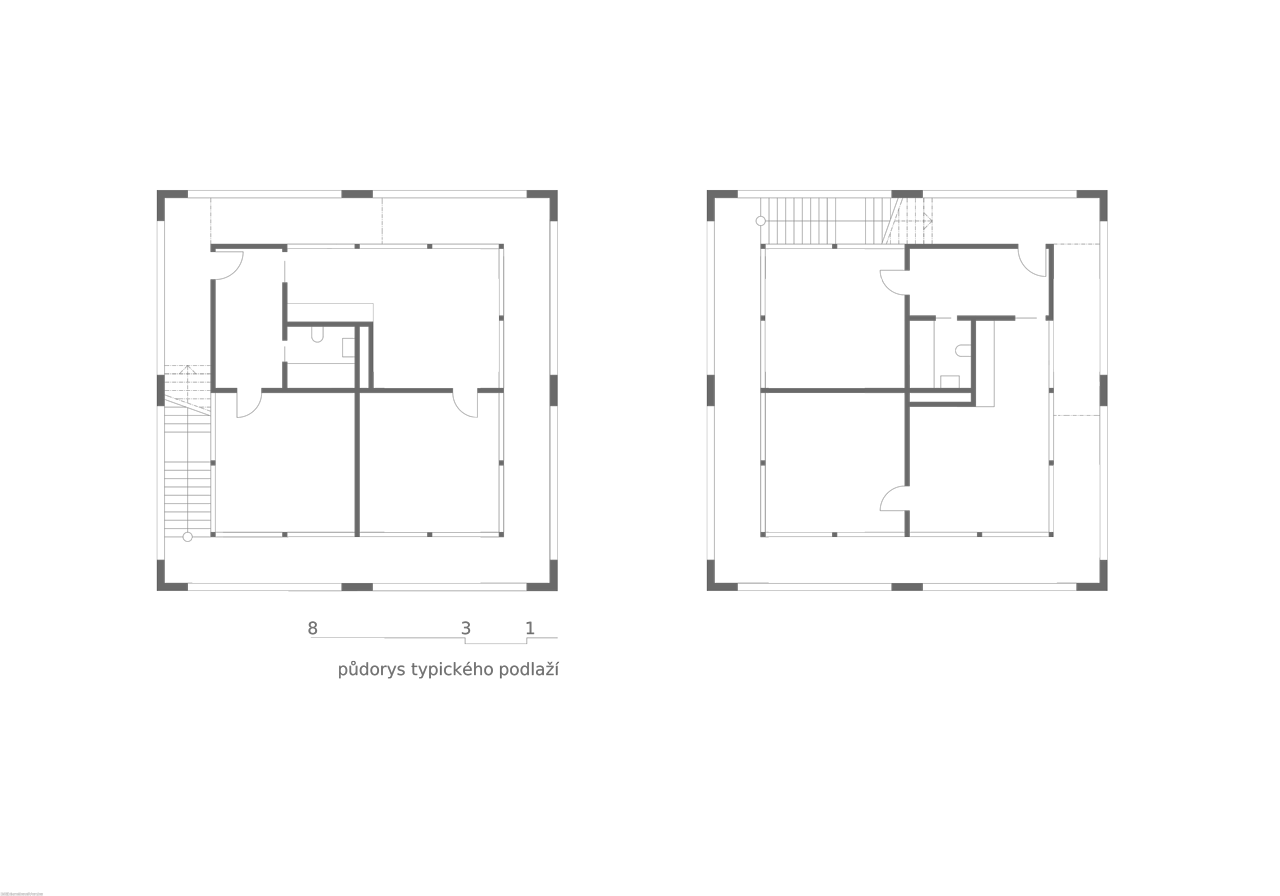 Pavla Maxová, Jan Novotný, Blok z domů, Věž, půdorys typického podlaží - foto