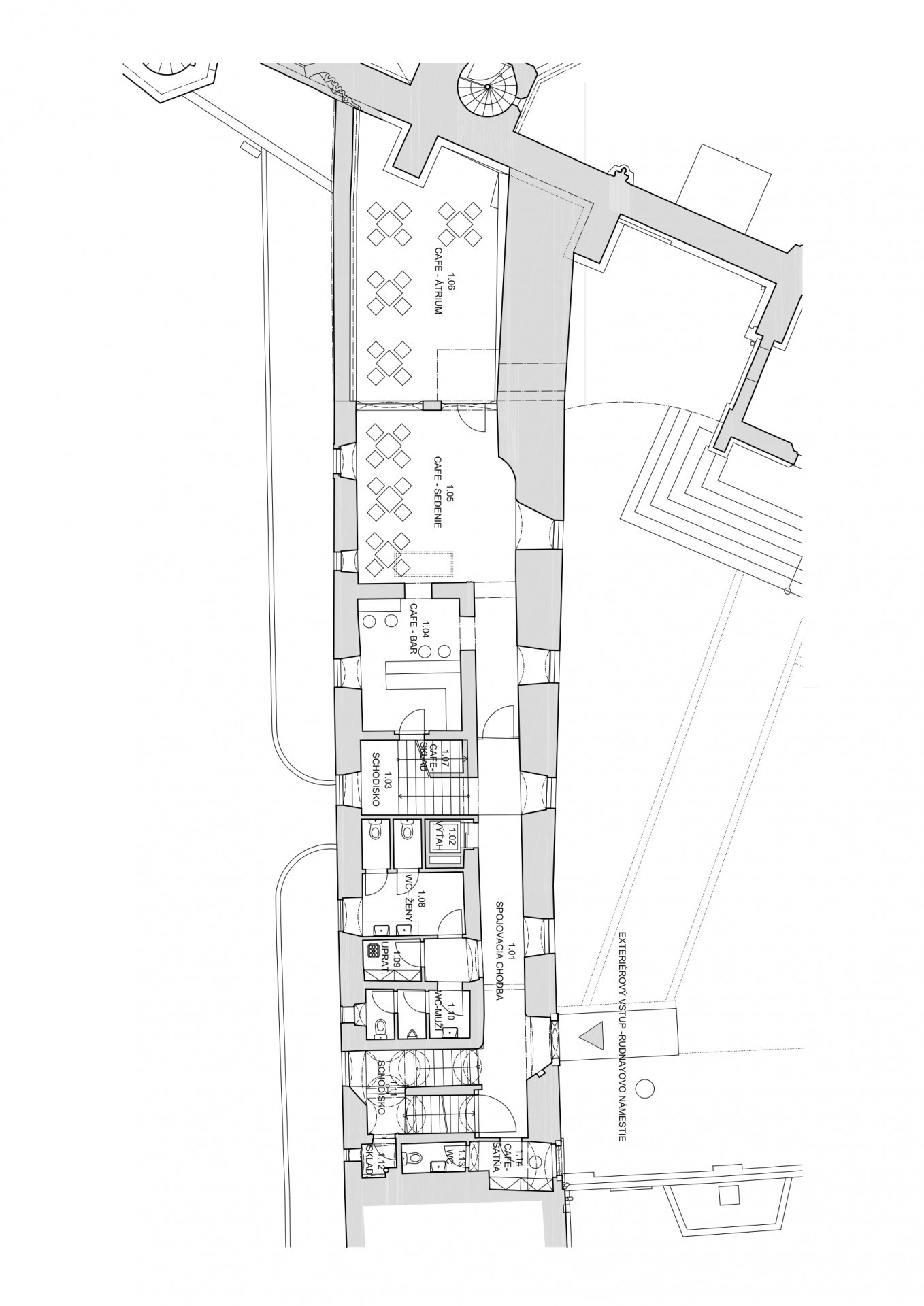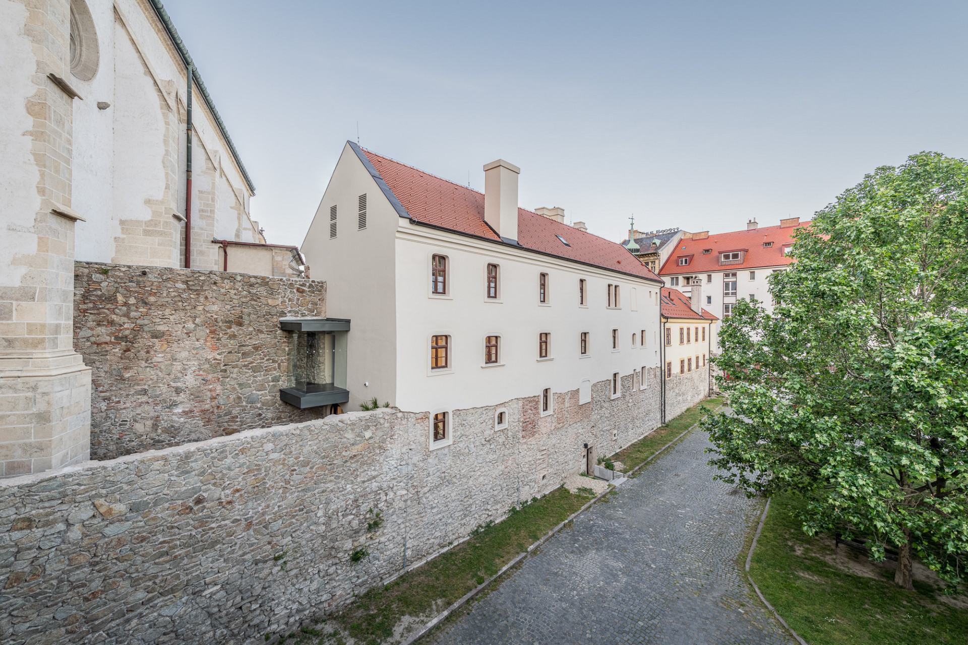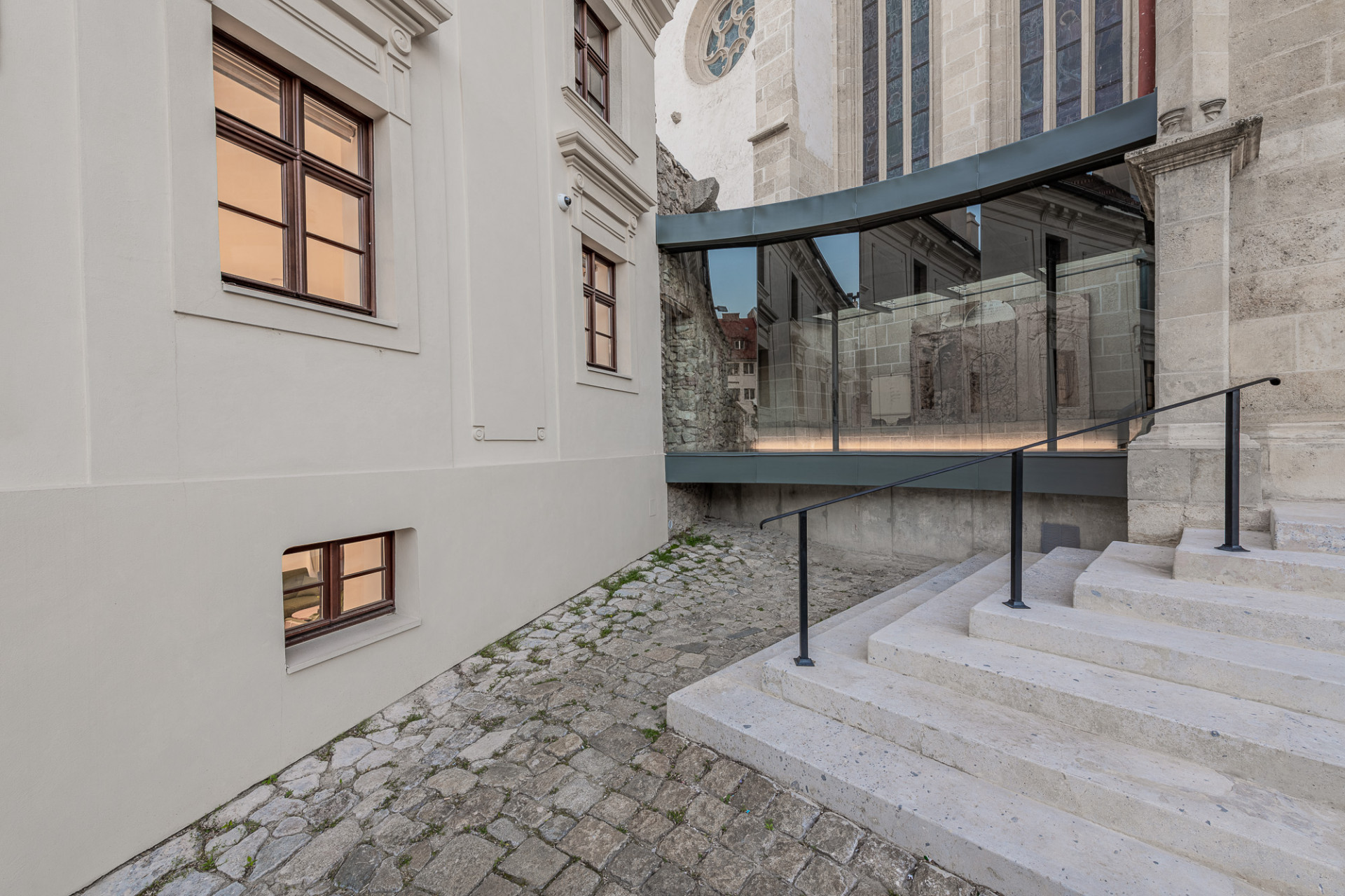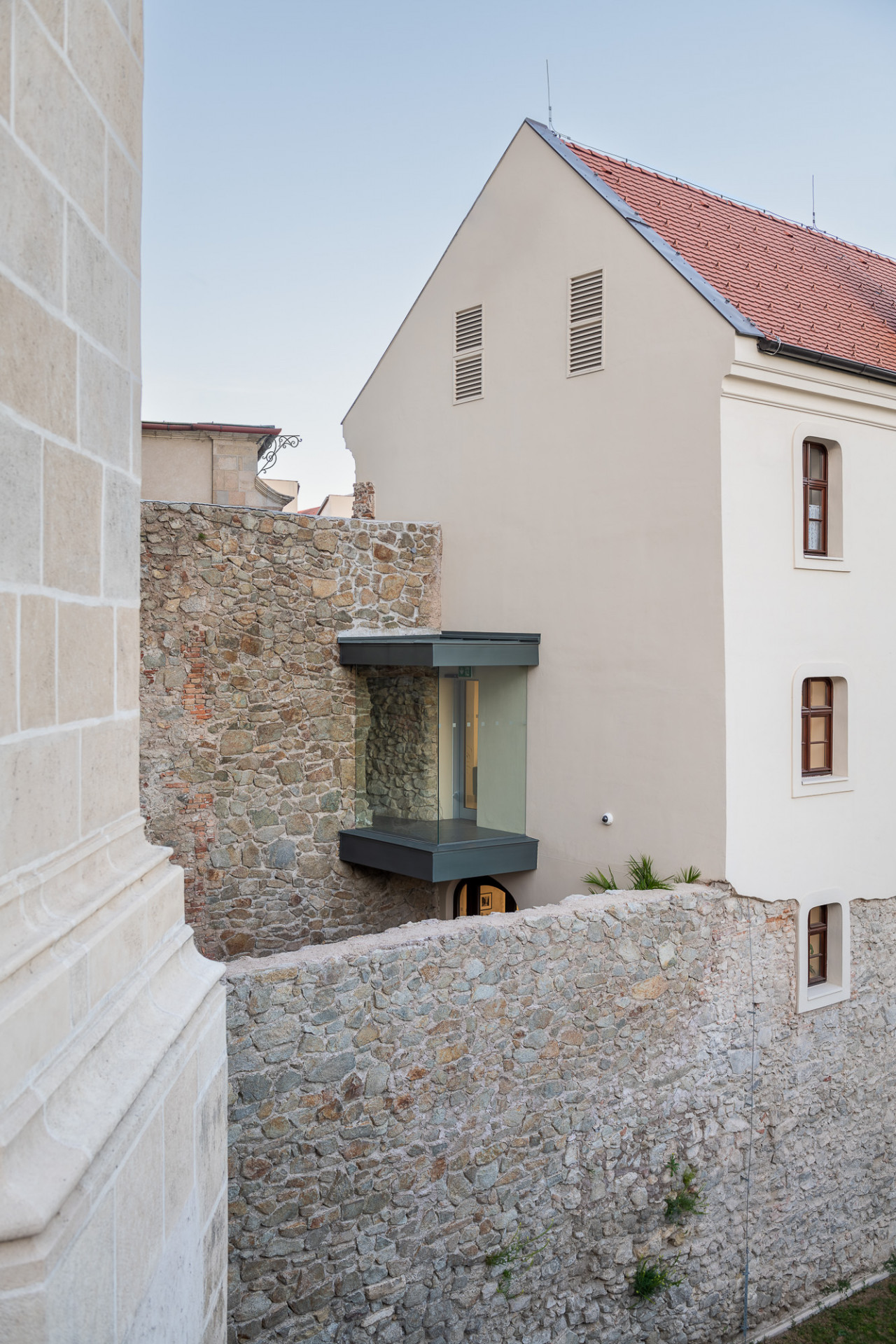 Andrej Botek + Pavol Pauliny: Pamiatkári neboli zo začiatku úplne naklonení nášmu návrhu, ale napokon sme si ich získali. Obaja sa zaoberáme pamiatkovou obnovou a navyše ju aj učíme na Fakulte architektúry a dizajnu na Slovenskej technickej univerzite v Bratislave. Z hľadiska metodického prístupu sme mali všetko dobre vyargumentované. V mieste dostavby presklenej chodby ku mestskej hradbe a katedrále sv. Martina sa v minulosti nachádzala prístavba – neskorostredoveká kaplnka, ktorá je zachytená aj na historických vedutách. S katedrálou bola spojená cez renesančný portál, zachovaný v južnej predsieni, takže sa priam núkalo jeho otvorenie a sfunkčnenie. Aj v mestskej hradbe sa už nachádzal starší zamurovaný otvor, ktorý realizovali v 19. storočí. Obe tieto skutočnosti výrazne napomohli riešeniu i argumentácii. Ak by hradobný múr nebol býval v minulosti perforovaný, zrejme by nám nový prieraz neodsúhlasili. Pri hľadaní výrazu prepojovacieho objektu sme spracovali viacero variantov od náznakových rekonštrukcií až k novotvaru a zvíťazil napokon návrh, ktorý pracuje s novými materiálmi a tvarmi, čím je v kontraste s historickým prostredím. Okrem iného voľbe tohto riešenia napomohla aj skutočnosť, že zmienený otvor v hradbe bol mimo rozsah zaniknutej stredovekej prístavby a teda jej „rekonštrukciou“ by sa nevyriešil ťažiskový problém prepojenie cez hradby.