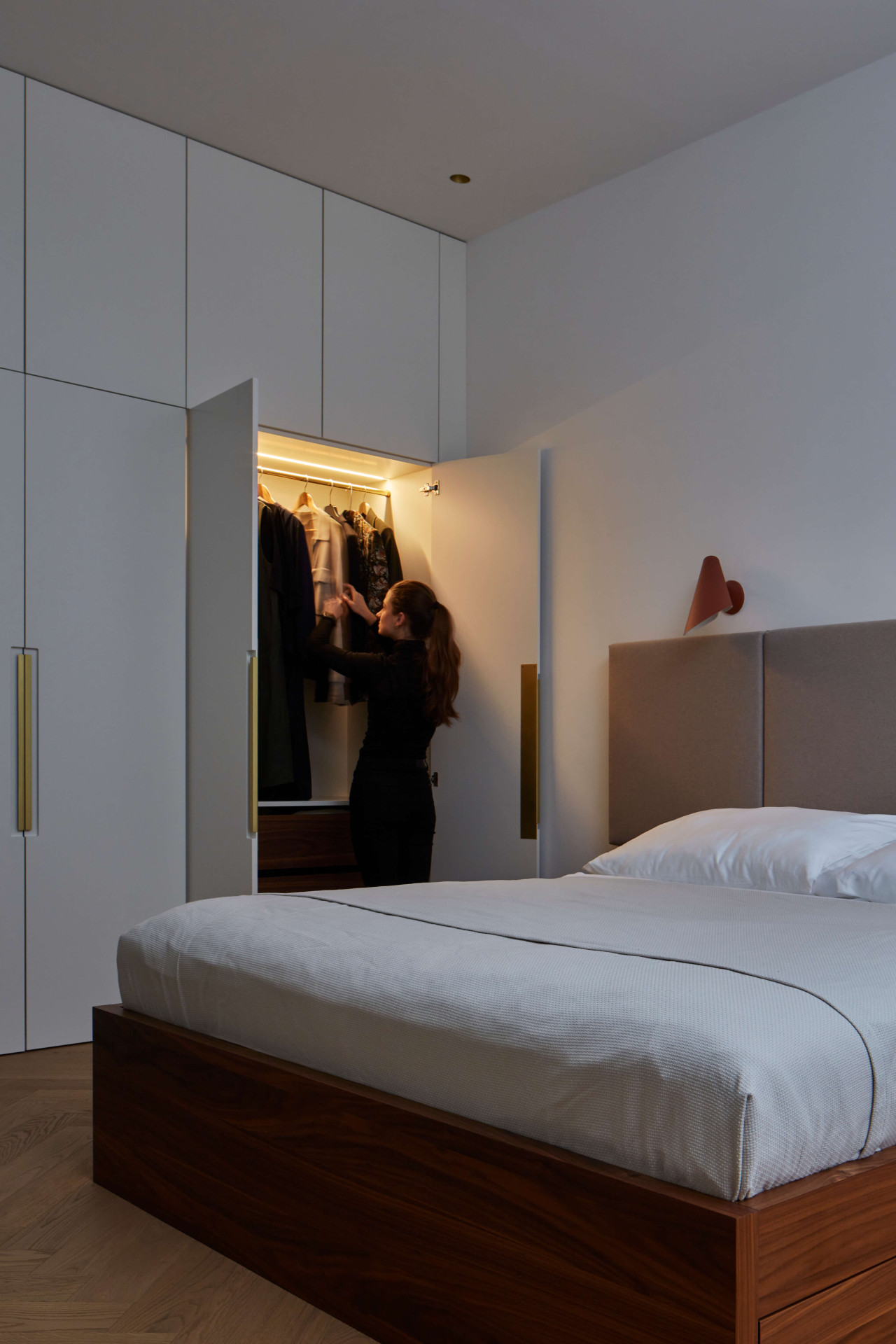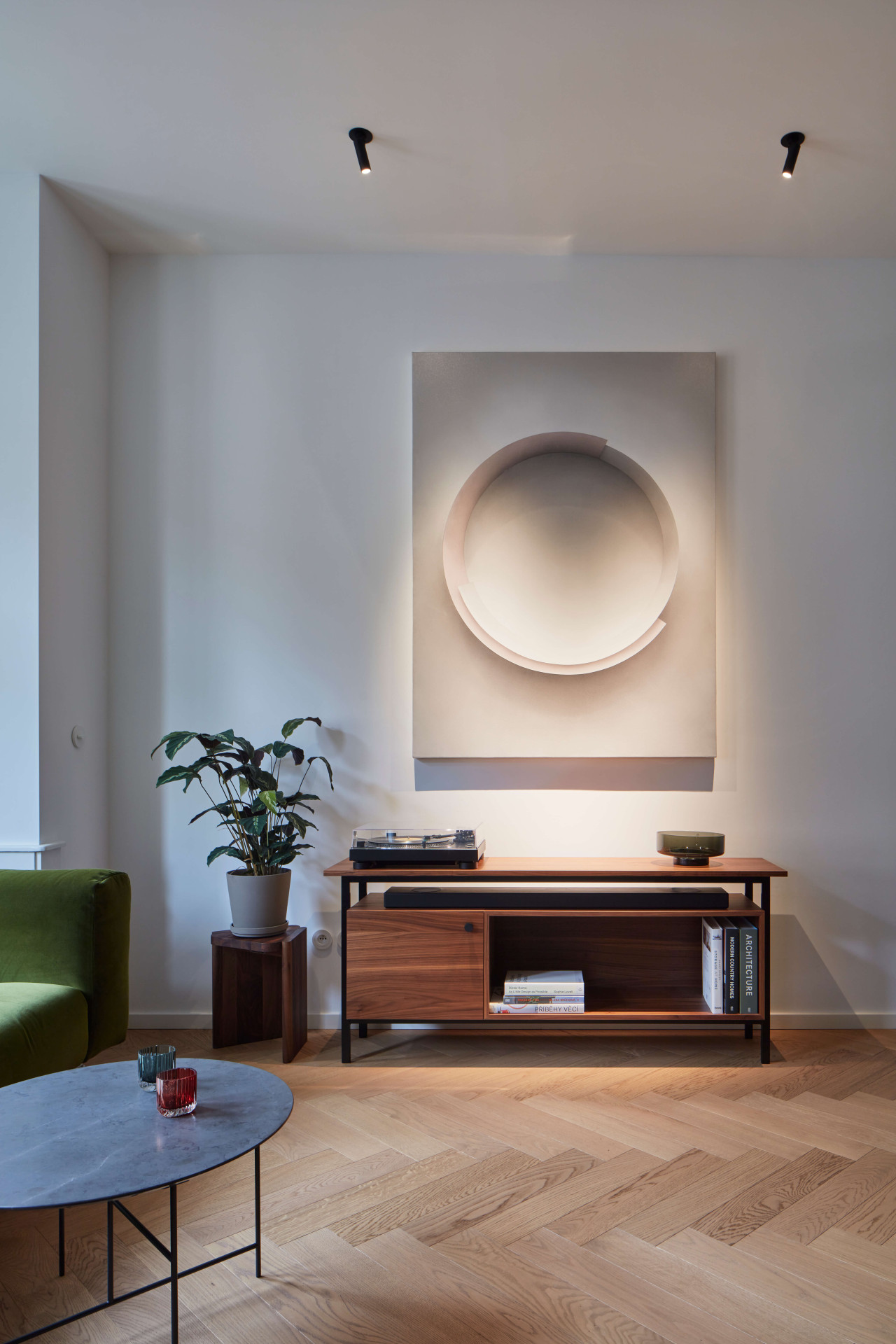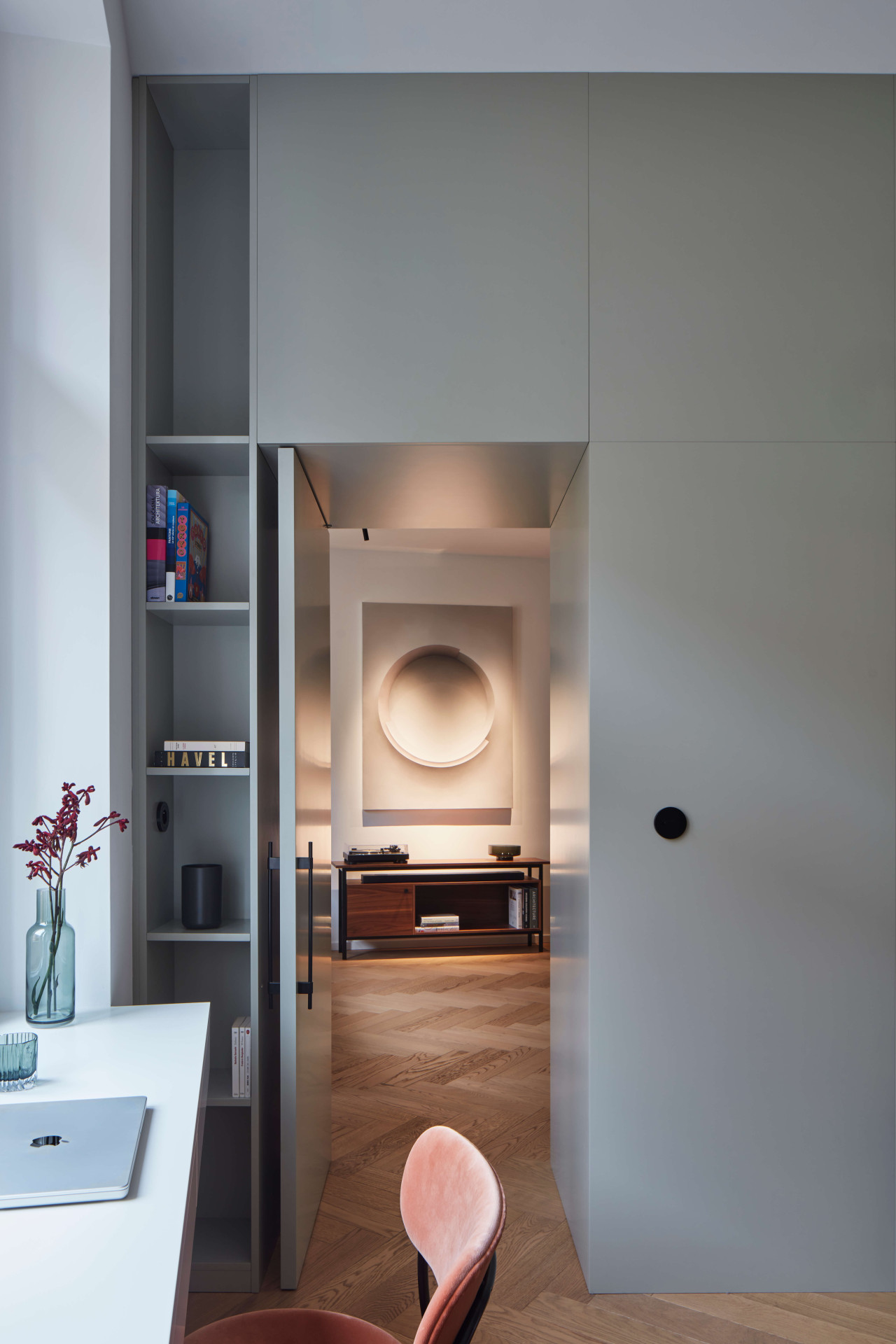 Když poprvé vstoupíte do bytu, dýchá v něm prostorová velkorysost i důmyslně navržené sestavy vestavných nábytků. Vést dialog mezi původními zachovalými prvky a nově vnesenými principy bylo od samého počátku rekonstrukce hlavním sdělovací atributem. „Veškeré zásahy byly dlouho promýšlené. Záměrem bylo vytvořit minimalistické bydlení, které bude respektovat odkaz minulosti, ale i požadavky na současný životní styl,“ upřesňuje architektka Stambolijská.
