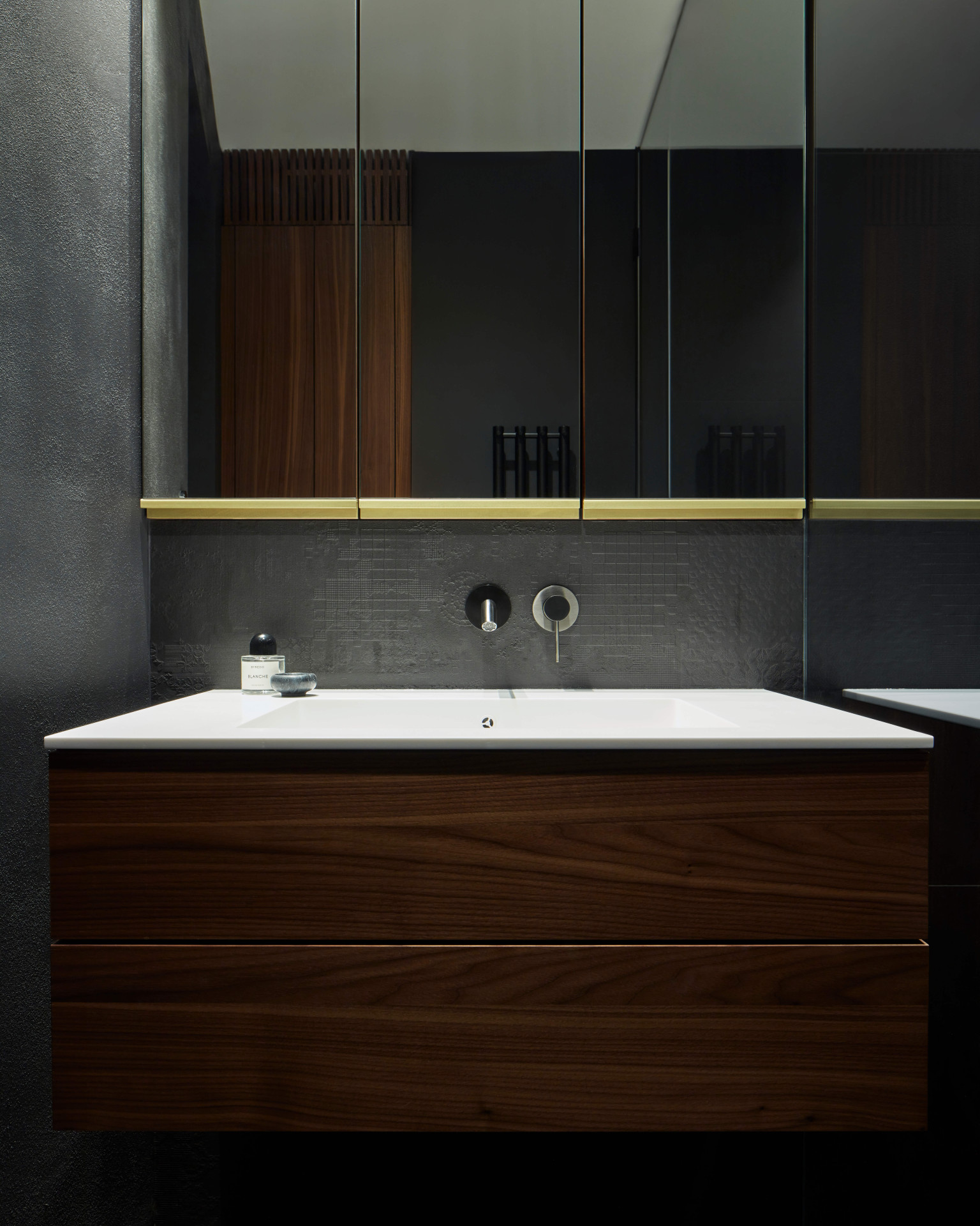 Motivy průhledů, které prostupují celým bytem, scelují produkty předních designových značek a dodavatelů do silného kompaktního vizuálu.