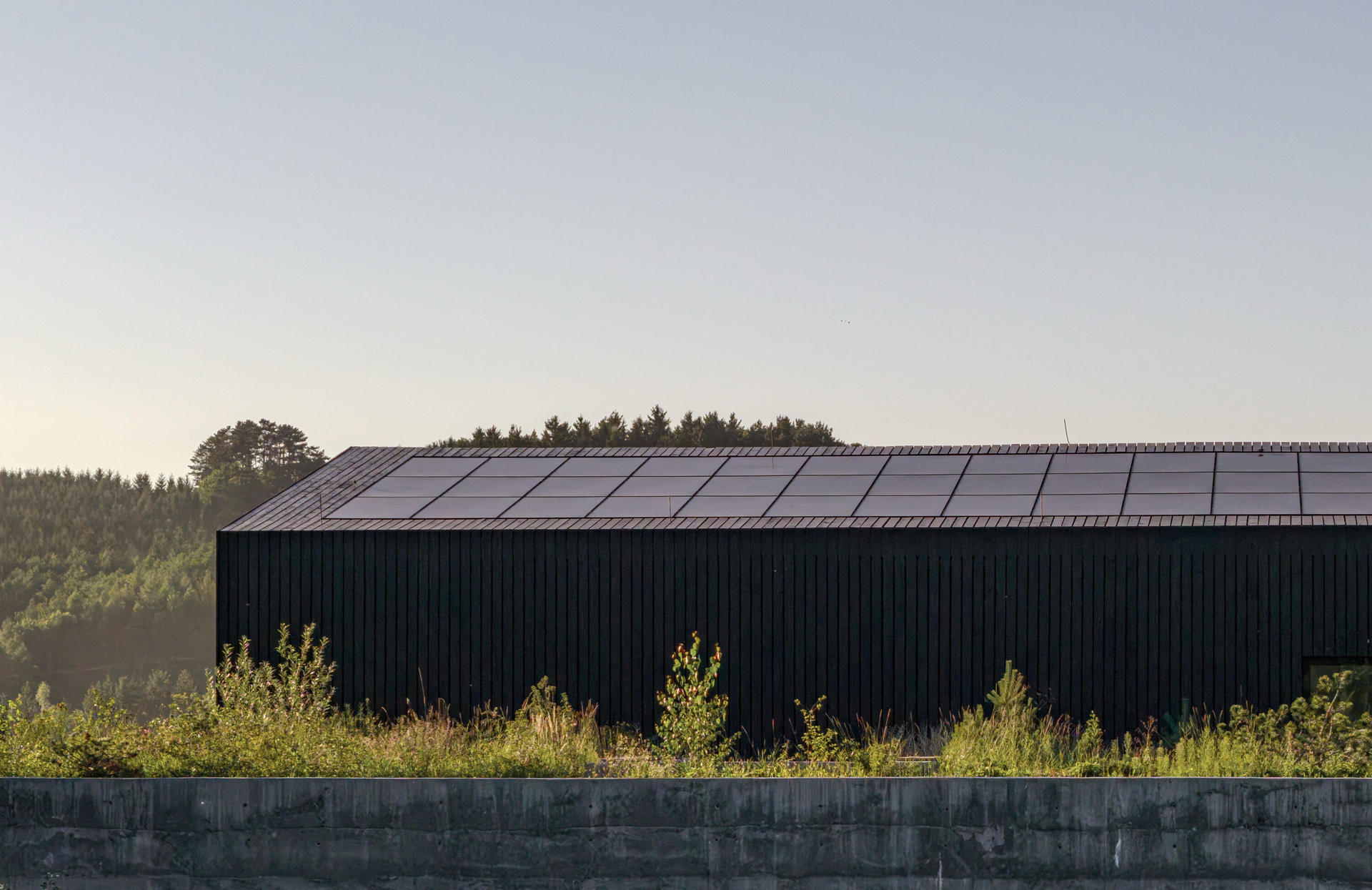 Cílem bylo i to, aby stavba přestala okolí hyzdit, ale co nejlépe s ním splynula. Je to vidět na mnoho způsobů. Betonové zdi jsou vytvořeny speciální tradiční technologií lití betonu po vrstvách a trochu připomínají skály. Fasáda je z černě natřených modřínových prken. Na střeše je černá krytina s fotovoltaickými panely, které s ní barevně splývají.