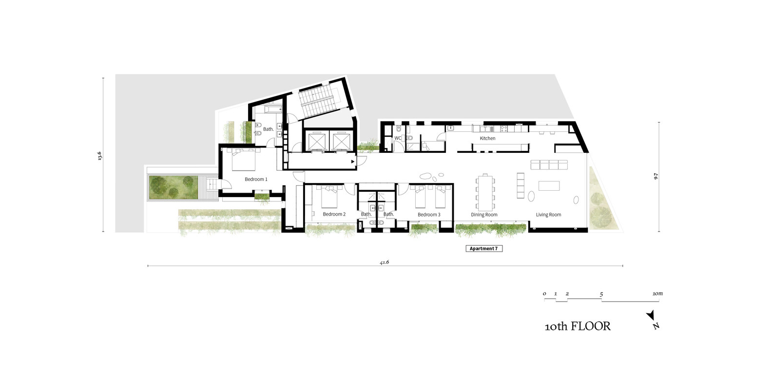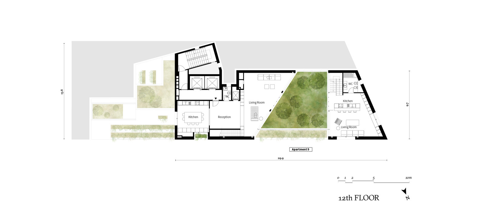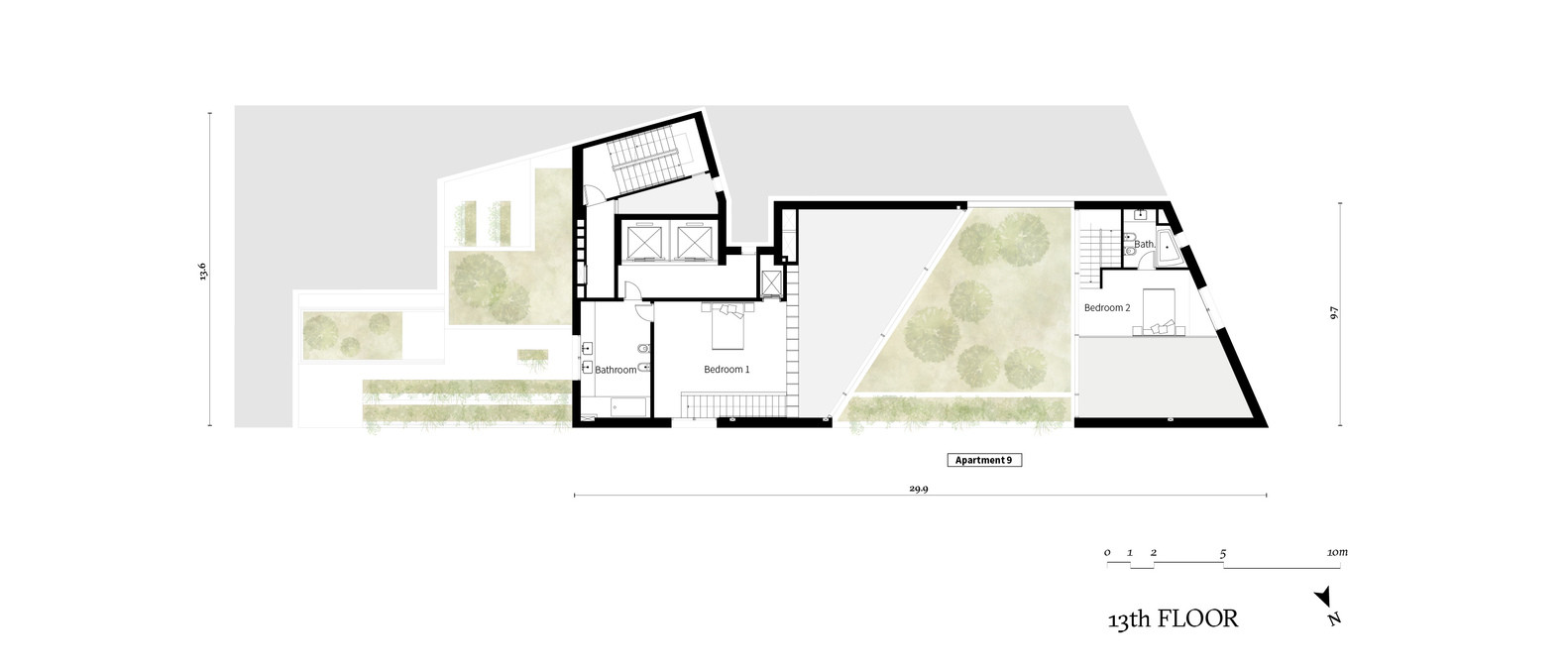 Nová stavba vyrostla v sousedství daleko nižších tradičních libanonských domků, které dnes stojí jen kousek od vysokých mrakodrapů v centru města. Ve městě jich však již mnoho není. Sama Lina Ghotmeh je má v paměti spíše ve formě neutěšených válečných ruin prorostlých vegetací. V novém bytovém domě je tato vzpomínka zakořeněna v podobě za fasádou skrytých balónů plných zeleně. „Různě velké balkony zvou přírodu, aby vyšplhala až k nebesům a každé patro této městské skulptury individualizovala,“ říká Lina Ghotmeh.