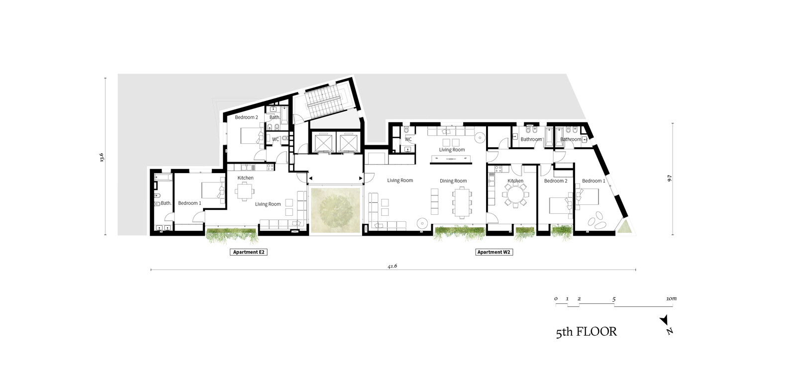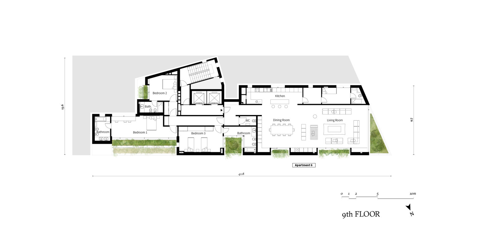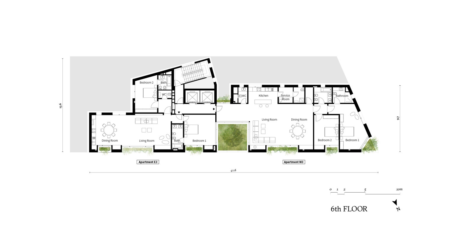 Nová stavba vyrostla v sousedství daleko nižších tradičních libanonských domků, které dnes stojí jen kousek od vysokých mrakodrapů v centru města. Ve městě jich však již mnoho není. Sama Lina Ghotmeh je má v paměti spíše ve formě neutěšených válečných ruin prorostlých vegetací. V novém bytovém domě je tato vzpomínka zakořeněna v podobě za fasádou skrytých balónů plných zeleně. „Různě velké balkony zvou přírodu, aby vyšplhala až k nebesům a každé patro této městské skulptury individualizovala,“ říká Lina Ghotmeh.