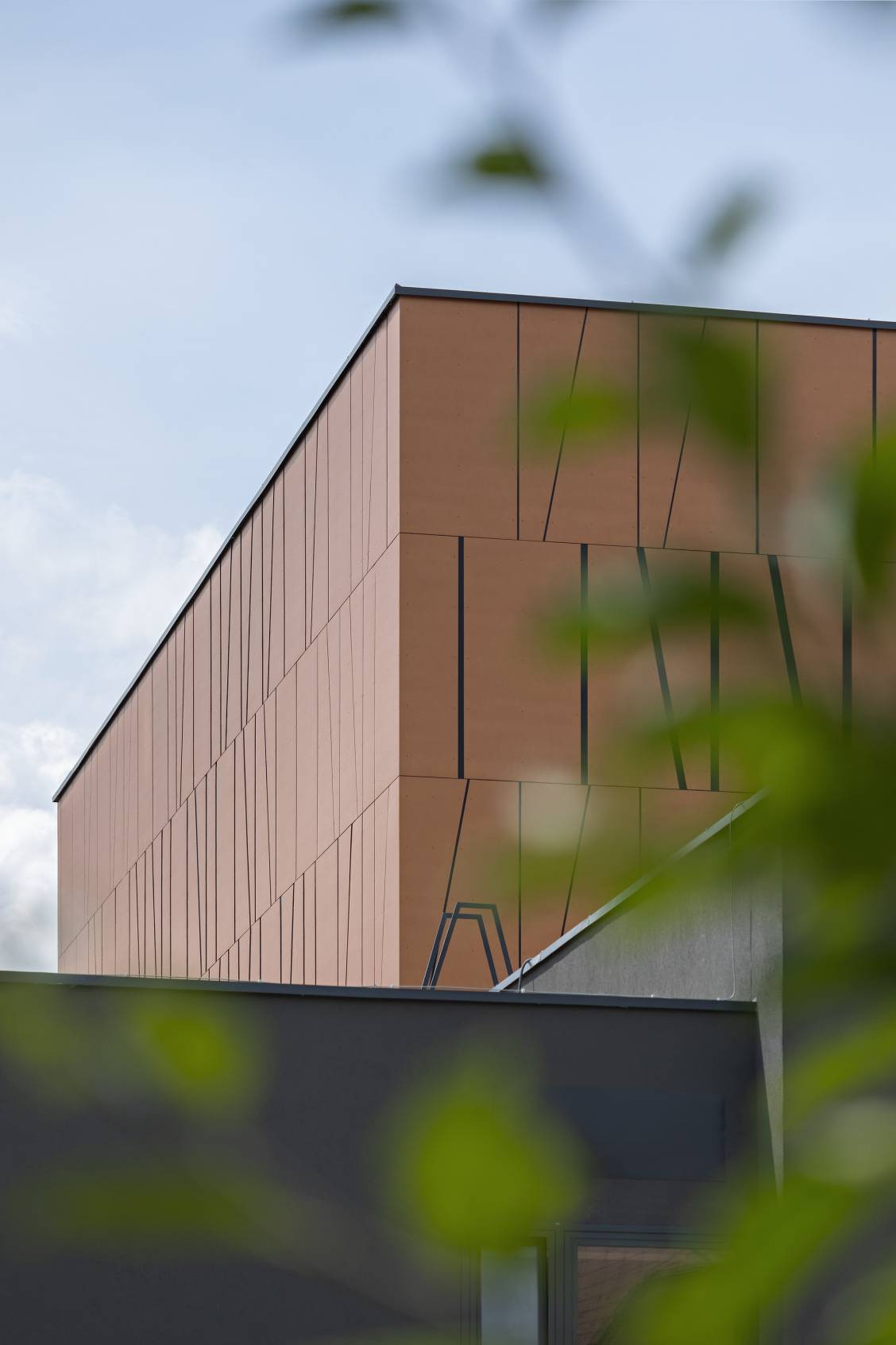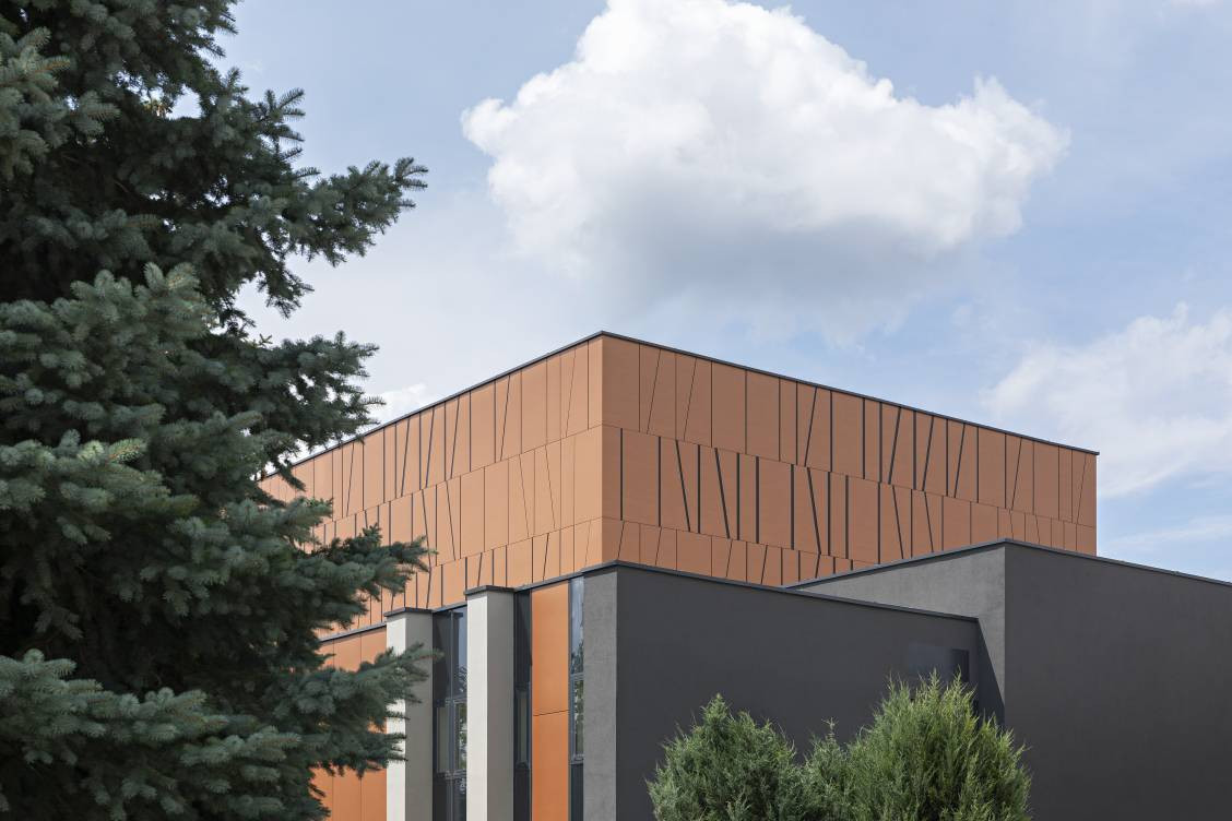 - Při realizaci byly použity produkty Swisspearl: fasádní desky Swisspearl Reflex v barevném odstínu Autumn Leaves 9270