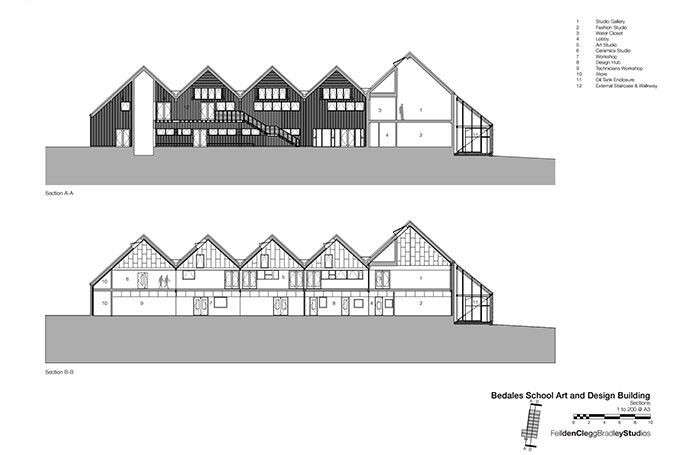 Ateliér Feilden Clegg Bradley Studios vytvořil novou budovu v kampusu školy umění a designu Bedales. Zadavatel, tedy škola Bedales, stanovila přísný rozpočet, který nesměl být překročen. Chtěla tak zabránit zbytečně velké a honosné stavbě. Ateliér FCBS čerpalo nápady z Manchester School of Art, hlavně ty, které spadaly do představy menší a užitečné budovy.