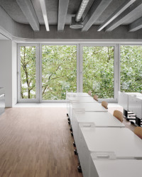 Během 60. let ovšem nedošlo k plánovanému naplnění vize, neboť vznikly pouze dvě ze třech zamýšlených staveb. Na původní myšlenku školního komplexu tak téměř po 50 letech navázalo studio E2A, které navrhlo stavbu jednoduché formy i designu umožňující o budoucna další rozrůstání a zahušťování školního areálu. Architekti proto kladli maximální důraz na efektivní a různorodé využívání exteriéru, jež momentálně funguje jako rezerva pro případnou výstavbu.