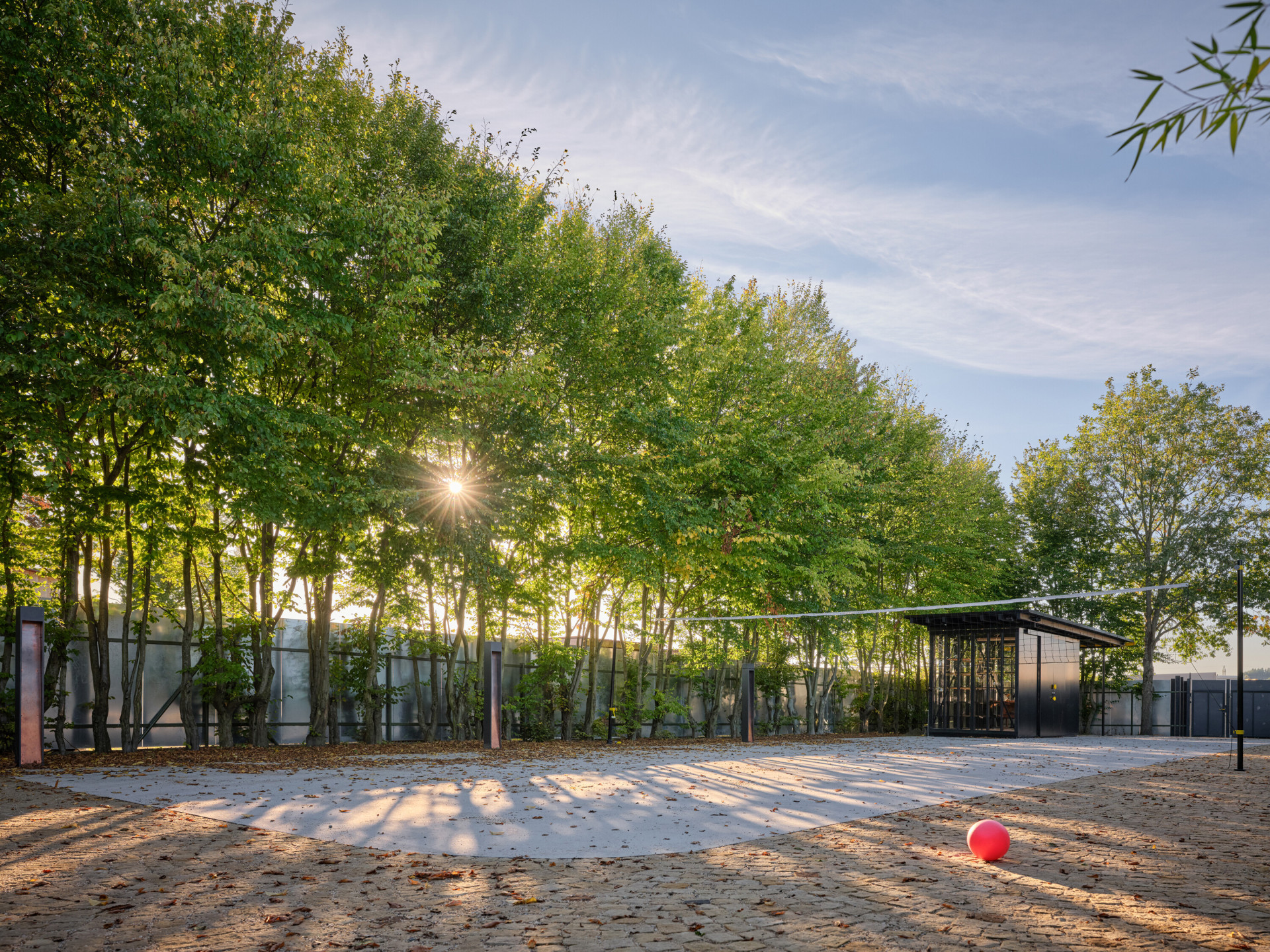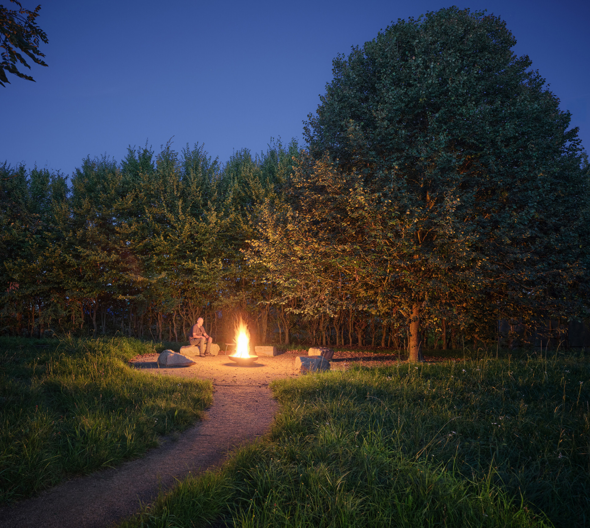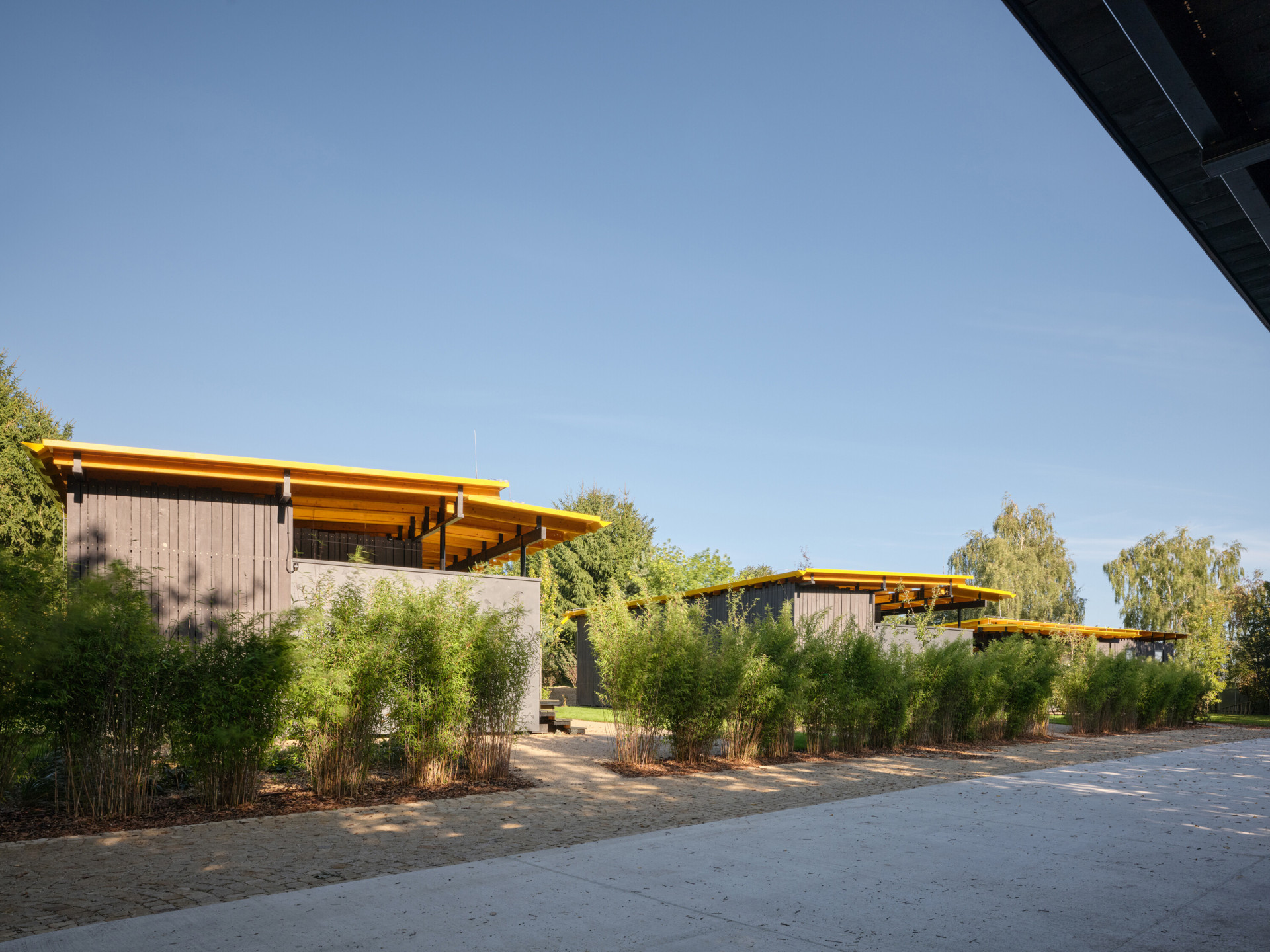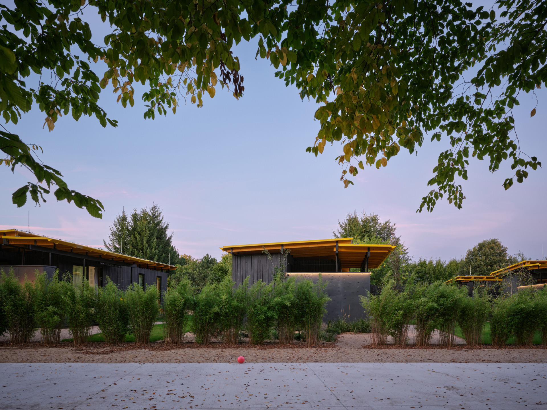 Na ploše se dnes nacházejí vzrostlé stromy, keře a úhledně zastřižená tráva. Domky jsou zde volně rozesazené a ačkoliv je zahrada jako celek společná, každý z nich má svůj vlastní vymezený kus, oddělený výsadbou nebo nízkými ploty z opalovaného dřeva. Zároveň ale sdílejí společné ohniště a do budoucna i další zázemí.