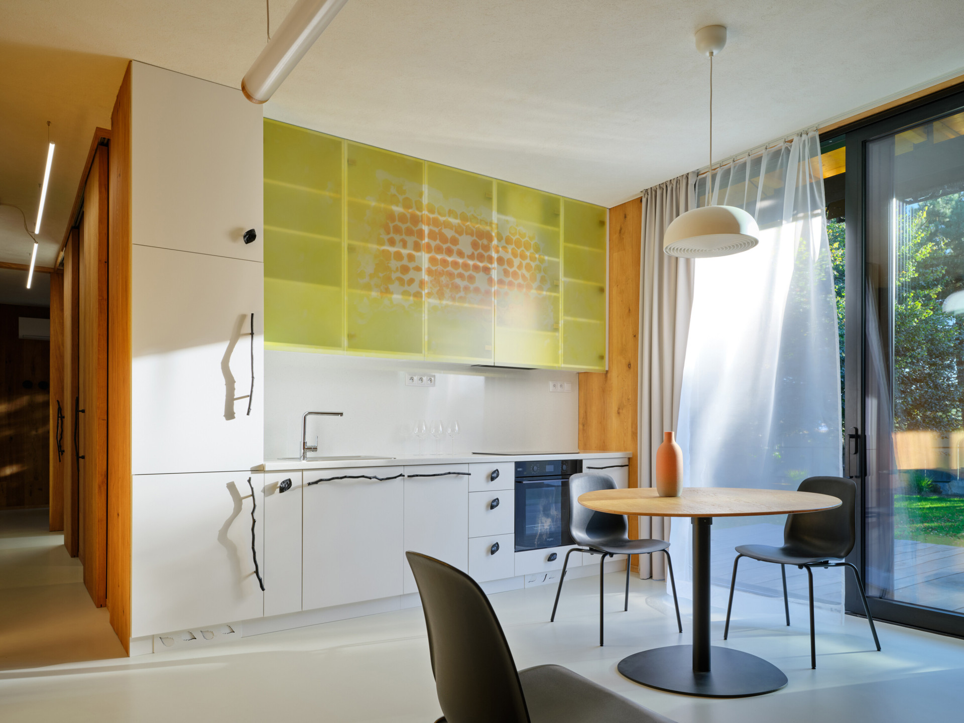 Za návrhem i realizací stojí Petr Novák, majitel a vedoucí dvou ždíreckých firem – Modelárny Novák a značky Zlesart. První se věnuje modelování a konstrukci forem, druhá pracuje s designovými odlitky kovů a masivním dřevem. Právě tyto prvky je v nových domcích možné vidět doslova na každém kroku. Bee House – což je oficiální název projektu – jsou tedy jakési vzorové domy, na nichž se know-how obou firem prezentuje v praxi.