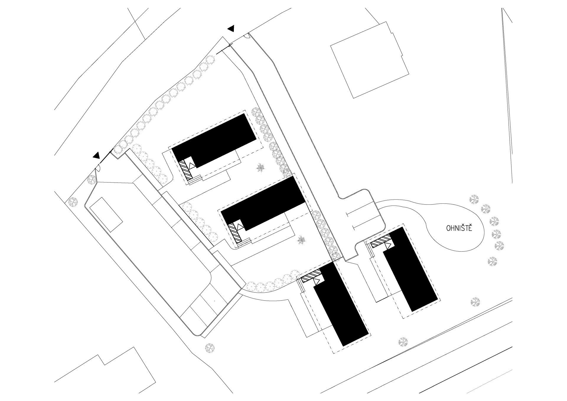 Čtyři dřevěné domky pro svůj tvar a použité dřevo připomínají včelí úly. Jsou zasazené vedle sebe do prostorné zahrady ve Ždírci nad Doubravou na Vysočině. A sloužit budou dlouhodobému pronájmu.