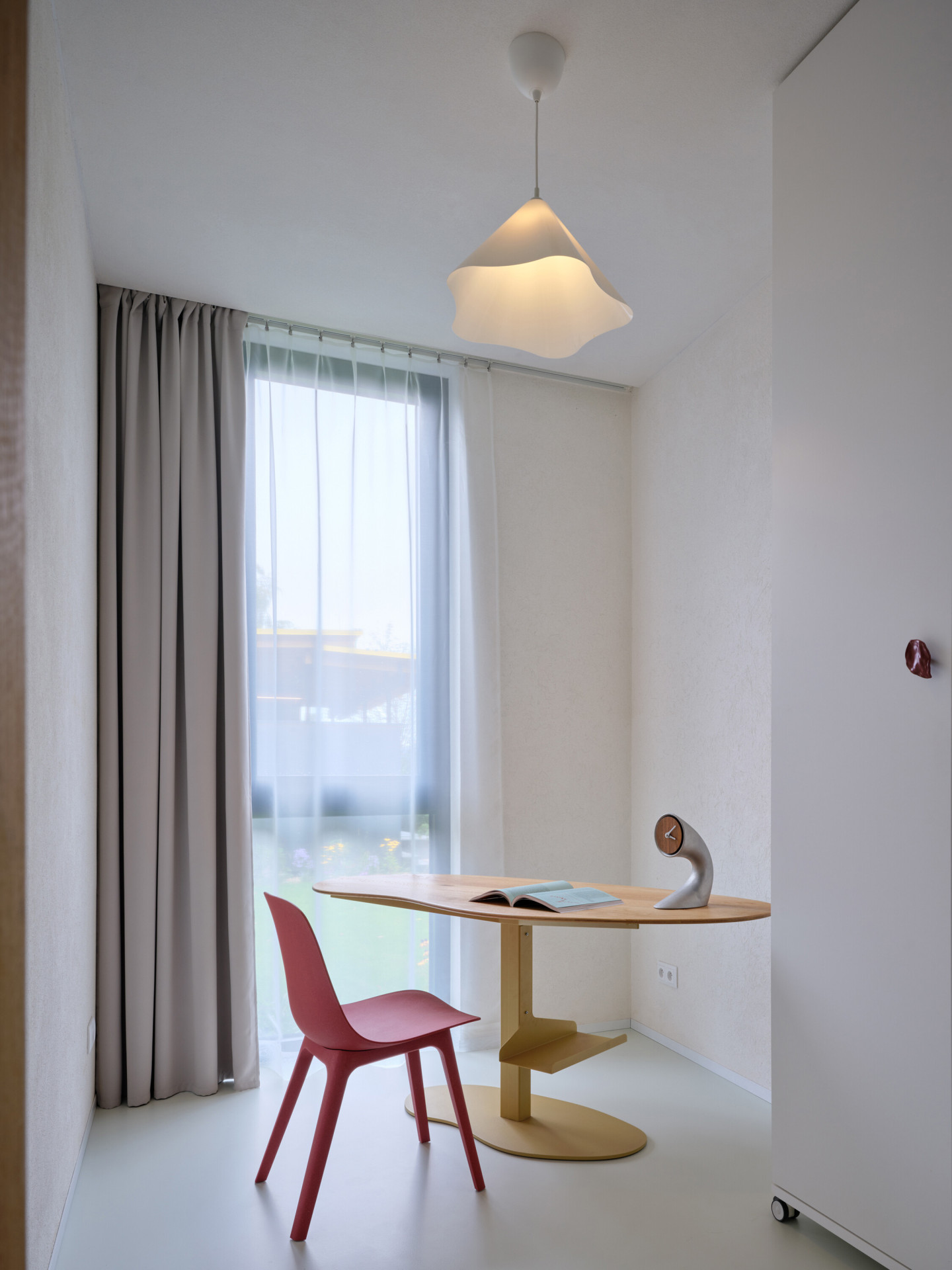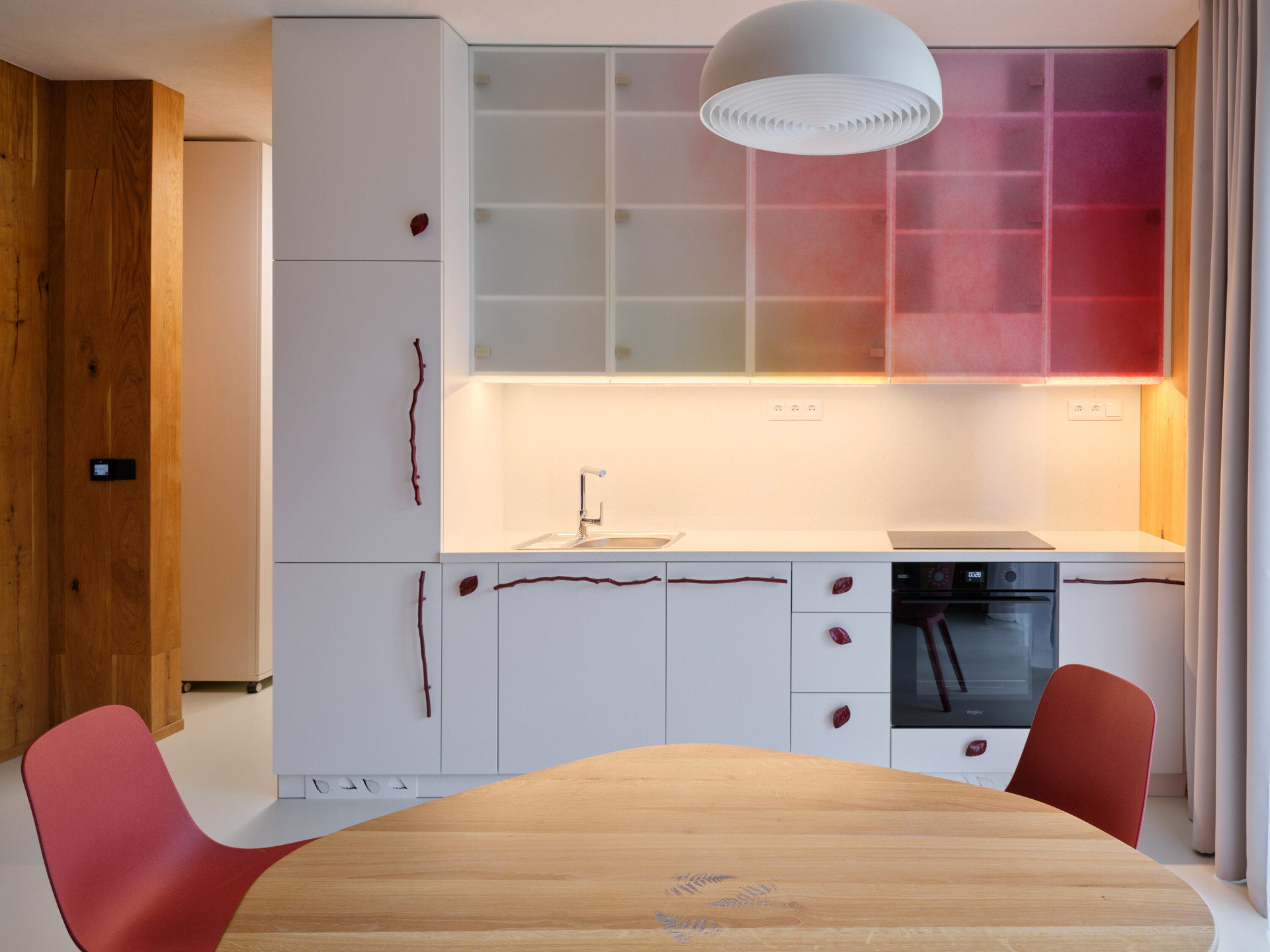 Zlesart pro Bee House navrhoval a vyráběl většinu konstrukčních i interiérových prvků – od fasádních lamel přes nábytek až po drobné detaily. Madla, kliky nebo další kovové komponenty vznikaly odlitím v místní slévárně, při jejichž návrhu si Zlesart bere inspiraci z větviček, lístků a dalších přírodnin.